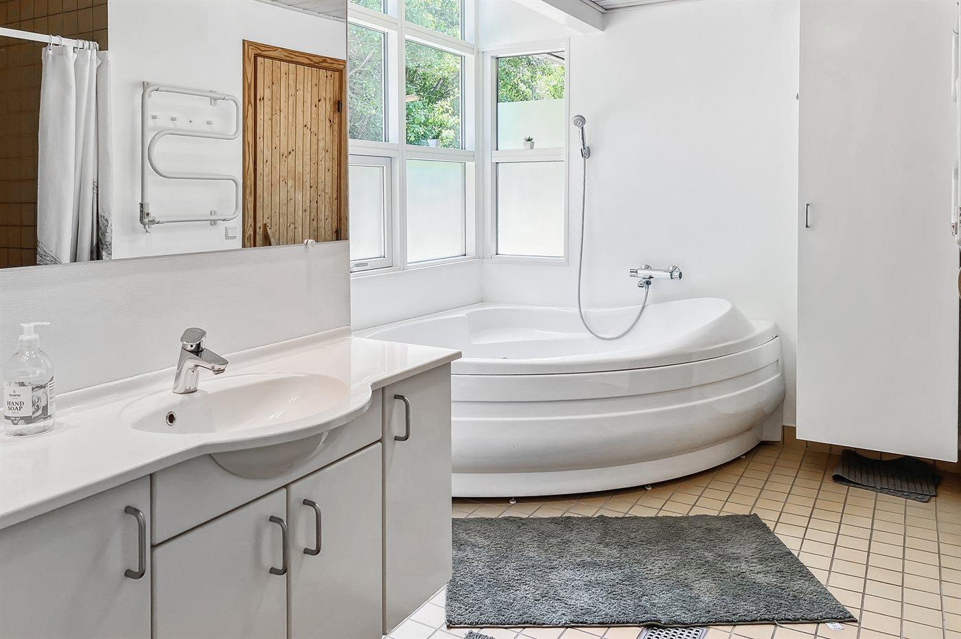 Er is 1 badkamer met douchehok en 2 toiletten, waarvan 1 gastentoilet. Er is vloerverwarming in 1 badkamer. De sauna biedt de gelegenheid tot ontspanning.