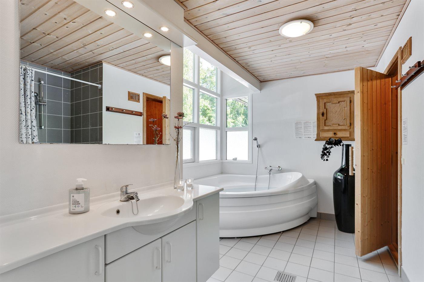Er is 1 badkamer met douchehok en 2 toiletten, waarvan 1 gastentoilet. Er is vloerverwarming in 1 badkamer. De sauna biedt de gelegenheid tot ontspanning.