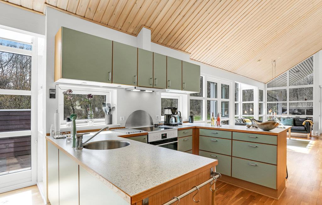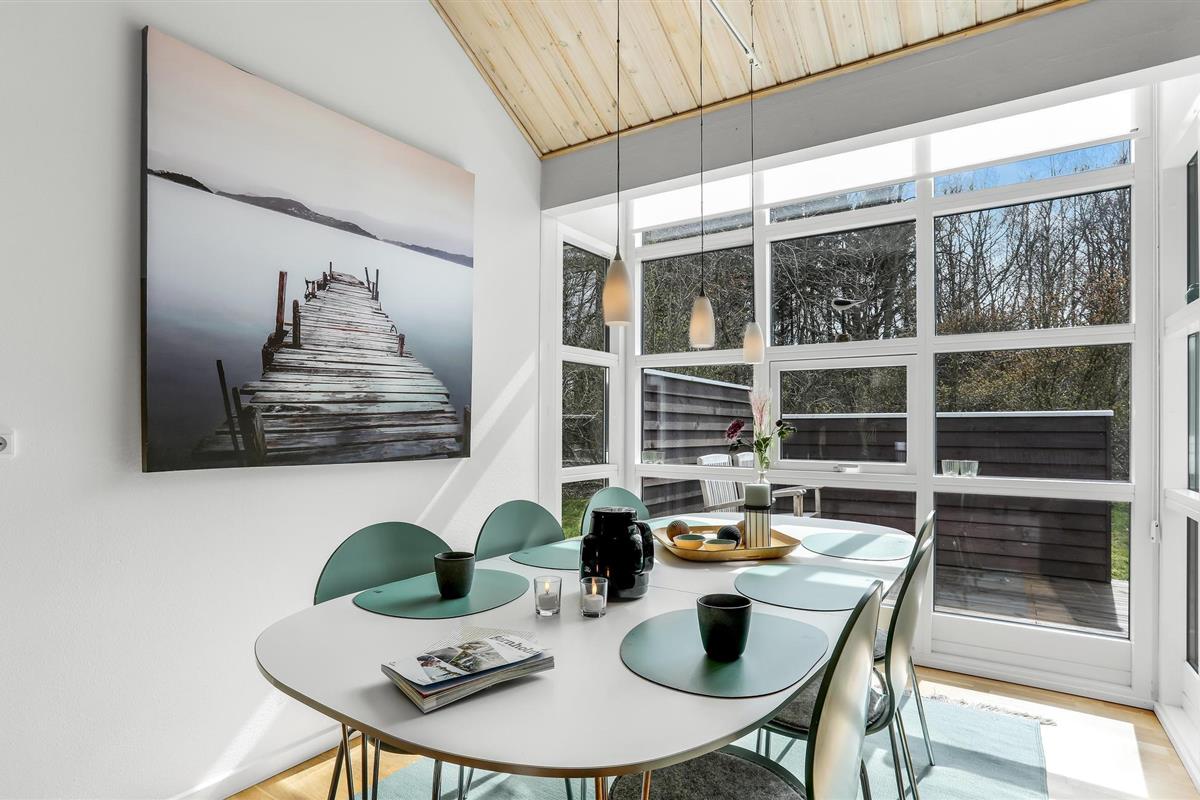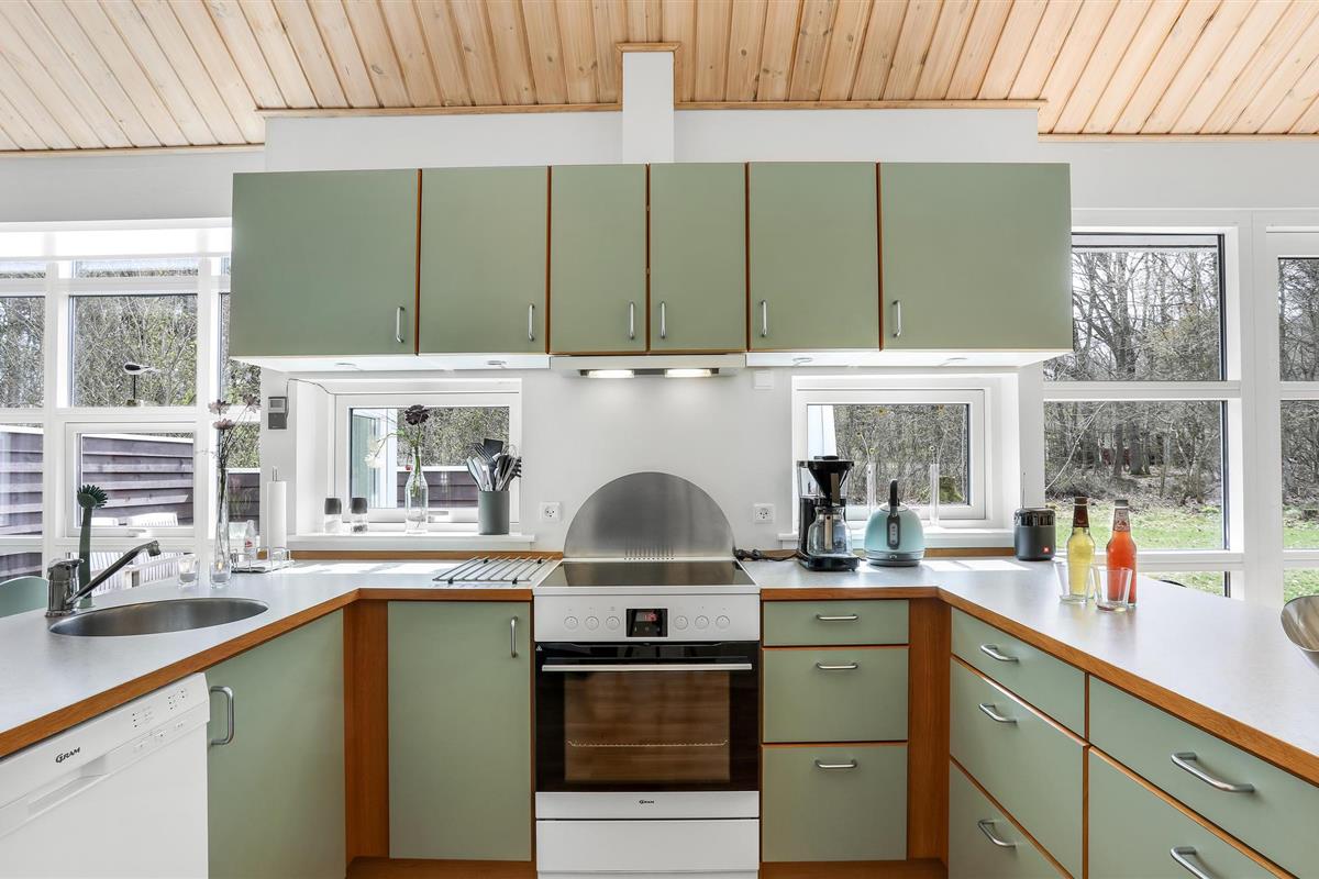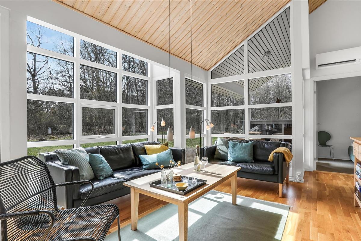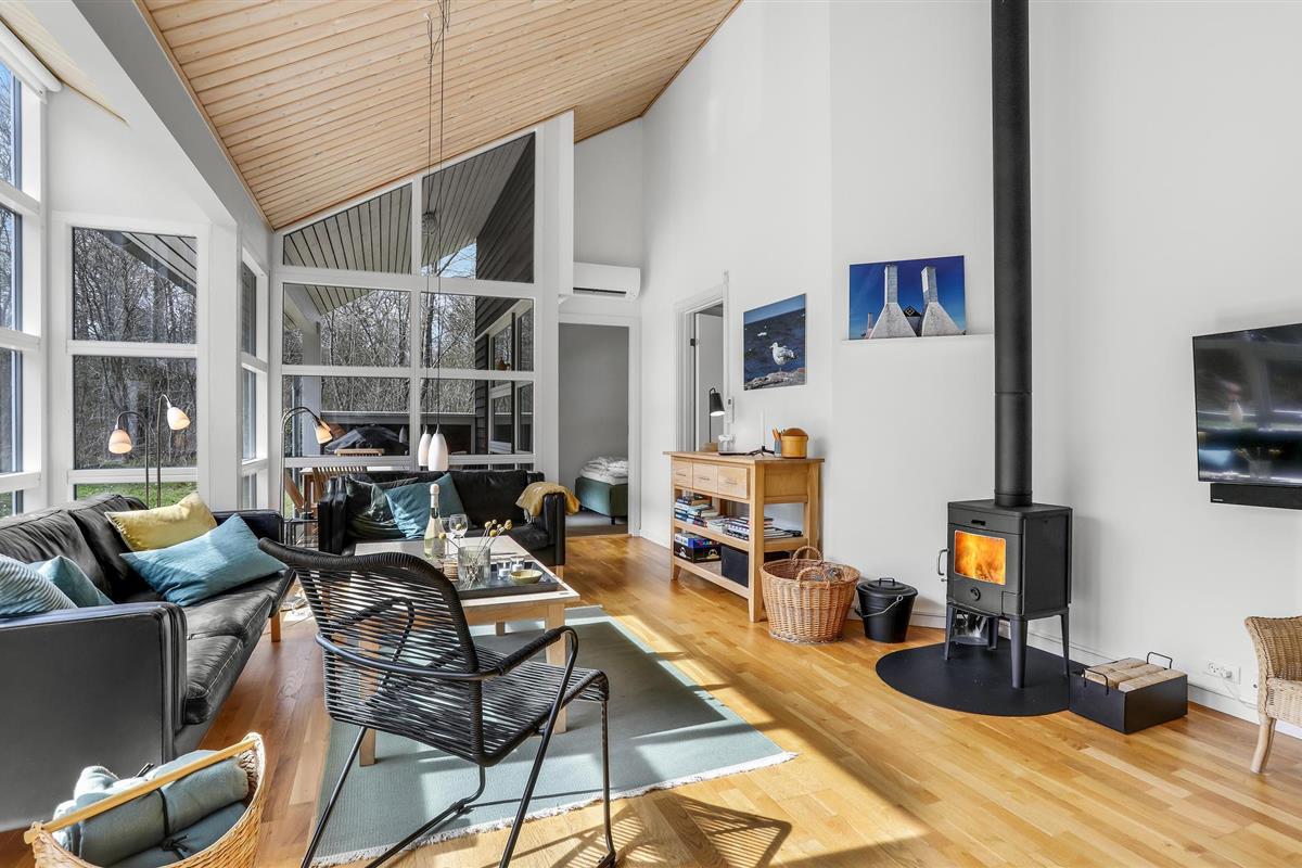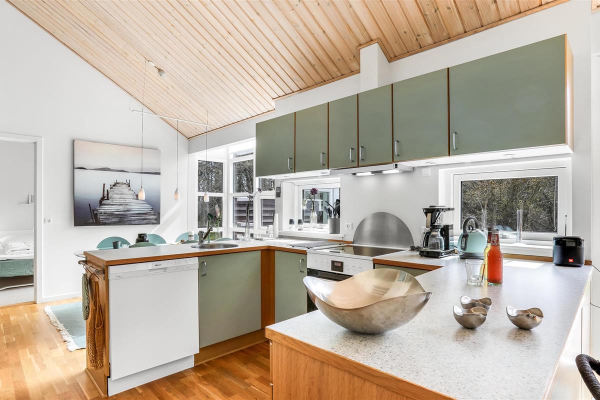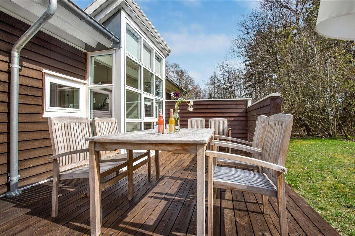Het huis verwelkomt u met een mooie, lichte en ruime woonkamer met een aangenaam uitzicht op het bos, en met toegang tot het terras. Dit is gedeeltelijk overdekt en verleidt u met gezellige zitjes om samen te komen, te spelen of te eten - De eethoek naast de zeer goed uitgeruste en open keuken biedt de kok de mogelijkheid om in het beste gezelschap vakantiemaaltijden te bereiden.