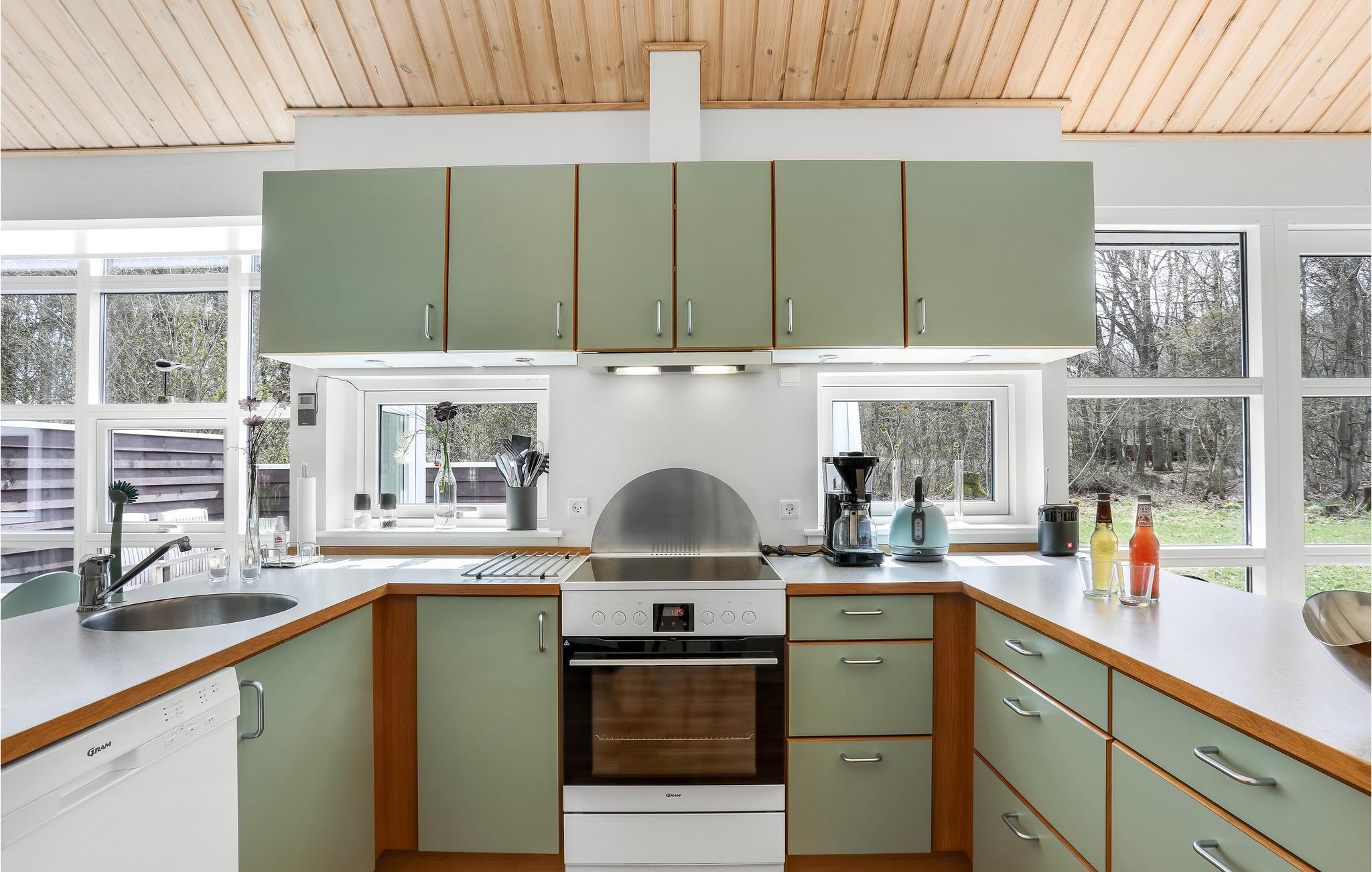 Ontdek een sfeervol vakantiehuis in Hasle met boszicht, terras, spa en nabij de zee op Bornholm.