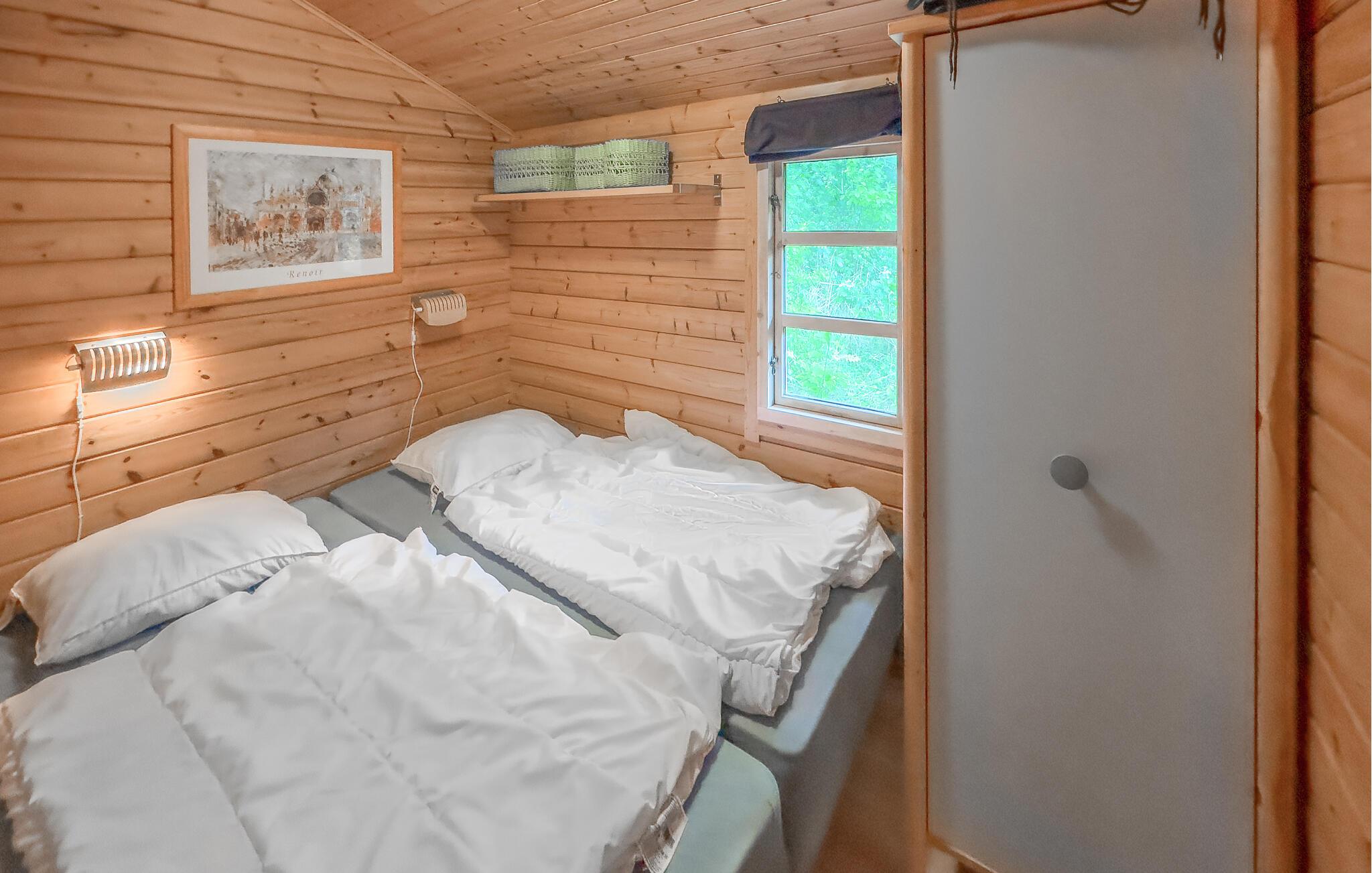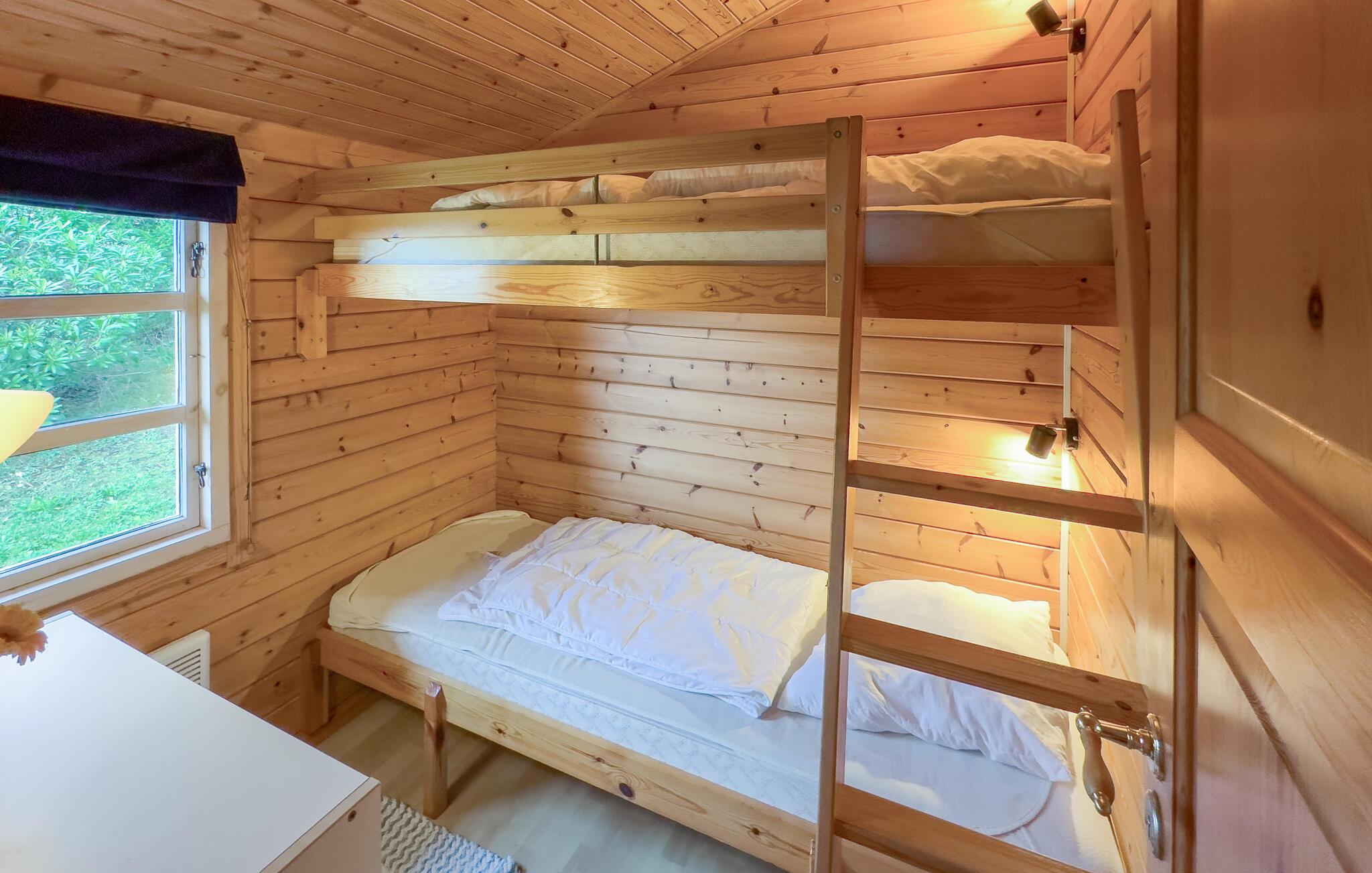 Idyllisch gelegen op Bornholm, belooft dit houten vakantiehuis een ontspannen onderbreking van het dagelijks leven. Rustig en omgeven door de natuur biedt het je de ideale plek om je vakantie door te brengen. Warm hout, rustieke meubels en liefdevol gekozen details creëren een gezellige sfeer. Of je nu kletst, leest of samen kookt, hier kun je je snel ontspannen.