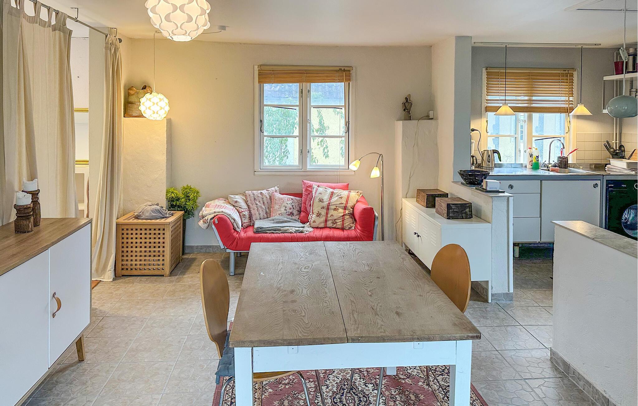 Dit pittoreske houten vakantiehuis op Bornholm belooft een ontspannen onderbreking van het dagelijks leven. Rustig en omgeven door natuur, biedt het je de ideale plek om je vakantie door te brengen. Lichtgekleurde meubels, een gezellige bank en nostalgische details creëren een sfeer waarin je je snel thuis zult voelen. Of je nu samen kletst, leest of kookt, hier kom je snel tot rust.