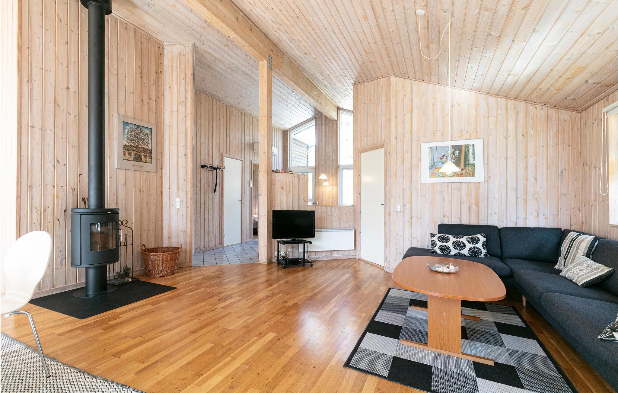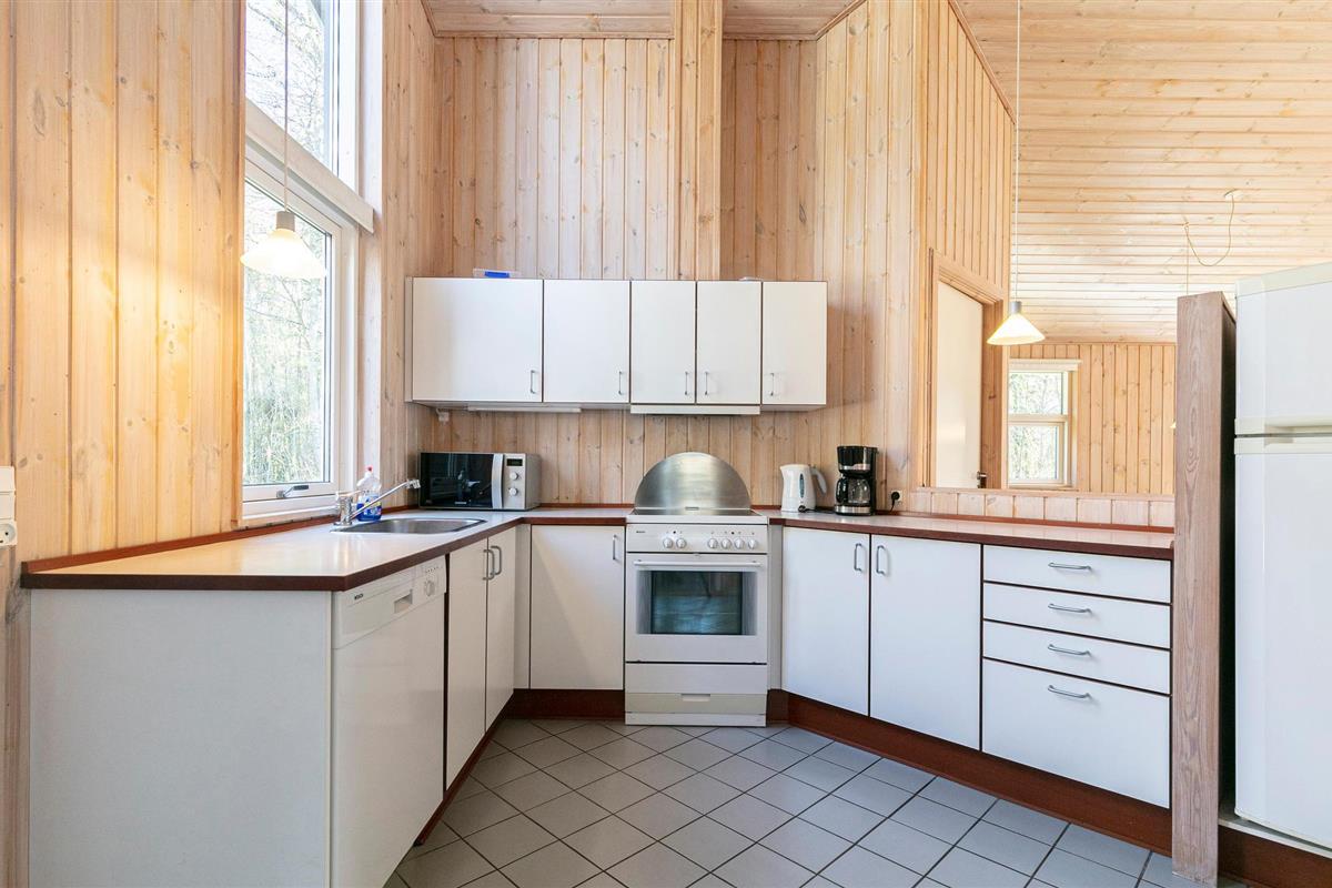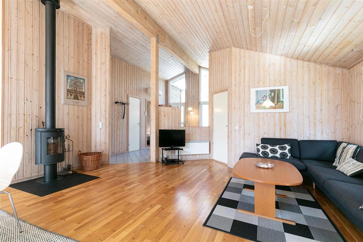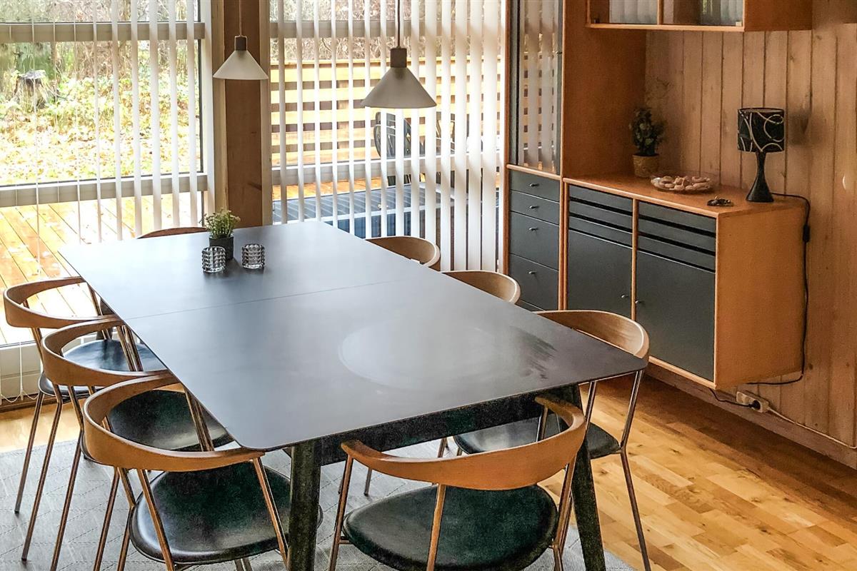 U woont dicht bij het prachtige meer Rubinsø. Het mooie interieur omvat een open keuken waar koken gemakkelijk is. De begane grond biedt veel ruimte en er is ook een aangenaam verwarmende open haard voor koelere dagen. De woonkamer is zeer ruim en biedt uitzicht op de tuin. Er is een in hoogte verstelbare kinderstoel. Het mooie terras ligt direct voor de woonkamer.