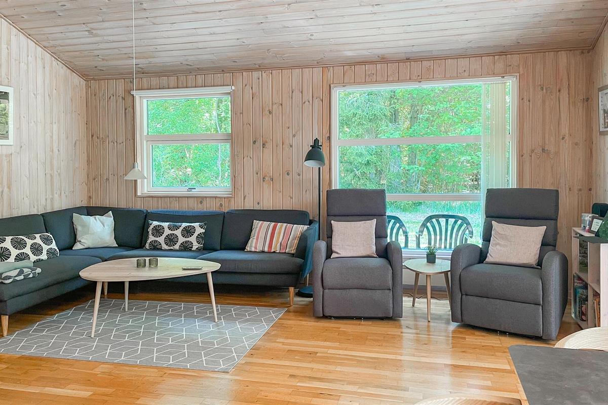 Comfortabel vakantiehuis in rustige bosrijke omgeving nabij meer Rubinsø, met open keuken en open haard.