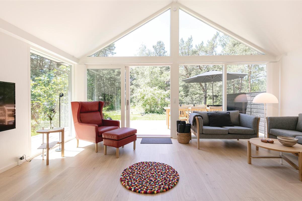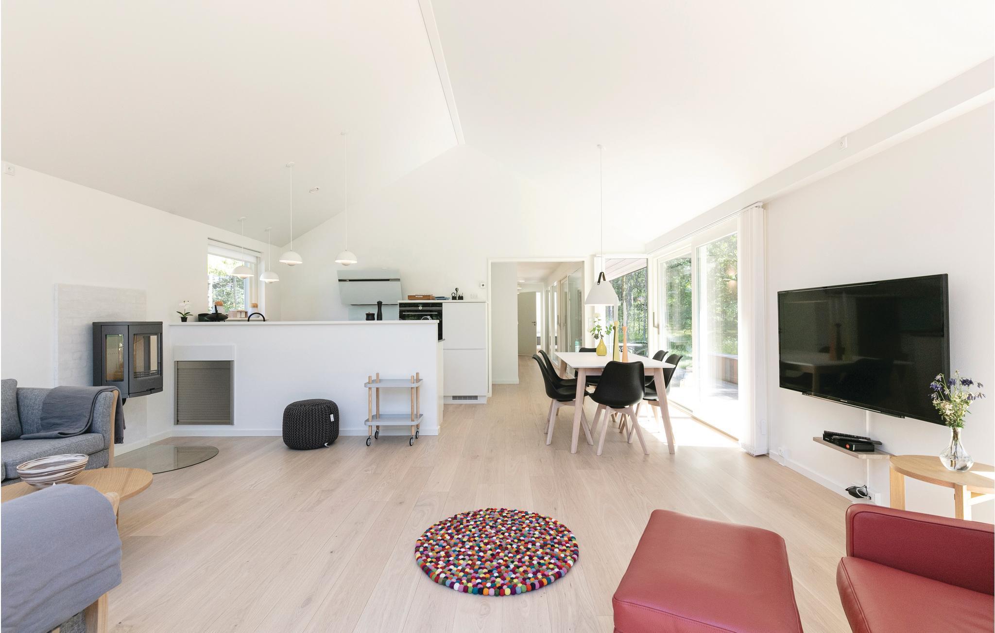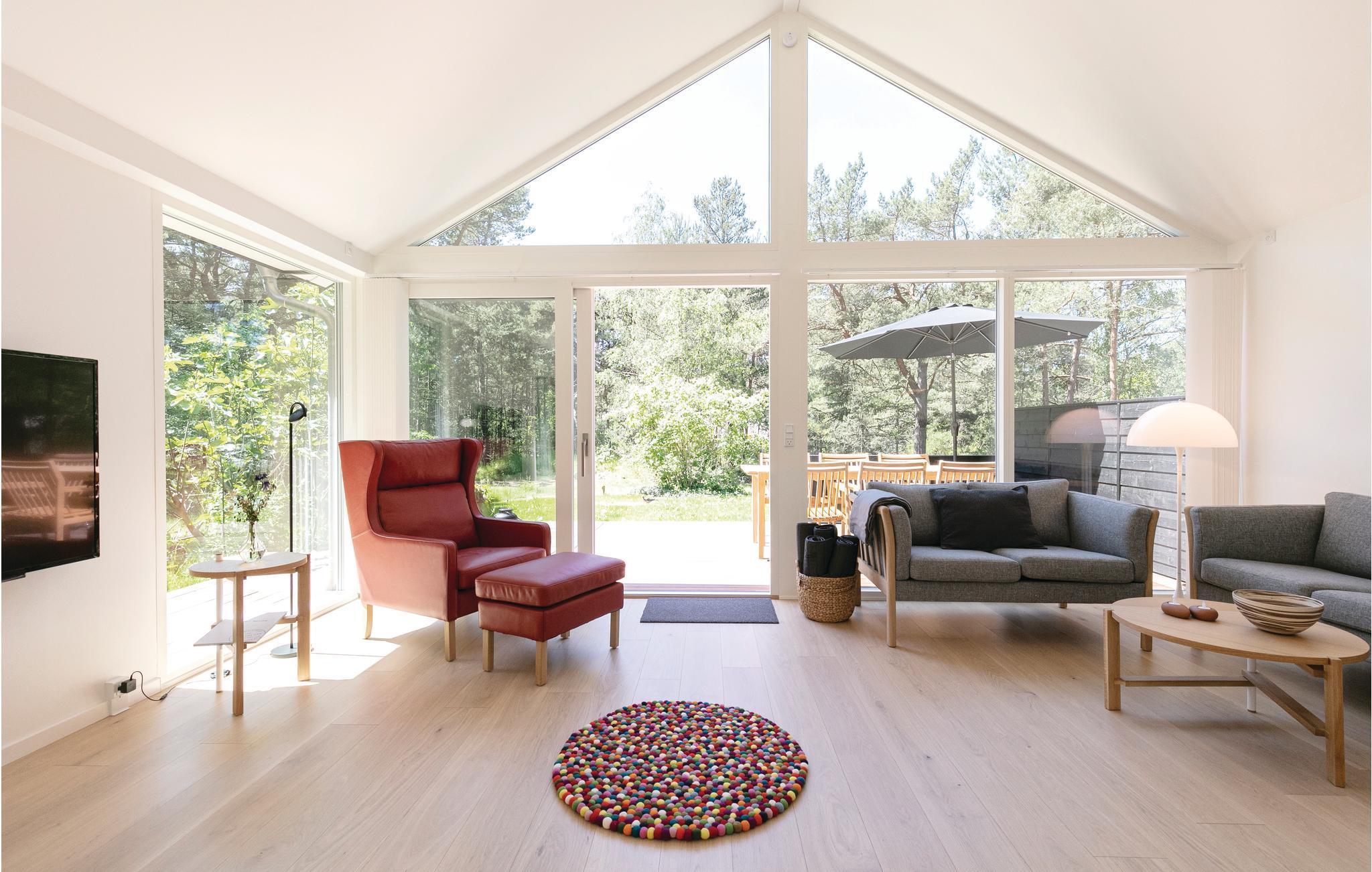 Modern en mooi kwaliteitsvakantiehuis met licht en modern interieur en aantrekkelijke ligging nabij een goed zandstrand, omgeven door fiets- en wandelpaden. Dit mooie en ruime vakantiehuis lijkt over het algemeen goed uitgerust met een grote open eet- en woonruimte met comfortabele meubels, een houtkachel en warmtepomp/airconditioning en gratis internet. Mooie, moderne open keuken waar het bereiden van vakantiemaaltijden met uitzicht op de natuur een genot is. In dit mooie vakantiehuis met hoge kwaliteit heeft u 3 goede slaapkamers en vanuit de hoofdslaapkamer heeft u direct toegang tot het terras. 1 mooie badkamer evenals een gastentoilet, beide met vloerverwarming en het toilet met verbinding naar de hoofdslaapkamer. Vanuit de woonkamer bereikt u een prachtig groot houten terras waar u kunt ontspannen in het mooie tuinmeubilair met uitzicht op het bos en de natuur. U kunt zich verfrissen in de Oostzee of gaan joggen in het bos, en de stad Hasle is ook niet ver van het vakantiehuis. U kunt ook gebruik maken van de buitendouche, die zich bij het huis bevindt. Goede winkelmogelijkheden, een gezellige rokerij, een buitenzwembad en nog veel meer wachten daar op u. Het hoge comfortniveau en de vele moderne faciliteiten van het huis maken het geschikt voor een ontspannen vakantie in elk jaargetijde.