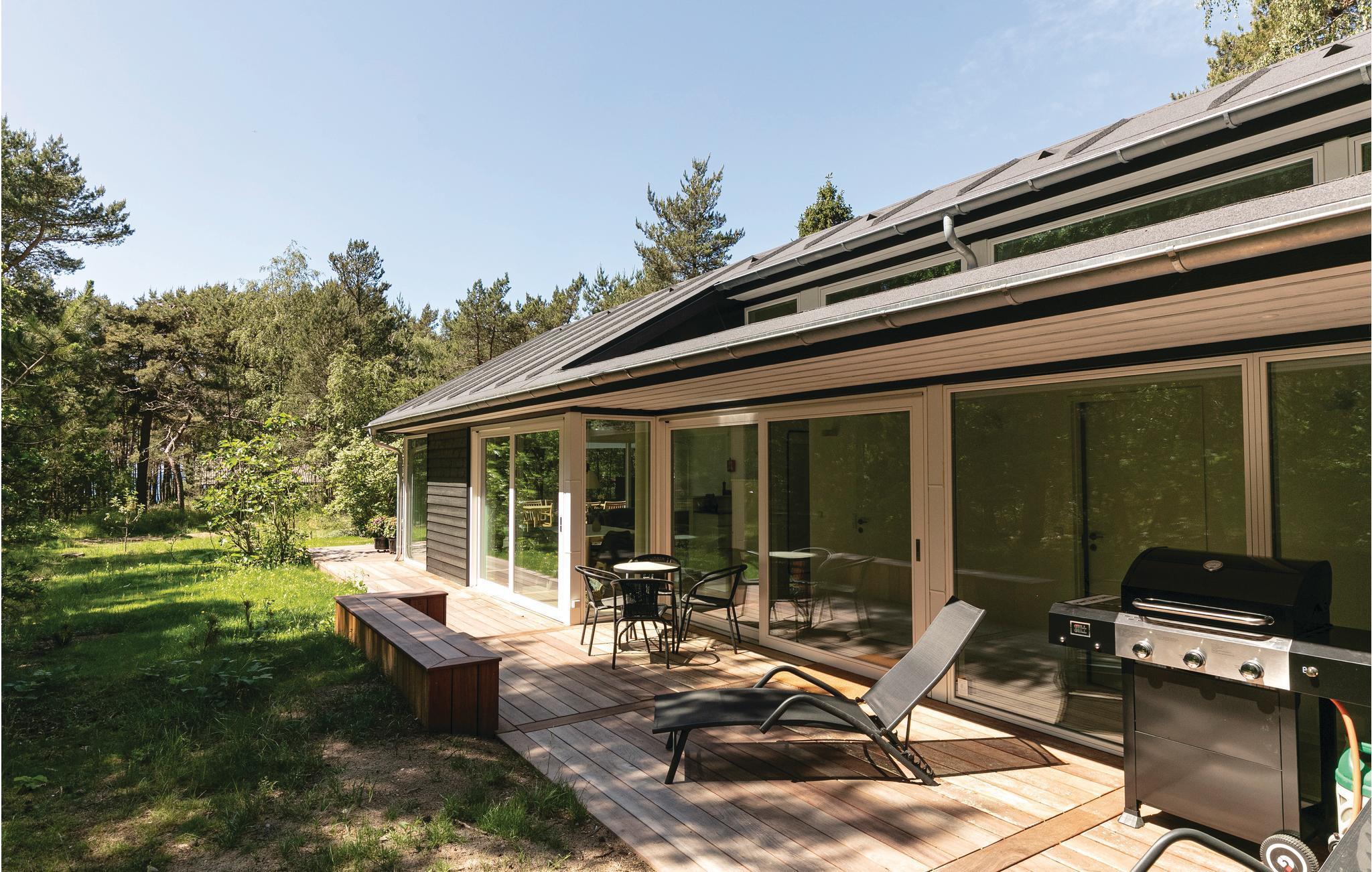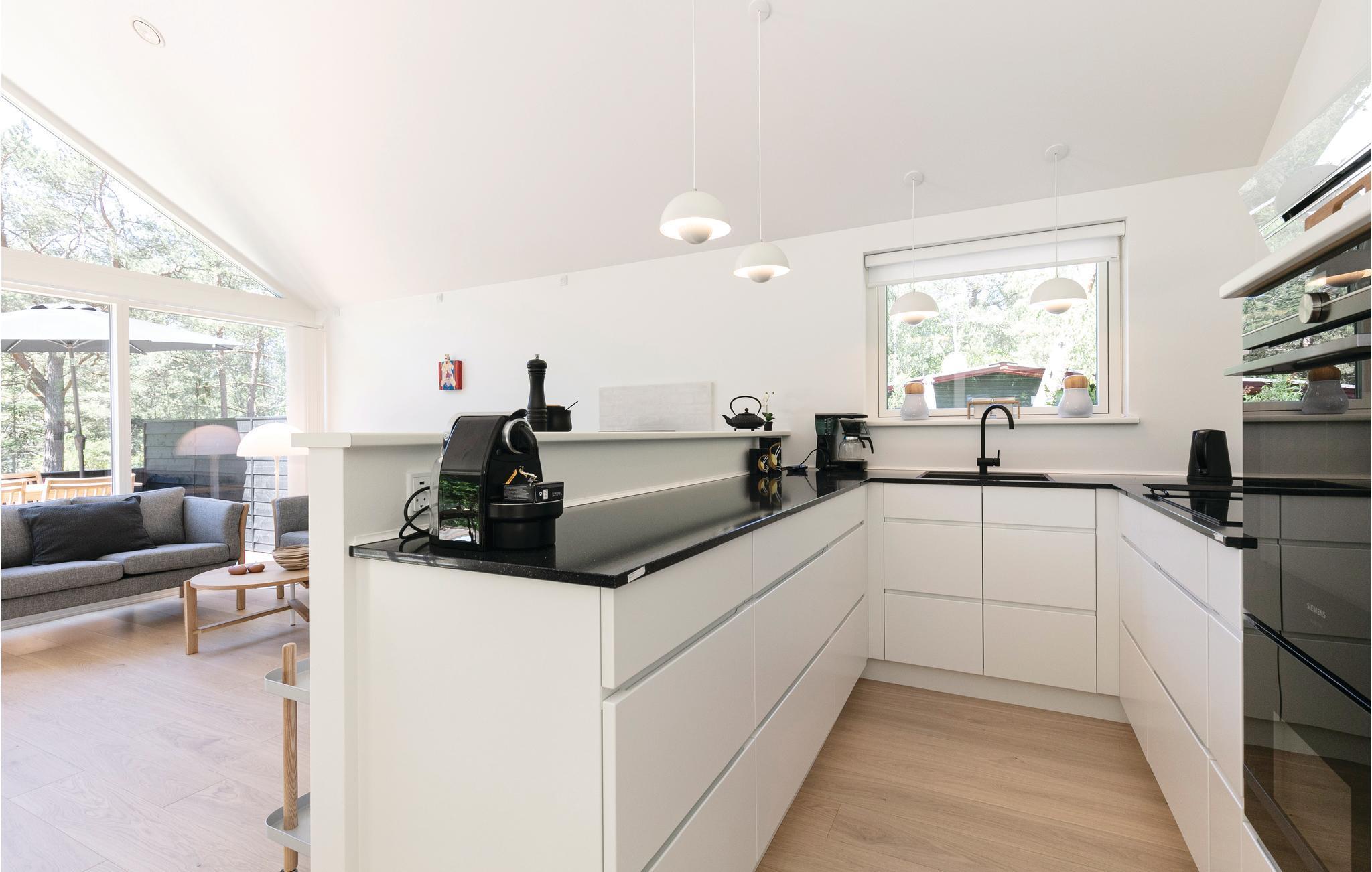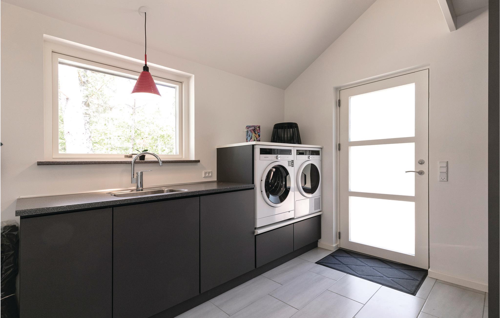 Modern en mooi kwaliteitsvakantiehuis met licht en modern interieur en aantrekkelijke ligging nabij een goed zandstrand, omgeven door fiets- en wandelpaden. Dit mooie en ruime vakantiehuis lijkt over het algemeen goed uitgerust met een grote open eet- en woonruimte met comfortabele meubels, een houtkachel en warmtepomp/airconditioning en gratis internet. Mooie, moderne open keuken waar het bereiden van vakantiemaaltijden met uitzicht op de natuur een genot is. In dit mooie vakantiehuis met hoge kwaliteit heeft u 3 goede slaapkamers en vanuit de hoofdslaapkamer heeft u direct toegang tot het terras. 1 mooie badkamer evenals een gastentoilet, beide met vloerverwarming en het toilet met verbinding naar de hoofdslaapkamer. Vanuit de woonkamer bereikt u een prachtig groot houten terras waar u kunt ontspannen in het mooie tuinmeubilair met uitzicht op het bos en de natuur. U kunt zich verfrissen in de Oostzee of gaan joggen in het bos, en de stad Hasle is ook niet ver van het vakantiehuis. U kunt ook gebruik maken van de buitendouche, die zich bij het huis bevindt. Goede winkelmogelijkheden, een gezellige rokerij, een buitenzwembad en nog veel meer wachten daar op u. Het hoge comfortniveau en de vele moderne faciliteiten van het huis maken het geschikt voor een ontspannen vakantie in elk jaargetijde.