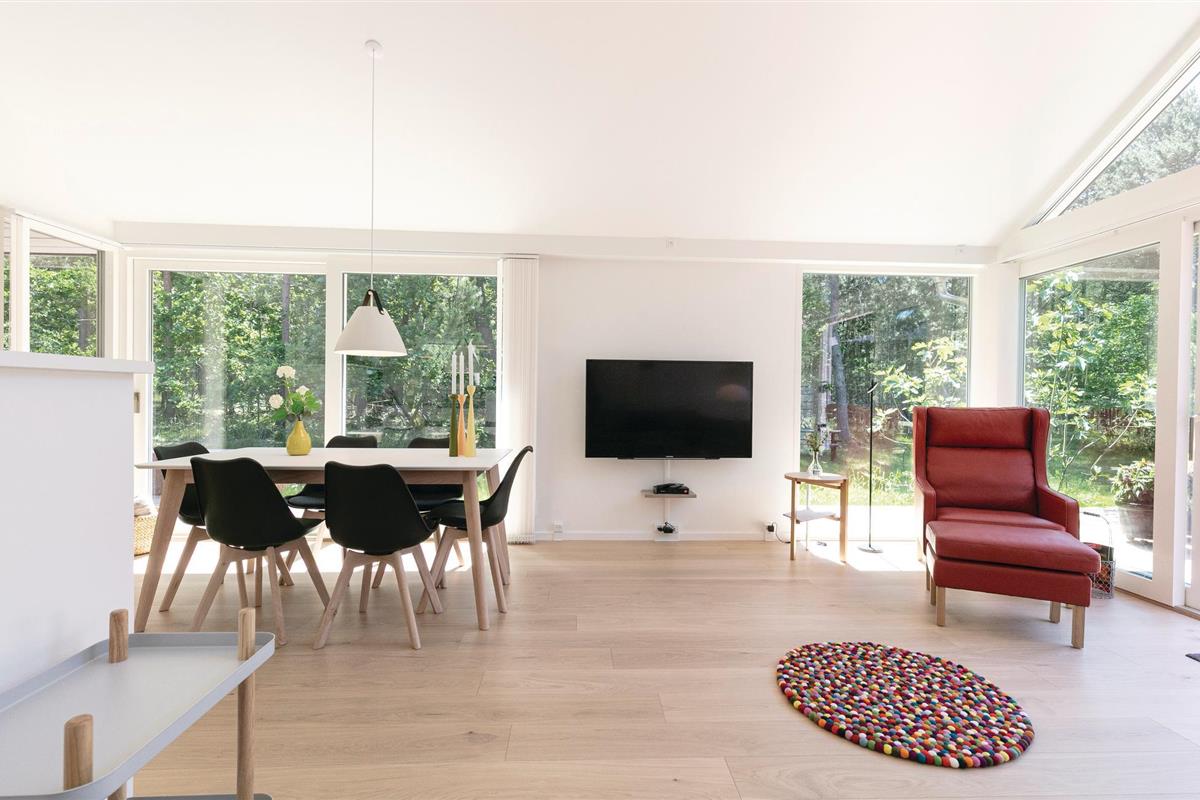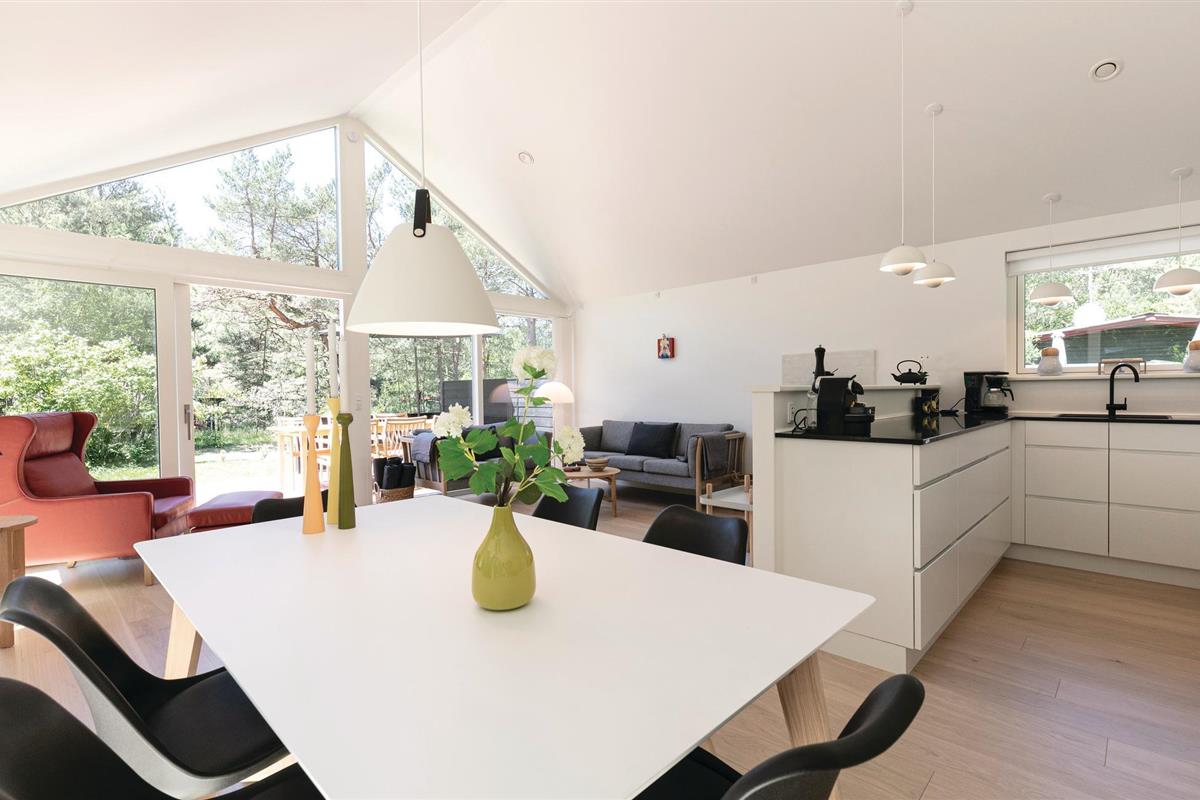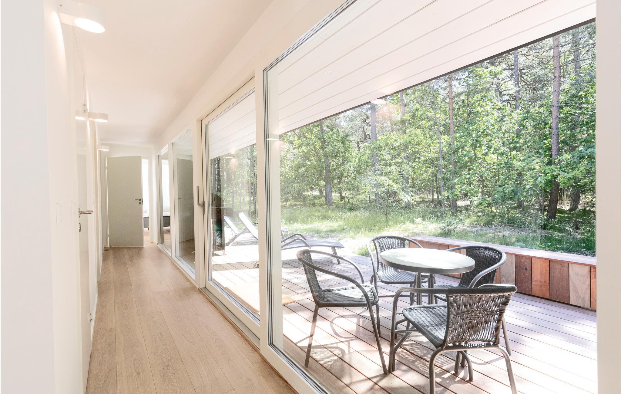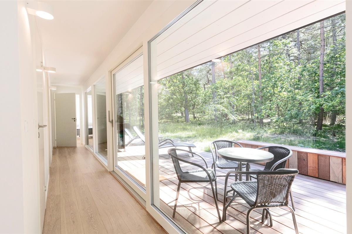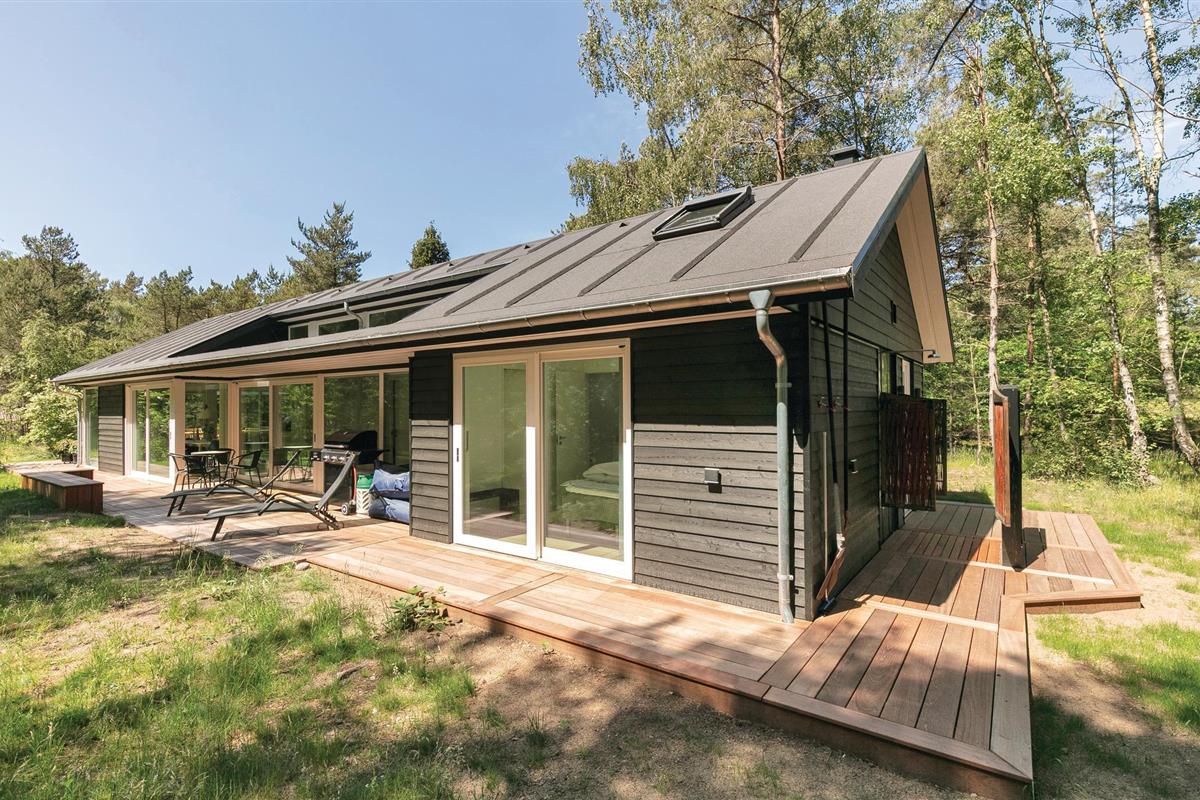 Modern vakantiehuis nabij zandstrand met luxe interieur en prachtig bosuitzicht, ideaal voor ontspannen vakanties in elk seizoen.