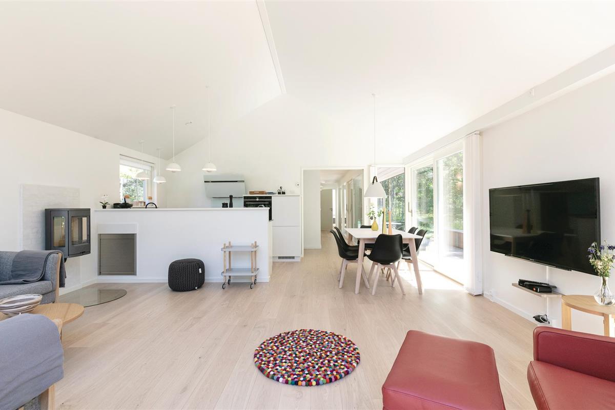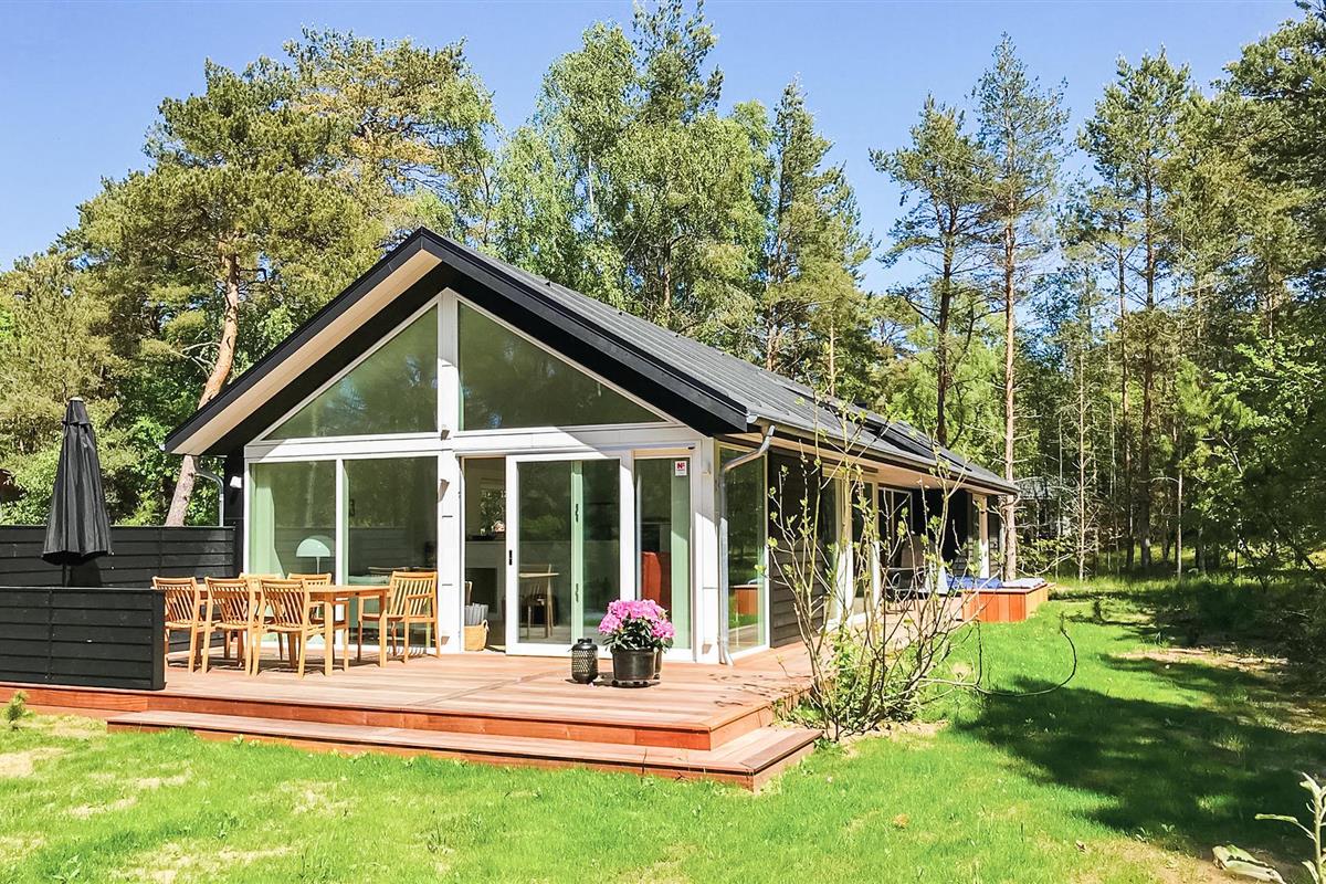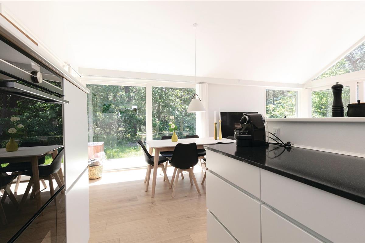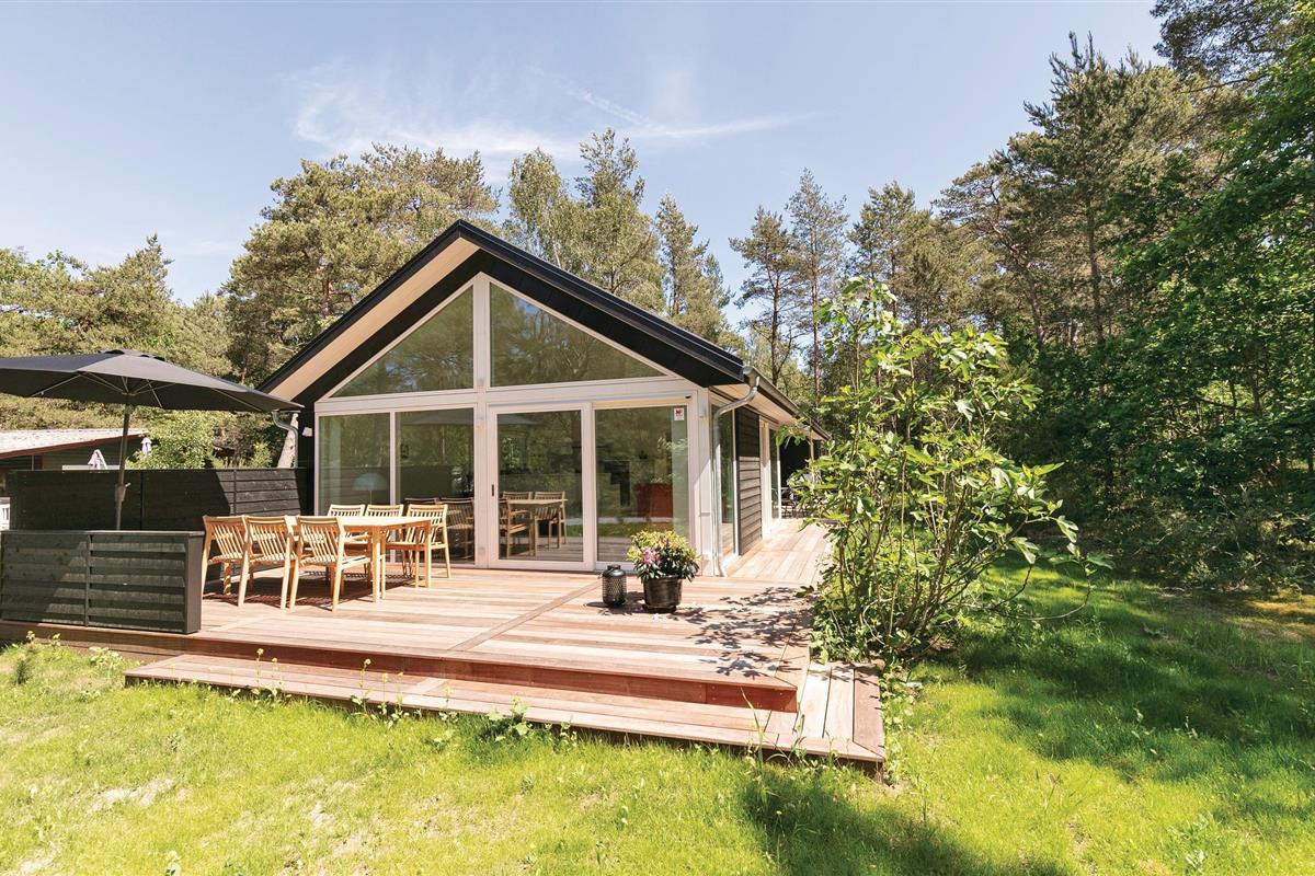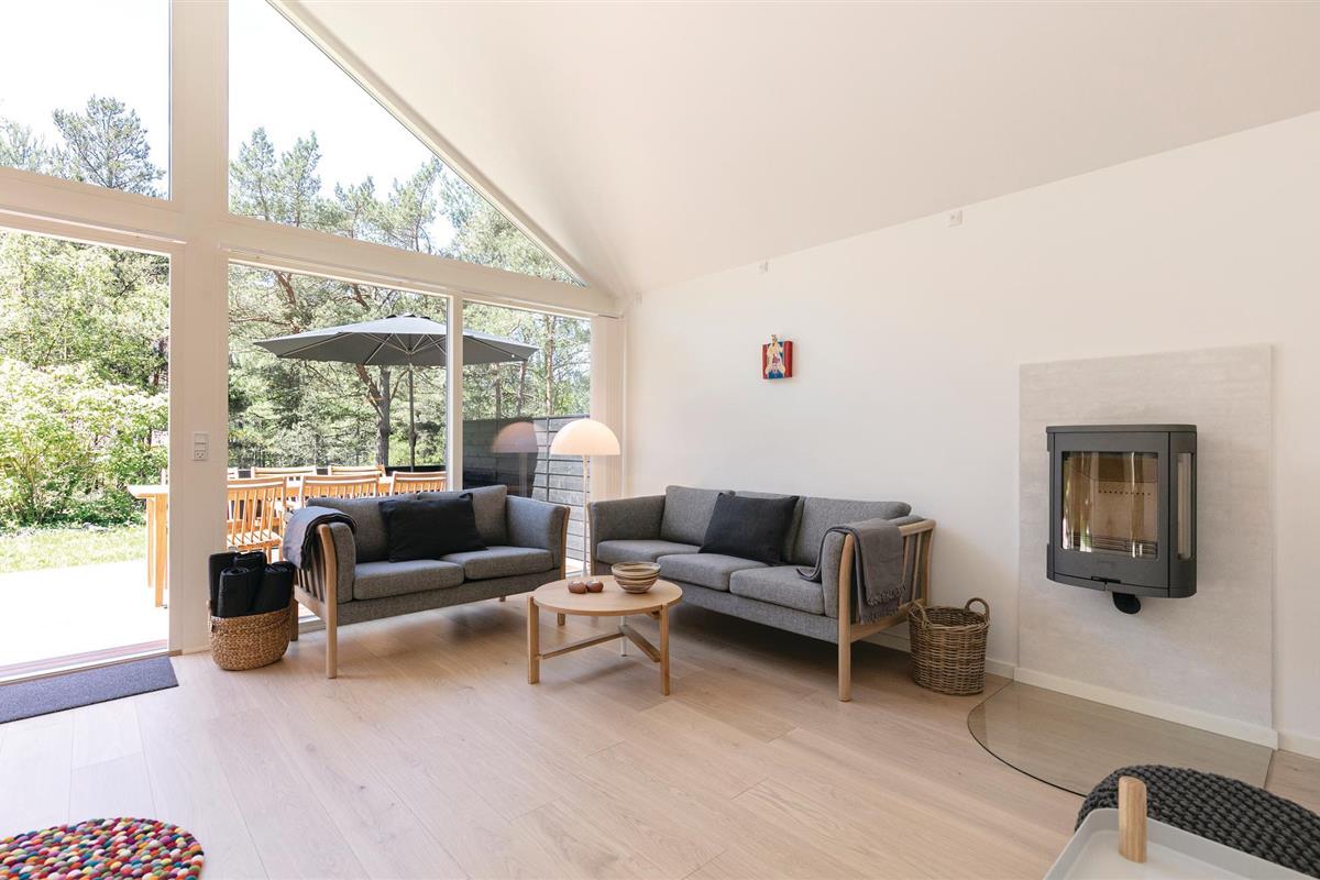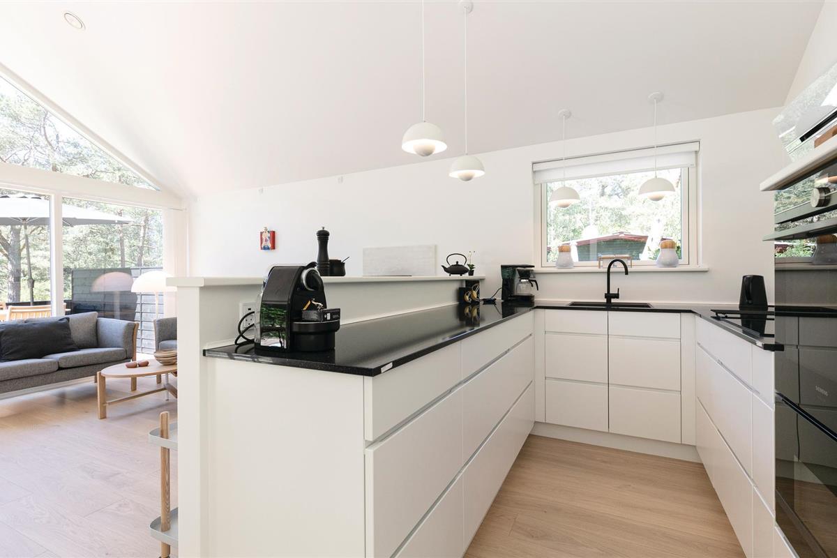 Modern vakantiehuis nabij zandstrand met luxe interieur en prachtig bosuitzicht, ideaal voor ontspannen vakanties in elk seizoen.