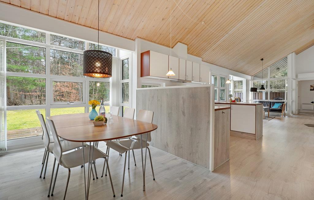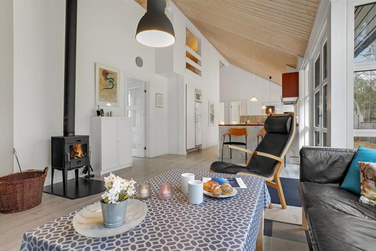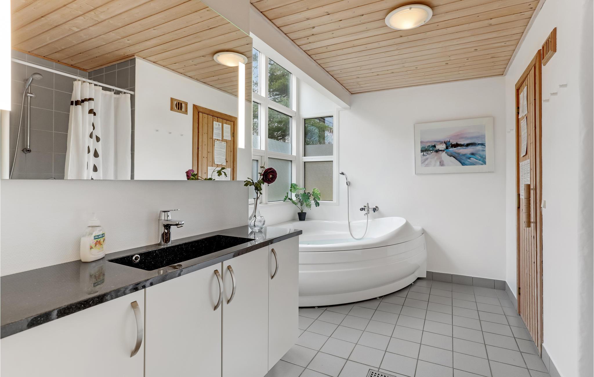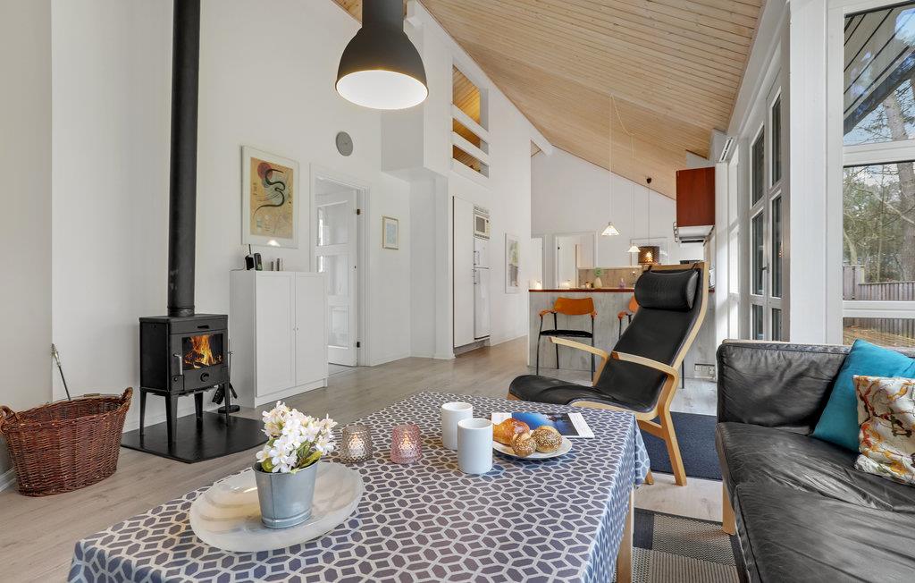 Hier kunt u het zich samen met uw geliefden heerlijk comfortabel maken en zal het u aan niets ontbreken tijdens uw vakantie. De lichte kamers met een moderne inrichting en fantastisch geplaatste ramen die veel daglicht binnenlaten, zorgen voor een gezellige feel-good sfeer. Verheug u op ontspannen in een stijlvolle ambiance en het delen van maaltijden aan de lange eettafel met uitzicht op de tuin. Na urenlang plezier op het strand is een sauna bijzonder aangenaam. Aan het einde van een heerlijke dag maakt u het zich samen comfortabel in de woonkamer en praat u over wat u heeft meegemaakt bij het rustige geknetter van de vlammen in de open haard.