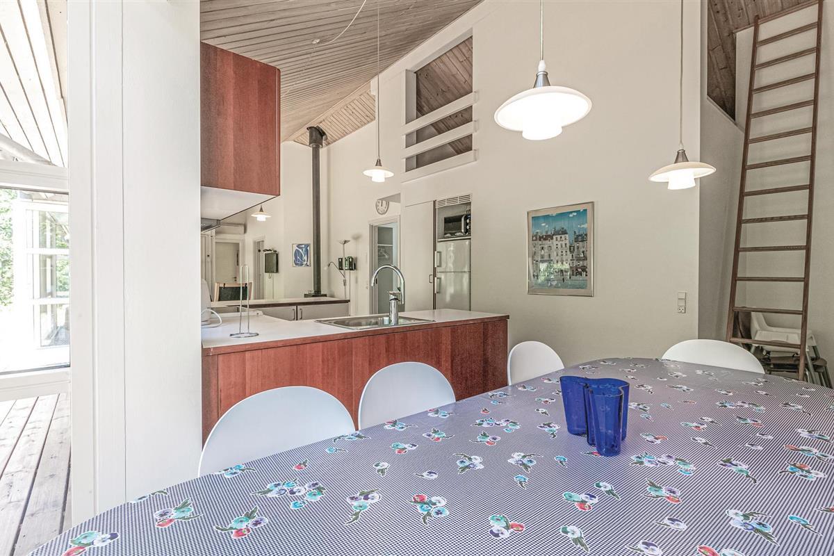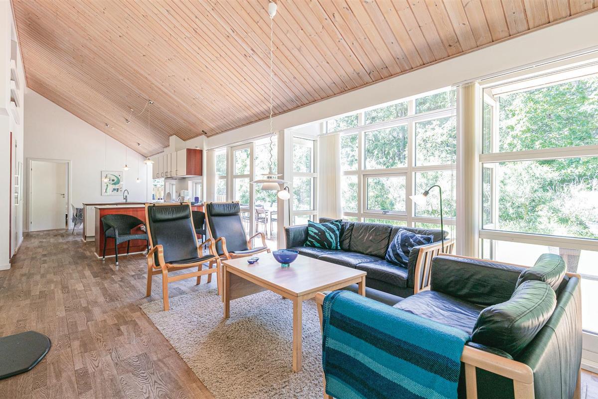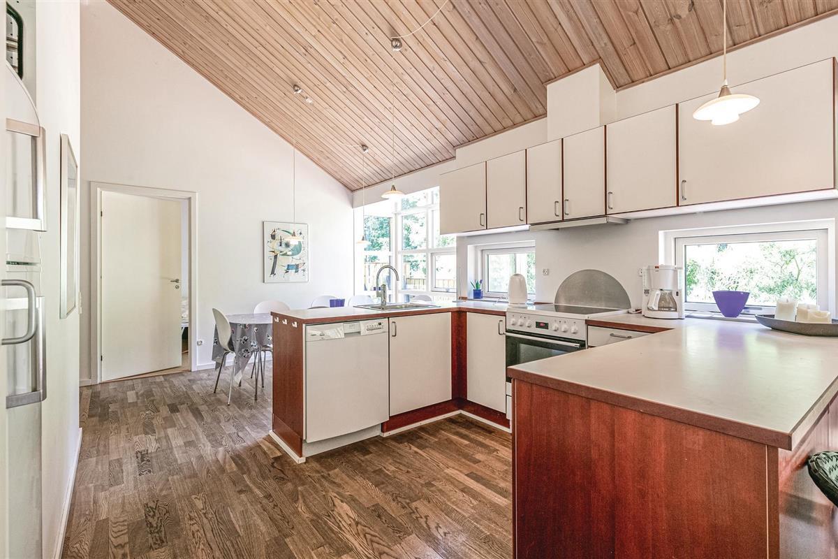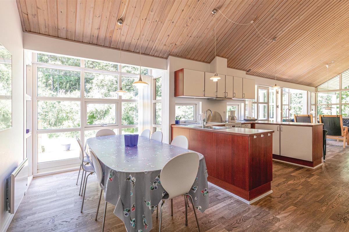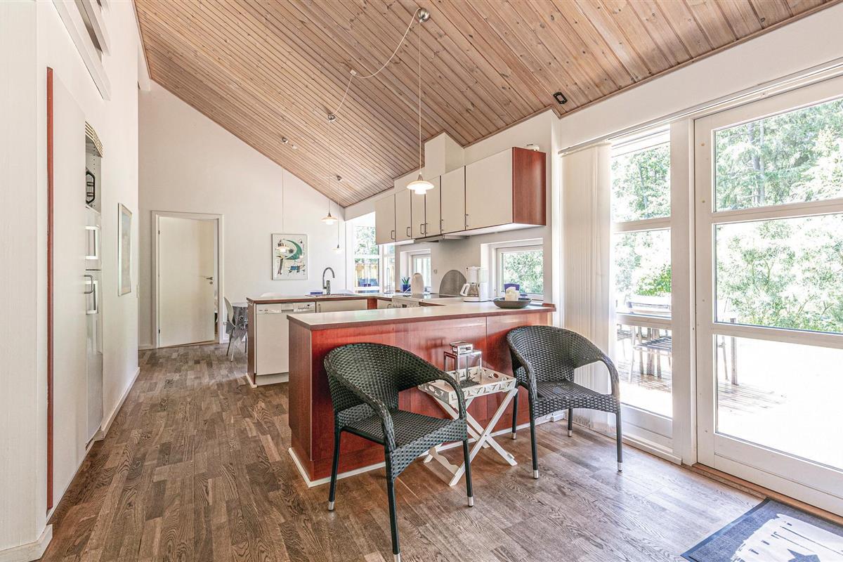 Bornholm Bornholm wordt terecht de parel van de Oostzee genoemd. Bijna nergens anders vind je zo'n gevarieerde natuur op zo'n klein oppervlak. Binnen een straal van 30 km liggen de beste, schoonste badstranden van Europa en duinlandschappen die zo schilderachtig zijn dat ze je de adem benemen. Al met al is Bornholm een miniatuurversie van Scandinavië met een bijzondere flair. Een eiland met geschiedenis¨ U heeft hier op veel plaatsen de beste mogelijkheden om iets bijzonders te beleven: Als u bijvoorbeeld de indrukwekkende kasteelruïne Hammershus tegenkomt, wandelt op de imposante Hammerknuden, de Paradijsheuvel met zijn grillige blok beklimt, een boottochtje maakt met de postboot van Svaneke naar de eilandengroep Ertholmene en het beroemde eiland Christiansø, wanneer u in het Bornhom Natuurcentrum in Åkirkeby iets te horen krijgt over de geologische geschiedenis, en ten slotte wanneer u het kunstmuseum bezoekt, prachtig gelegen op de kliffen van Helligkom, en natuurlijk de ronde kerken ziet, die tot de interessantste bijdragen van Bornholm aan de cultuurgeschiedenis behoren. Østerlars kerk is de grootste en mooiste in zijn soort. Nylars is de best bewaarde, terwijl Nyker de kleinste is. De lijst is eindeloos, maar één ding is zeker: Bornholm heeft voor elk wat wils. Over smaak gesproken: probeer eens vers gerookte haring in de gezellige ambiance van de rokerij. Dicht bij het strand en idyllisch bos Het 'Rubinsø Forest Park' ligt in een prachtige natuurlijke omgeving. De huizen staan op grote bos/natuurpercelen, niet ver van het Rubinsø-meer en slechts een paar minuten lopen van het kindvriendelijke zandstrand. Kleine bospaden leiden naar de huizen, die paarsgewijs liggen, op ruime afstand van elkaar, in open plekken die volledig ongestoord in het lichte bos liggen. De gekozen ligging, de interessante architectuur en de grote ramen vormen het juiste kader voor een ontspannende vakantie. Goede rust! Geweldige ervaringen, korte afstanden Bornholm is het perfecte eiland voor ontdekkingen per fiets. De afstanden zijn helemaal niet groot en het eiland is bezaaid met fietspaden en fietsvriendelijke routes. Vanuit Rubinsø bent u snel op de meest idyllische plekjes van het zonneneiland. Hier zijn enkele afstanden: Rønne ca. 10 km Sandvig ca. 15 km Gudhjem ca. 20 km Nyker ca. 8 km Hasle ca. 1 km Kwaliteitshuizen per twee gerangschikt in de prachtige natuur, 2-persoons whirlpool, 4 slaapkamers, moderne inrichting en uitrusting. Deze pracht en praal vindt u in Rubinsø, even ten zuiden van Hasle, op ca. 1250 m2 ongestoord land en slechts ca. 500 - 1000 m van een kindvriendelijk zandstrand. De 117 m2 architectonisch mooie huizen zijn gebouwd in 1999 - 2004 en bevatten alle comfort voor een heerlijk verblijf. De gezellige woonkeuken van 42 m2 heeft een heerlijke, ontspannen sfeer en een zeer praktische indeling.