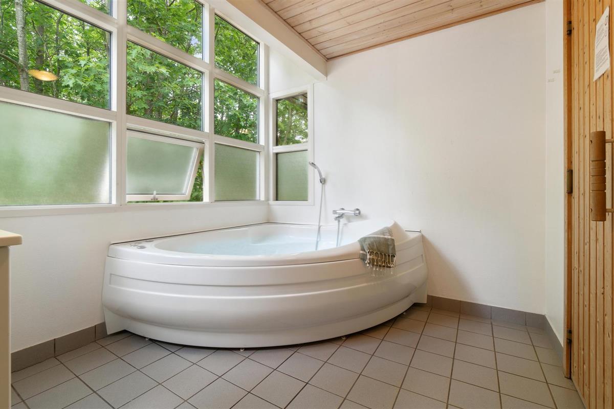 Comfortabel vakantiehuis in bosrijke omgeving nabij kindvriendelijk strand op Bornholm, met whirlpool en sauna voor ultieme ontspanning.