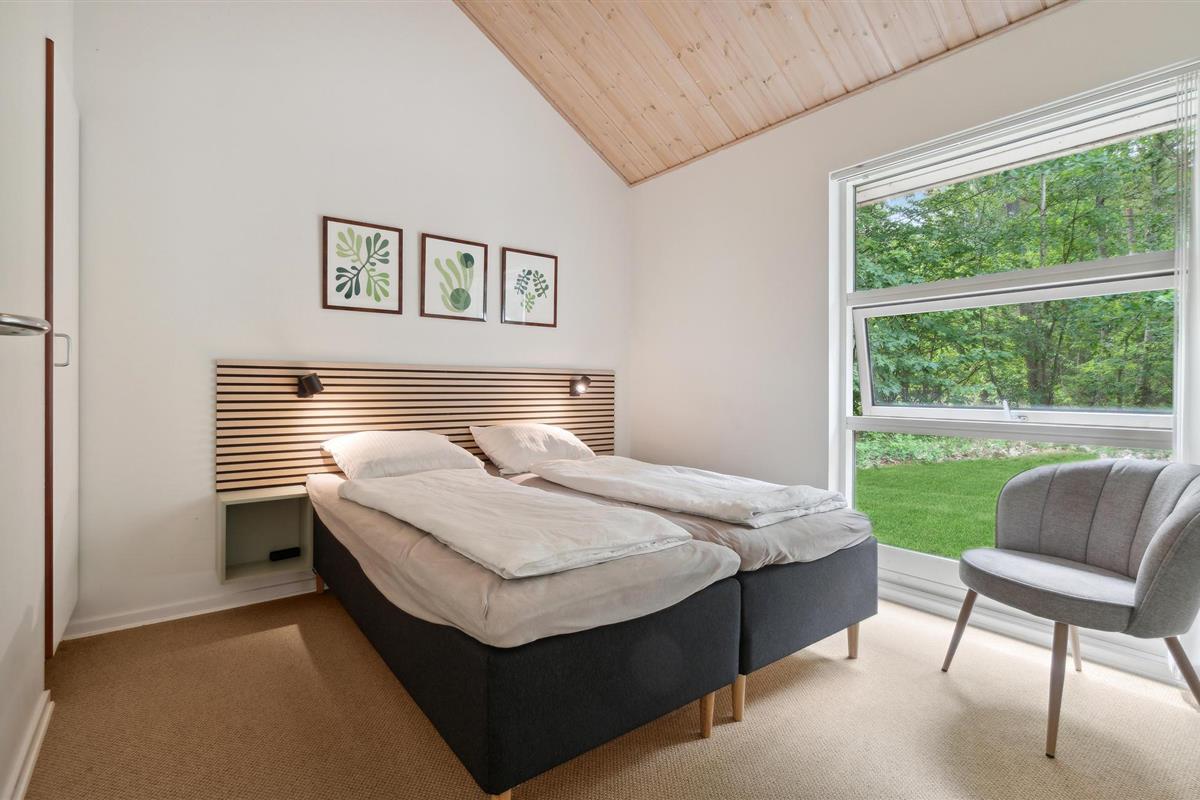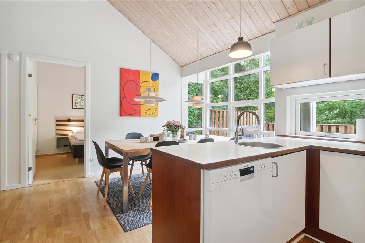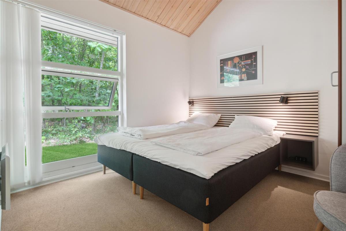 Bosidylle vlak bij het strand Het bospark 'Rubinsøen' ligt in het noordwesten van Bornholm, ten zuiden van Hasle en slechts 10 km ten noorden van de eilandhoofdstad Rønne. Een prachtig natuurgebied bestaande uit een rustgevend bosgebied en vlakbij een heerlijk breed en kindvriendelijk zandstrand. Niet ver van het bospark ligt 'Rubinsø' (Robijnmeer). De oorsprong van dit meer gaat terug tot de tijd dat hier steenkool werd gewonnen. Diep onder de grond werd een waterader gevonden, waardoor het meer in zeer korte tijd ontstond. Tegenwoordig kunt u hier vissen op snoek en andere vissen. Visvergunningen zijn ter plaatse tegen betaling verkrijgbaar. In dit vakantieparadijs, midden in het schaarse bos en niet ver van Rubinsø, werden in 1999 deze eersteklas, volledig nieuw ontworpen en in hun architectuur unieke vakantiehuisjes van hoge kwaliteit gebouwd. De individuele huisjes, losjes gerangschikt in groepen van twee, zijn qua inrichting en uitrusting harmonieus op elkaar afgestemd en zijn uiterst comfortabel. Ook de whirlpool is ontworpen met het oog op comfort. Hij is uitgerust voor 2 personen en belooft een hemelse onderwatermassage na een saunagang. Bornholm - het schatten- en fietseiland Bornholm is een Dorado voor actieve vakantiegangers, vooral voor gasten die het eiland per fiets willen ontdekken. Het spoorwegnet van het eiland, dat vele jaren geleden werd gesloten, is ontwikkeld tot een fantastisch netwerk van fietspaden en is de laatste jaren voortdurend uitgebreid. En er is zoveel te ontdekken. Naast de unieke ronde kerken, voormalige vestingkerken uit de 11e eeuw, kom je altijd de opvallende schoorstenen tegen van de witgekalkte haringrokerijen die oprijzen tot in de blauwe lucht. De geur van vers gerookte haring ('Bornholmer') doet je watertanden. Proef deze lekkernij. Natuurbelevenis eiland Bornholm Bornholm, met zijn milde klimaat dat het hele jaar door duurt, biedt zoveel unieke dingen om te doen en te zien die nergens anders in Scandinavië te vinden zijn: Van superstranden met het fijnste zand bij Dueodde in het zuiden tot de schilderachtige klifkust met indrukwekkende kustformaties in het noorden. En boven alles uittorenend op de noordelijke punt zijn de imposante ruïnes van kasteel Hammershus, de oudste in zijn soort in Scandinavië. Kleine afstanden tot vele belevenissen: - Rønne ca. 10 km - Sandvig ca. 15 km - Gudhjem ca. 20 km - Nyker ca. 8 km - Hasle ca. 1 km Kwaliteit eengezinswoningen met veel comfort op een prachtige boslocatie, alle slaapkamers met 2-pers. of 1-pers. bedden (elk 2 pers.), 2-pers. whirlpool, goede kamerindeling, groot zonneterras. Deur 80 cm breed! Bospark Rubinsøen ligt ten zuiden van Hasle en op slechts 500-1.000 m van een kindvriendelijk zandstrand. Deze kwaliteits huisjes zijn gebouwd in 1999-2004 met een grootte van 117m2 hout op 1250 m2 bos/natuur percelen elk. De 42 m2 grote woonkamer, met lichtovergoten