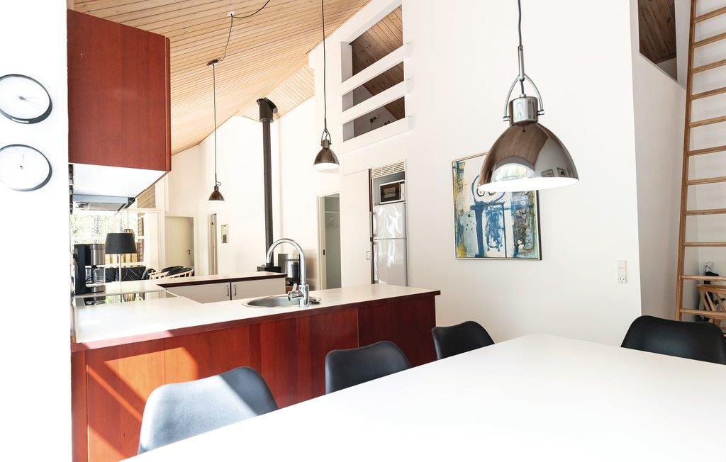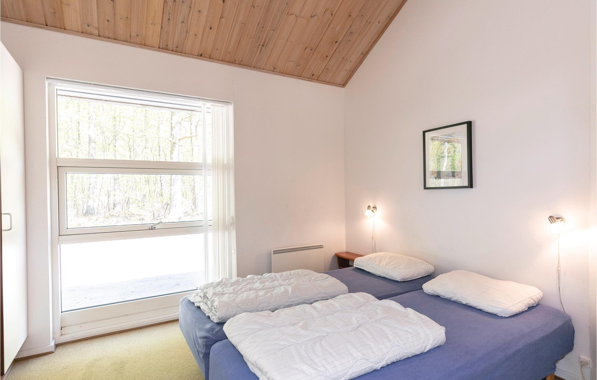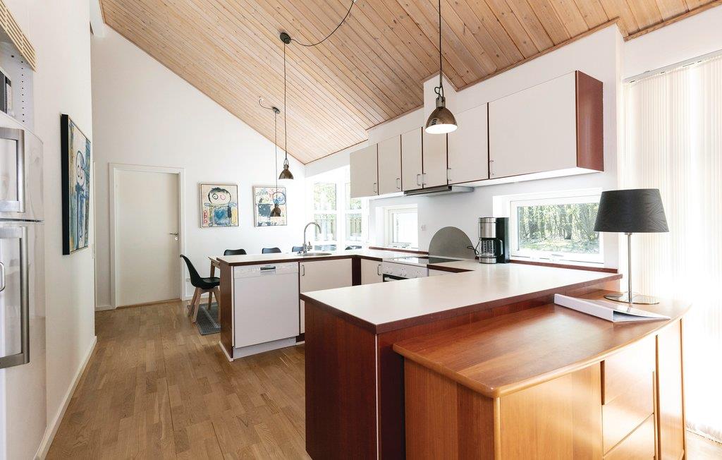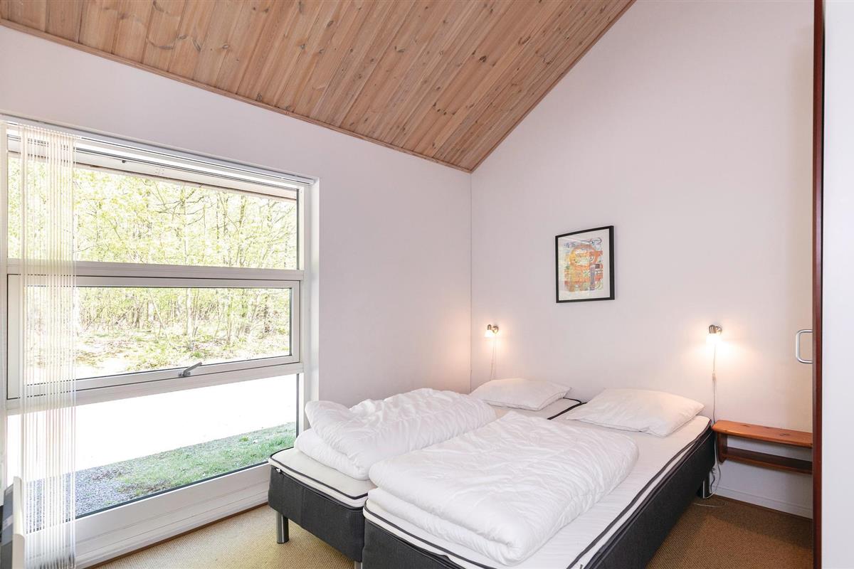 Bosidylle vlak bij het strand Het bospark 'Rubinsøen' ligt in het noordwesten van Bornholm, ten zuiden van Hasle en slechts 10 km ten noorden van de eilandhoofdstad Rønne. Een prachtig natuurgebied bestaande uit een rustgevend bosgebied en vlakbij een heerlijk breed en kindvriendelijk zandstrand. Niet ver van het bospark ligt 'Rubinsø' (Robijnmeer). De oorsprong van dit meer gaat terug tot de tijd dat hier steenkool werd gewonnen. Diep onder de grond werd een waterader gevonden, waardoor het meer in zeer korte tijd ontstond. Tegenwoordig kunt u hier vissen op snoek en andere vissen. Visvergunningen zijn ter plaatse tegen betaling verkrijgbaar. In dit vakantieparadijs, midden in het schaarse bos en niet ver van Rubinsø, werden in 1999 deze eersteklas, volledig nieuw ontworpen en in hun architectuur unieke vakantiehuisjes van hoge kwaliteit gebouwd. De individuele huisjes, losjes gerangschikt in groepen van twee, zijn qua inrichting en uitrusting harmonieus op elkaar afgestemd en zijn uiterst comfortabel. Ook de whirlpool is ontworpen met het oog op comfort. Hij is uitgerust voor 2 personen en belooft een hemelse onderwatermassage na een saunagang. Bornholm - het schatten- en fietseiland Bornholm is een Dorado voor actieve vakantiegangers, vooral voor gasten die het eiland per fiets willen ontdekken. Het spoorwegnet van het eiland, dat vele jaren geleden werd gesloten, is ontwikkeld tot een fantastisch netwerk van fietspaden en is de laatste jaren voortdurend uitgebreid. En er is zoveel te ontdekken. Naast de unieke ronde kerken, voormalige vestingkerken uit de 11e eeuw, kom je altijd de opvallende schoorstenen tegen van de witgekalkte haringrokerijen die oprijzen tot in de blauwe lucht. De geur van vers gerookte haring ('Bornholmer') doet je watertanden. Proef deze lekkernij. Natuurbelevenis eiland Bornholm Bornholm, met zijn milde klimaat dat het hele jaar door duurt, biedt zoveel unieke dingen om te doen en te zien die nergens anders in Scandinavië te vinden zijn: Van superstranden met het fijnste zand bij Dueodde in het zuiden tot de schilderachtige klifkust met indrukwekkende kustformaties in het noorden. En boven alles uittorenend op de noordelijke punt zijn de imposante ruïnes van kasteel Hammershus, de oudste in zijn soort in Scandinavië. Kleine afstanden tot vele belevenissen: - Rønne ca. 10 km - Sandvig ca. 15 km - Gudhjem ca. 20 km - Nyker ca. 8 km - Hasle ca. 1 km Kwaliteit eengezinswoningen met veel comfort op een prachtige boslocatie, alle slaapkamers met 2-pers. of 1-pers. bedden (elk 2 pers.), 2-pers. whirlpool, goede kamerindeling, groot zonneterras. Deur 80 cm breed! Bospark Rubinsøen ligt ten zuiden van Hasle en op slechts 500-1.000 m van een kindvriendelijk zandstrand. Deze kwaliteits huisjes zijn gebouwd in 1999-2004 met een grootte van 117m2 hout op 1250 m2 bos/natuur percelen elk. De 42 m2 grote woonkamer, met lichtovergoten