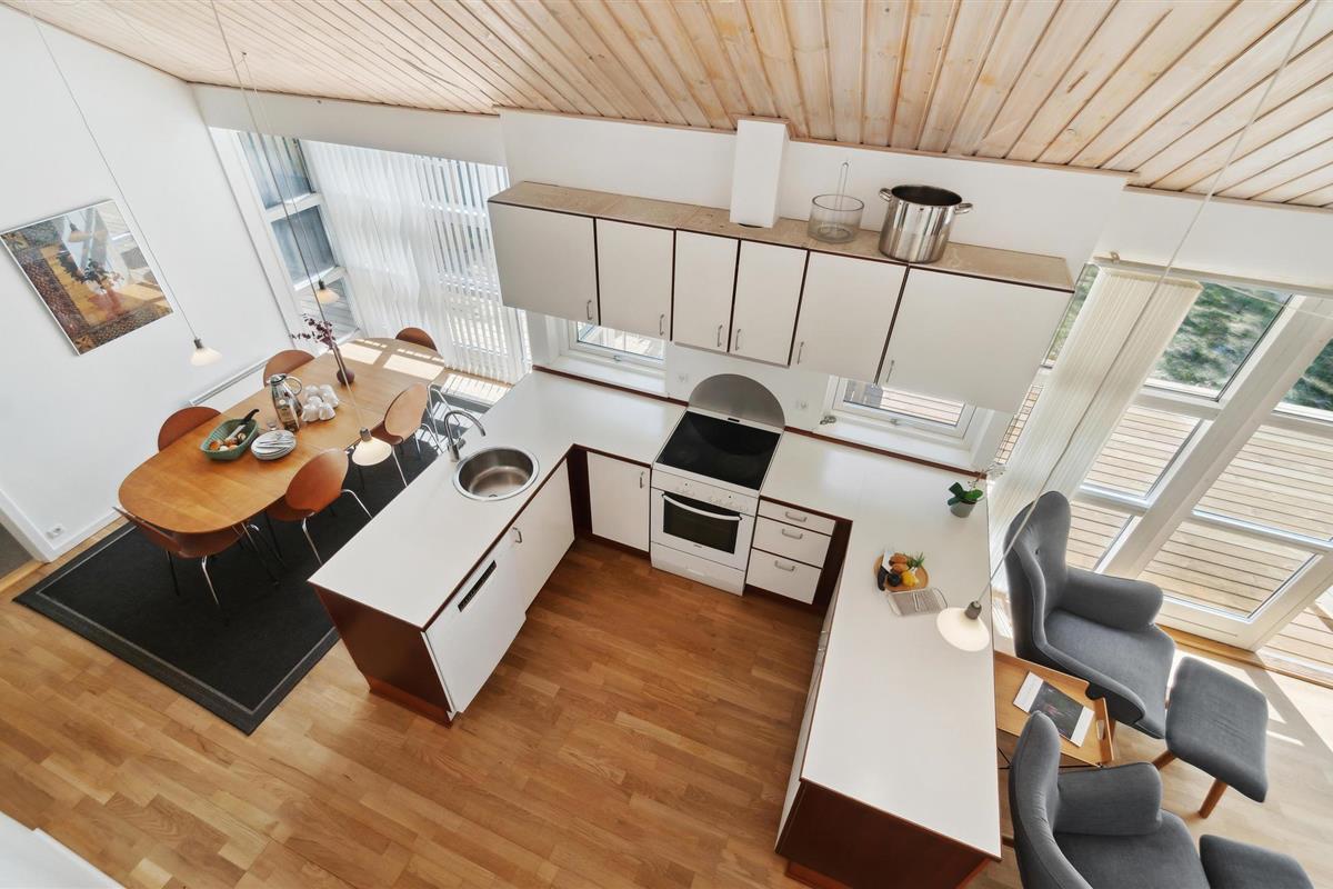 De woonkamer van 42 m2 is verbonden met de open keuken. Overal heerst een heerlijke sfeer, die wordt onderstreept door de goede en praktische inrichting. Accentueer de sfeer met uw favoriete muziek op de Sonos speakers, die verbonden zijn met Bluetooth. De grote ramen bieden een goede gelegenheid om de prachtige natuur te observeren. Een heerlijke whirlpool voor 2 wacht op u in de grote badkamer, en er is ook de mogelijkheid van een uitstapje naar de sauna. De spa is elegant gelegen in een erker met glas aan de 3 zijden.