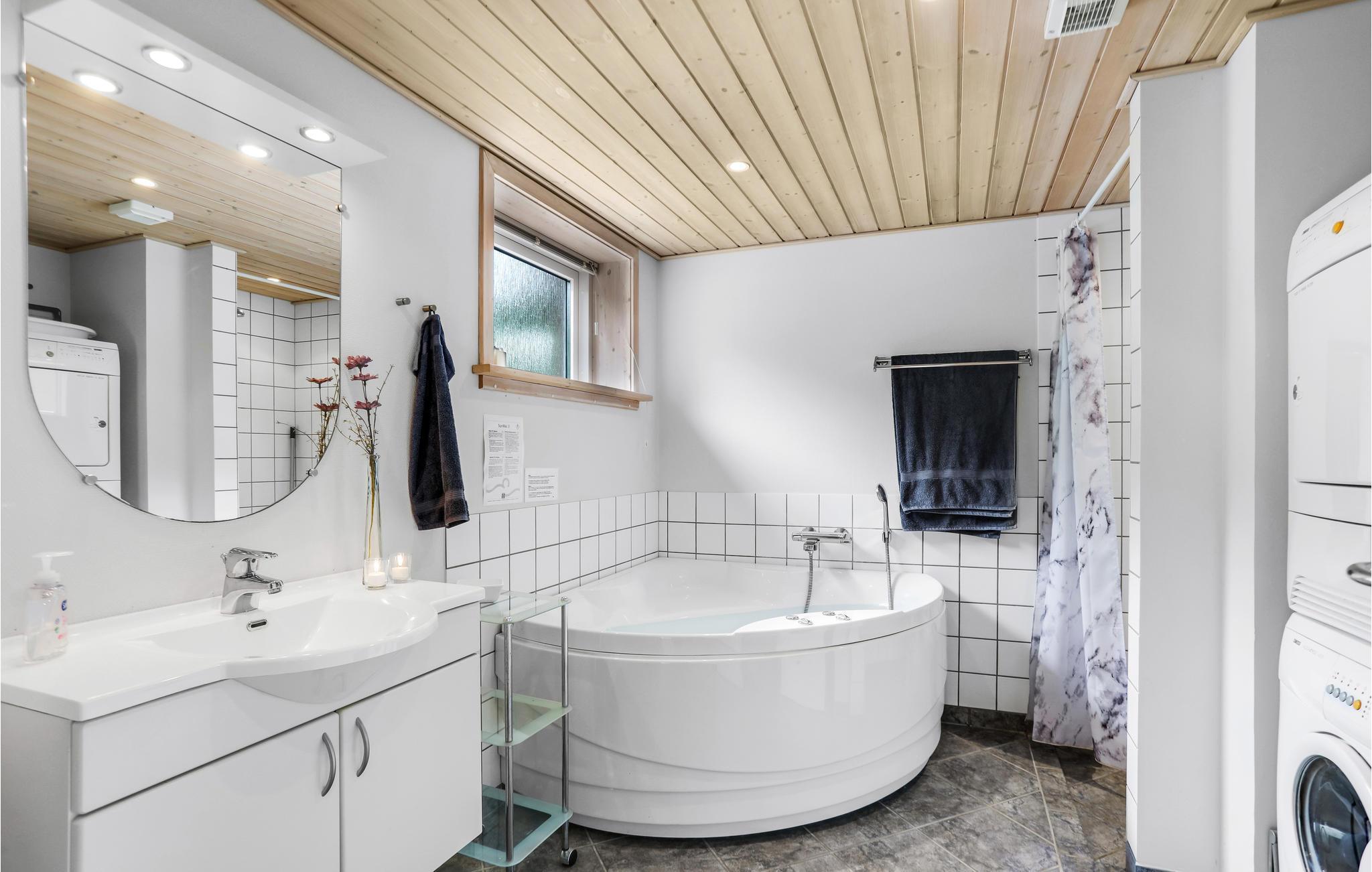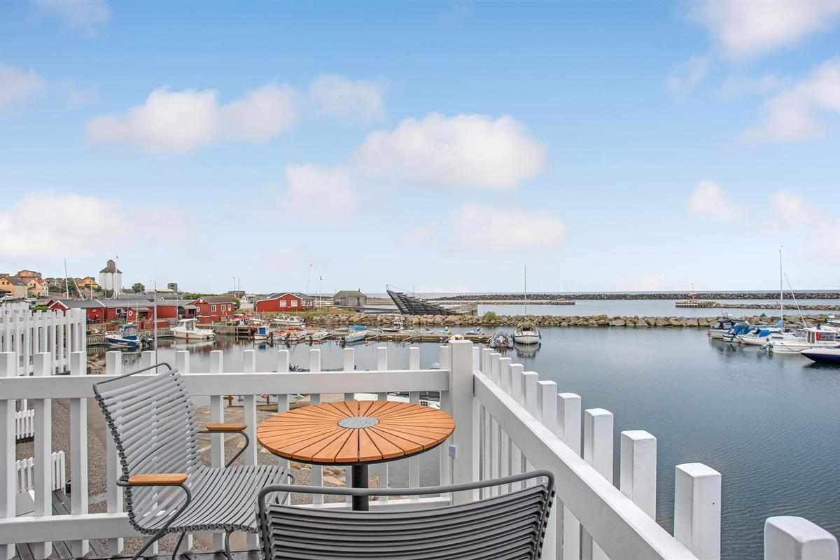 Modern vakantiehuis met bubbelbad en uitzicht op Hasle Marina, ideaal voor ontspannen vakanties op Bornholm.
