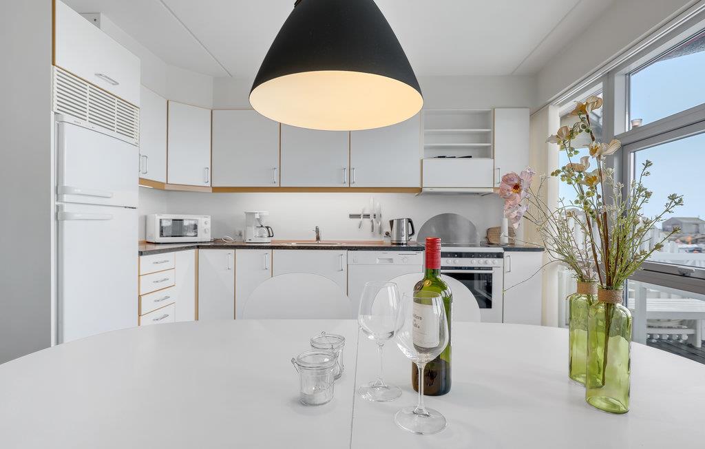 Dit kwaliteitsvakantiehuis biedt u een prachtig uitzicht op zee op 2 verdiepingen. Het is licht en mooi ingericht en ligt aan de jachthaven van Hasle. De hoogwaardige inrichting omvat een ruime keuken/woonkamer met directe toegang tot het terras en de barbecue. Mooie badkamers en goede kamers zorgen ervoor dat u zich hier thuis voelt. De begane grond wordt verwarmd met vloerverwarming. Op de 1e verdieping wacht u een woonkamer met een open plafond naar de nok en uitzicht op zee. Hier vindt u een gezellige houtkachel en zitmeubelen, en natuurlijk is er gratis internet. Dakramen zorgen voor een bijzondere sfeer. Vanaf het balkon kunt u zonsondergangen bekijken. De omgeving wordt gedomineerd door een bijzondere maritieme sfeer, vooral als de bootjes in de haven aankomen met de vangst van de dag. In 2012 werd hier een nieuw havenbad voltooid, en er is ook een zandstrand, cafés, boetieks en een rokerij. Hier kiest u voor een vakantiehuis met veel comfort en een verzorgde inrichting - een vakantie hier is in elk jaargetijde heerlijk.