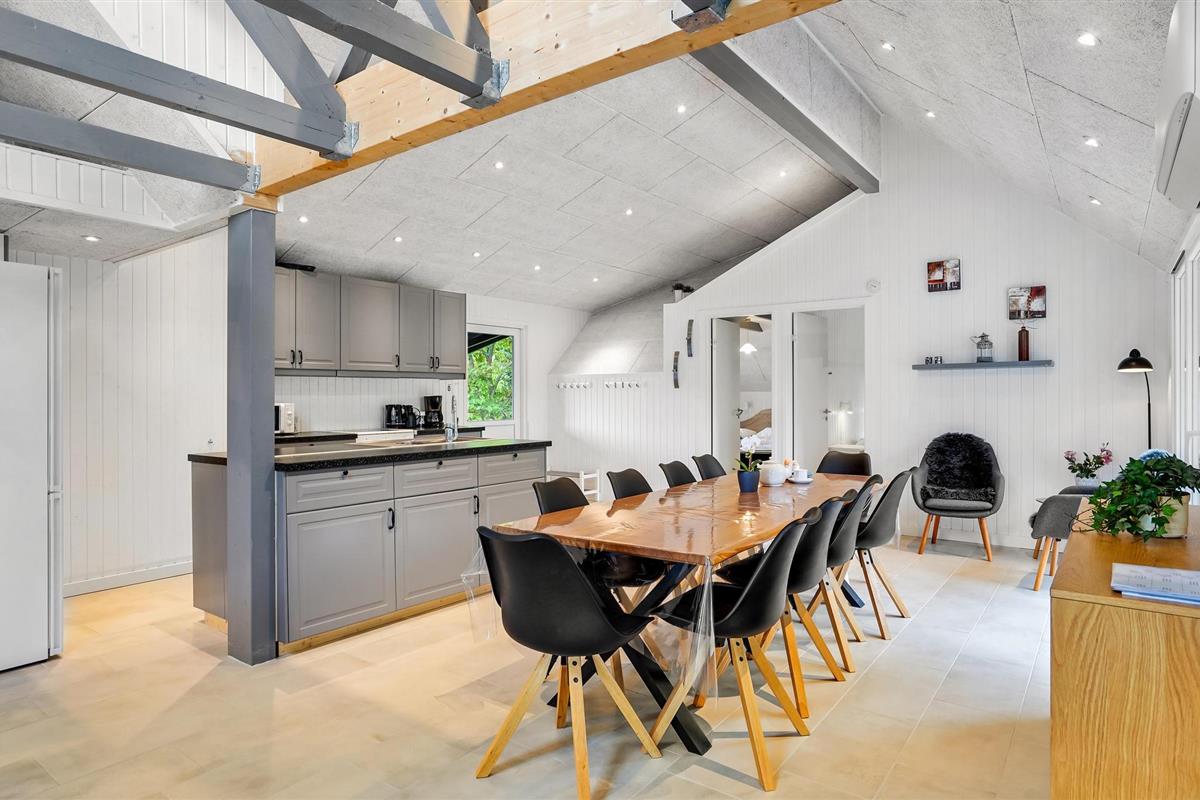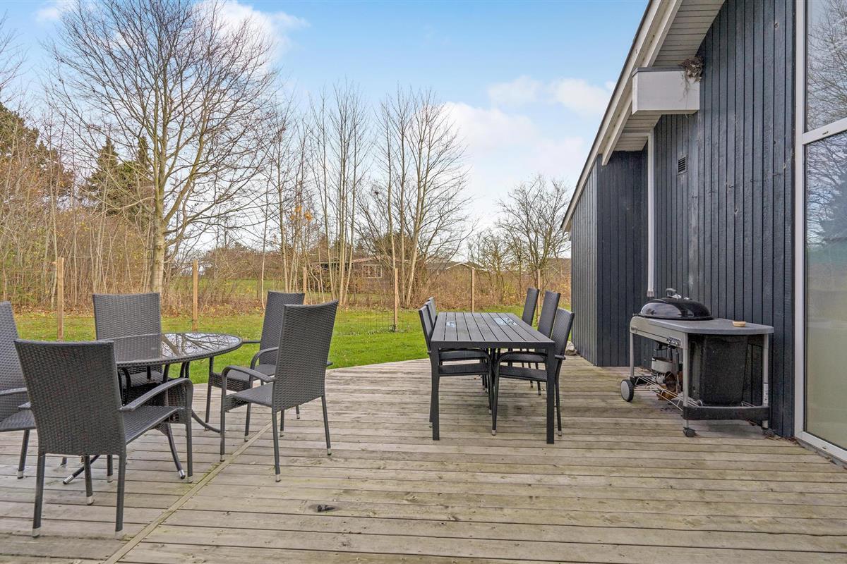 Bij het vakantiehuis hoort een heerlijke biljartkamer waar u zich zeker uren kunt vermaken. In de gezellige woonkamer zijn er zichtbare plafondbalken. De open haard houdt u ook in de winter gezellig. Het terras strekt zich uit rondom het huis en is zelfs overdekt voor de woonkamer. Een beschutte plek is dus gemakkelijk te vinden. Het Kattegat en Øster Hurup liggen op loopafstand. Øster Hurup, een groot zomerparadijs aan het Kattegat. Hier kunt u winkelen, wandelen in de haven en zwemmen op het kindvriendelijke strand. Goed visgebied. Bezoek ook Aalborg, Randers en Hadsund. Maak een fietstocht naar Lille Vildmose, het grootste hoogveen van Noord-Europa.