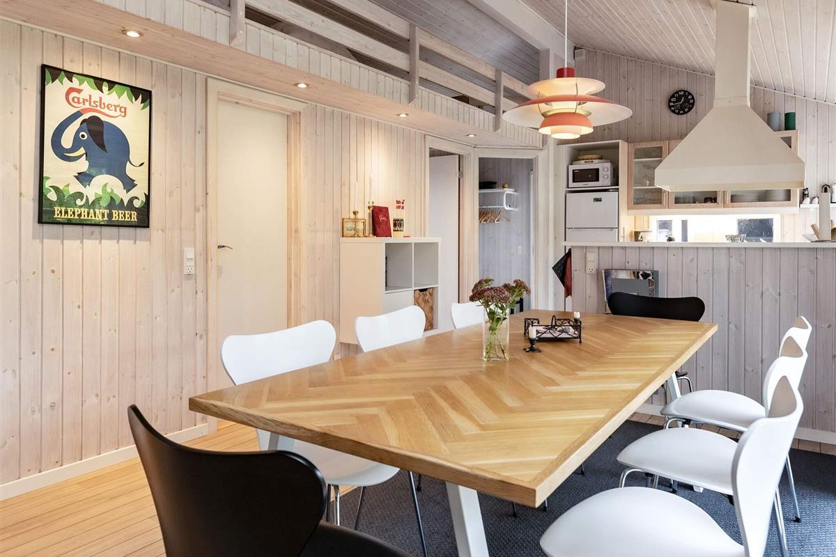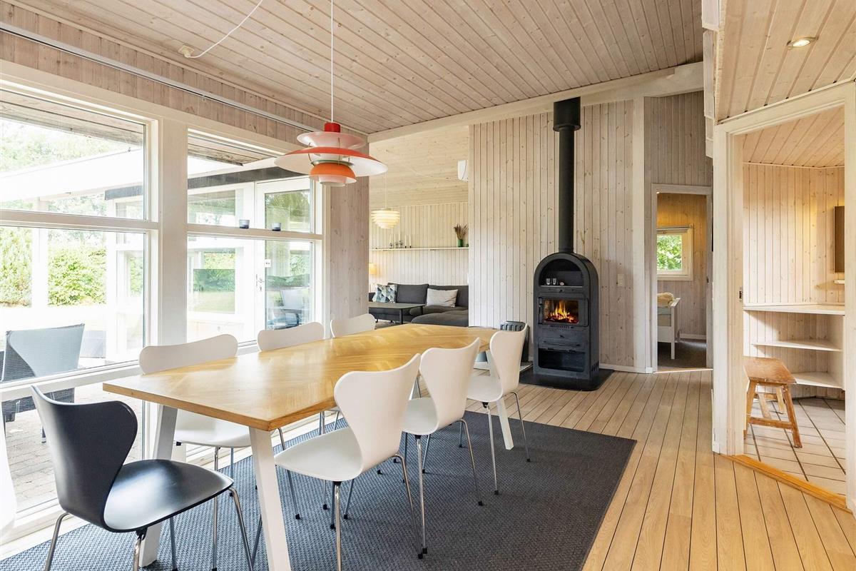 Im hell und wohnlich gestalteten Wohn- und Essbereich gibt es einen Kaminofen für die kühlere Jahreszeit. Zur techischen Ausstattung gehören TV mit einigen deutschen Sendern zur Auswahl sowie WLAN und DVD-Spieler.
