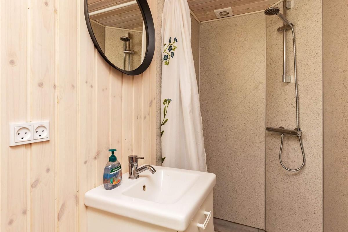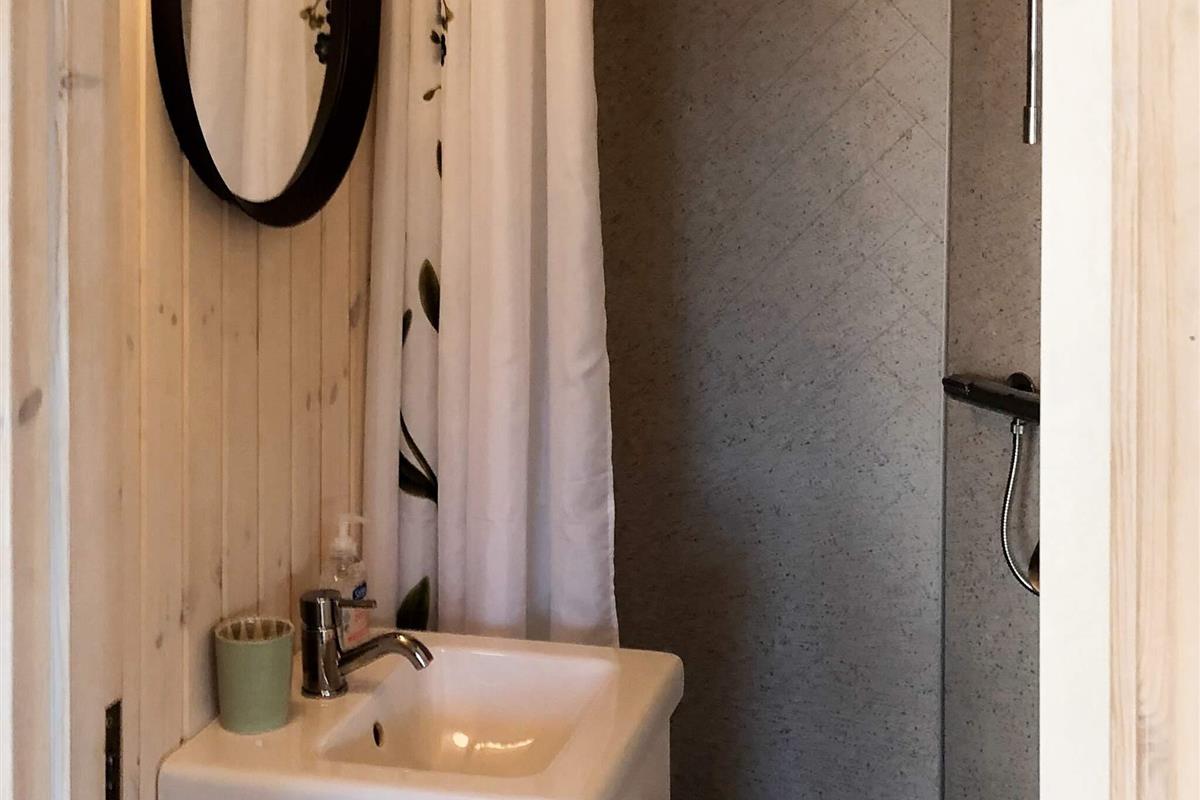 Es stehen im Ferienhaus drei Schlafzimmer mit jeweis zwei Schlafplätzen Verfügung; zwei Doppelbetten mit 3/4 Breite sowie zwei Einzelbetten. Außerdem gibt es oben unter der Dachschräge einen offenen Hems mit zwei weiteren Schlafplätzen.