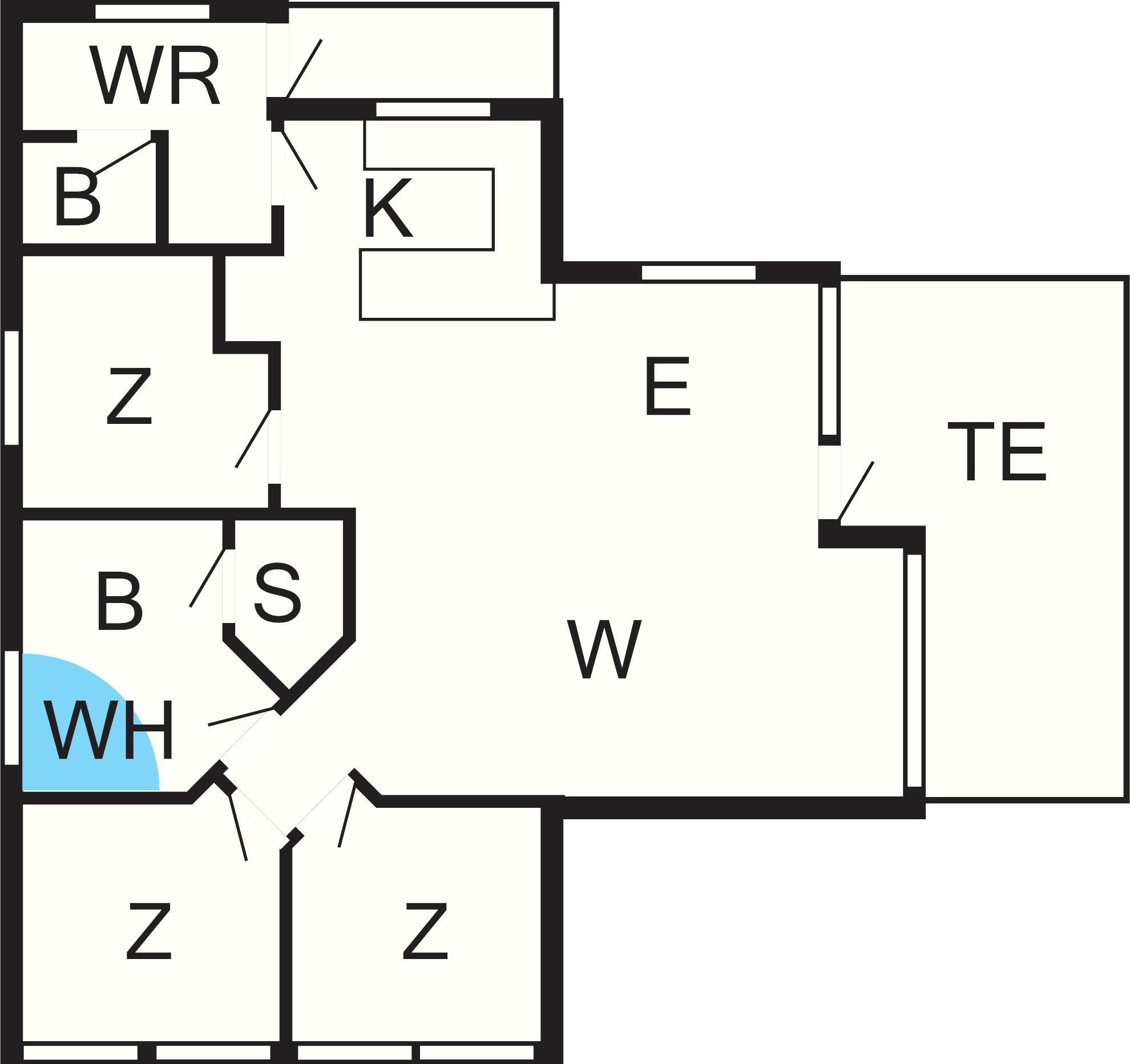 Bad: WC, Waschb., Dusche, Fußbodenheiz.