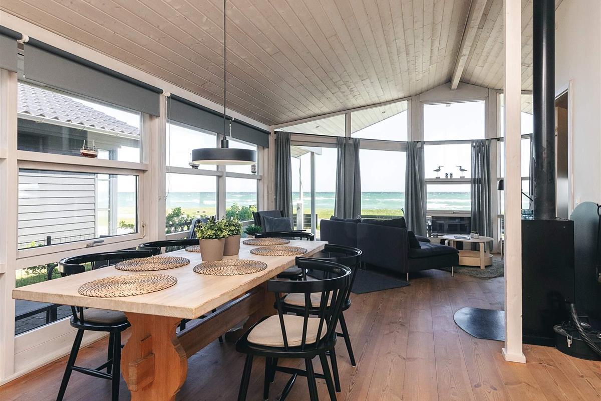 Auf einem Strandgrundstück direkt am Strand steht dieses Ferienhaus mit schöner Aussicht auf das Wasser. Eine bessere Lage gibt es nicht. Beim Bau und bei der Einrichtung wurde Wert auf viel Licht und Helligkeit gelegt. Zum Haus gehören eine offene und überdachte Terrasse, eine zum Wasser hin, und eine ungestört hinter dem Haus. Das Bad verfügt über Fußbodenheizung und Dusche. Auf dem Grundstück sind Spielgeräte für die kleinen Gäste aufgestellt.
