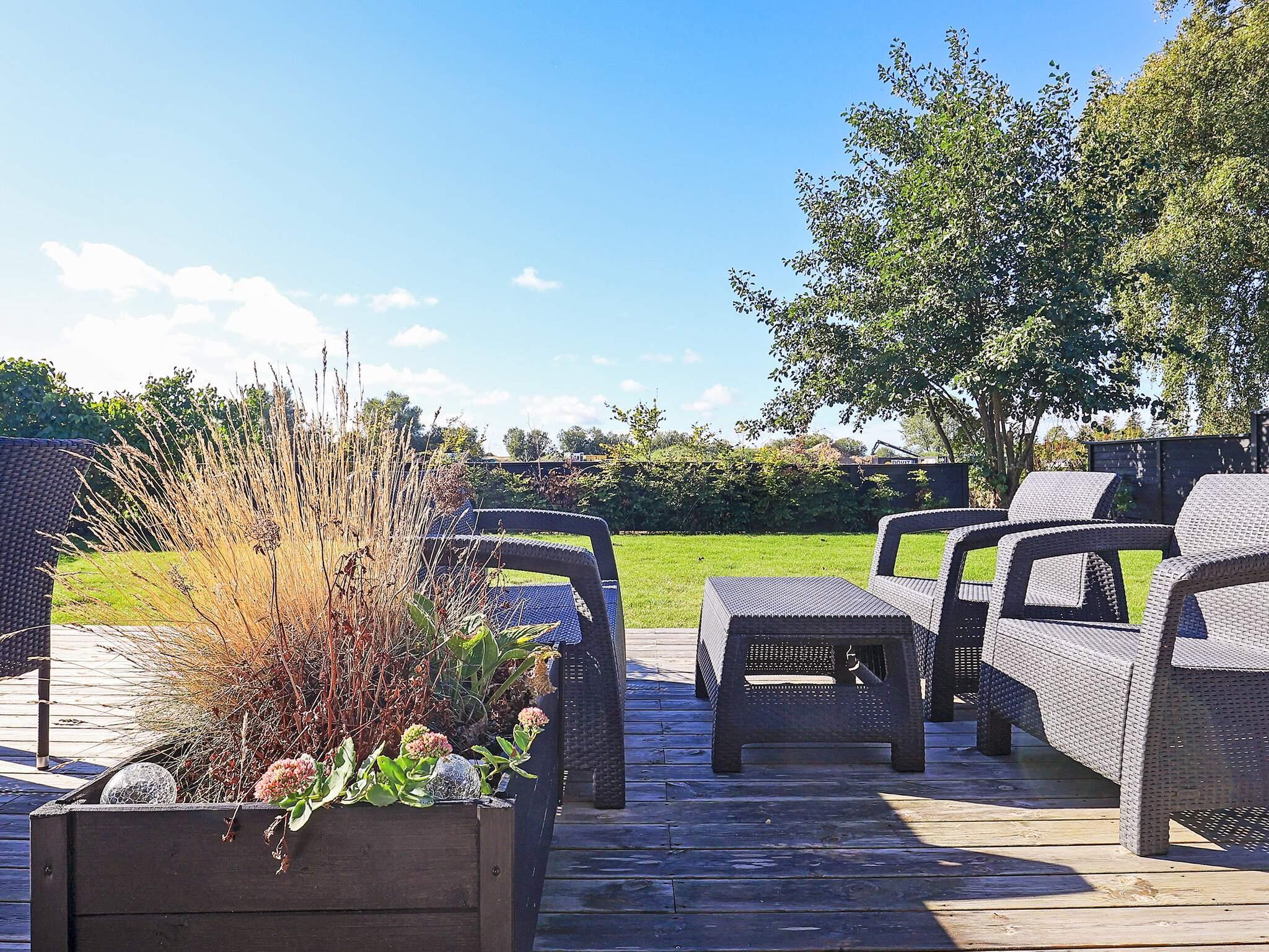 Das Ferienhaus liegt auf einem ebenen, offenen Naturgrundstück mit Rasen, nur etwa 150 m vom Meer. Etwa 300 m entfernt findet man einen Campingplatz mit Einkaufsmöglichkeiten und Gaststätte im Sommer. Zudem gibt es dort Freizeitangebote für Kinder, z.B. ein Badeland. \