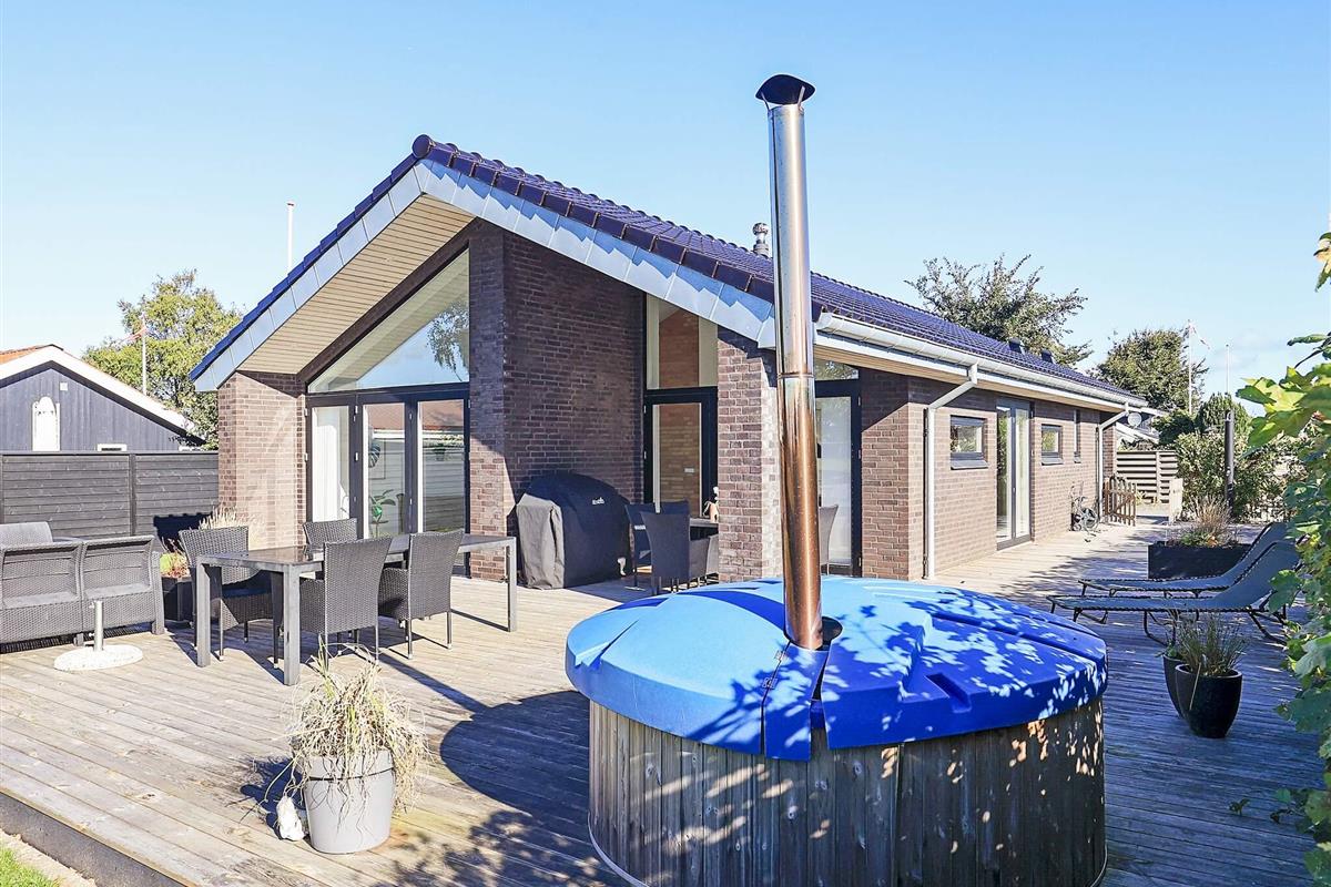 Bei Hasmark Strand findet man nur etwa 150 m von der Ostseeküste dieses freistehende Ferienhaus mit Badezuber im Außenbereich. Es wurde hell und modern ausgestattet, in typisch skandinavischem, eher funktionalem Stil.