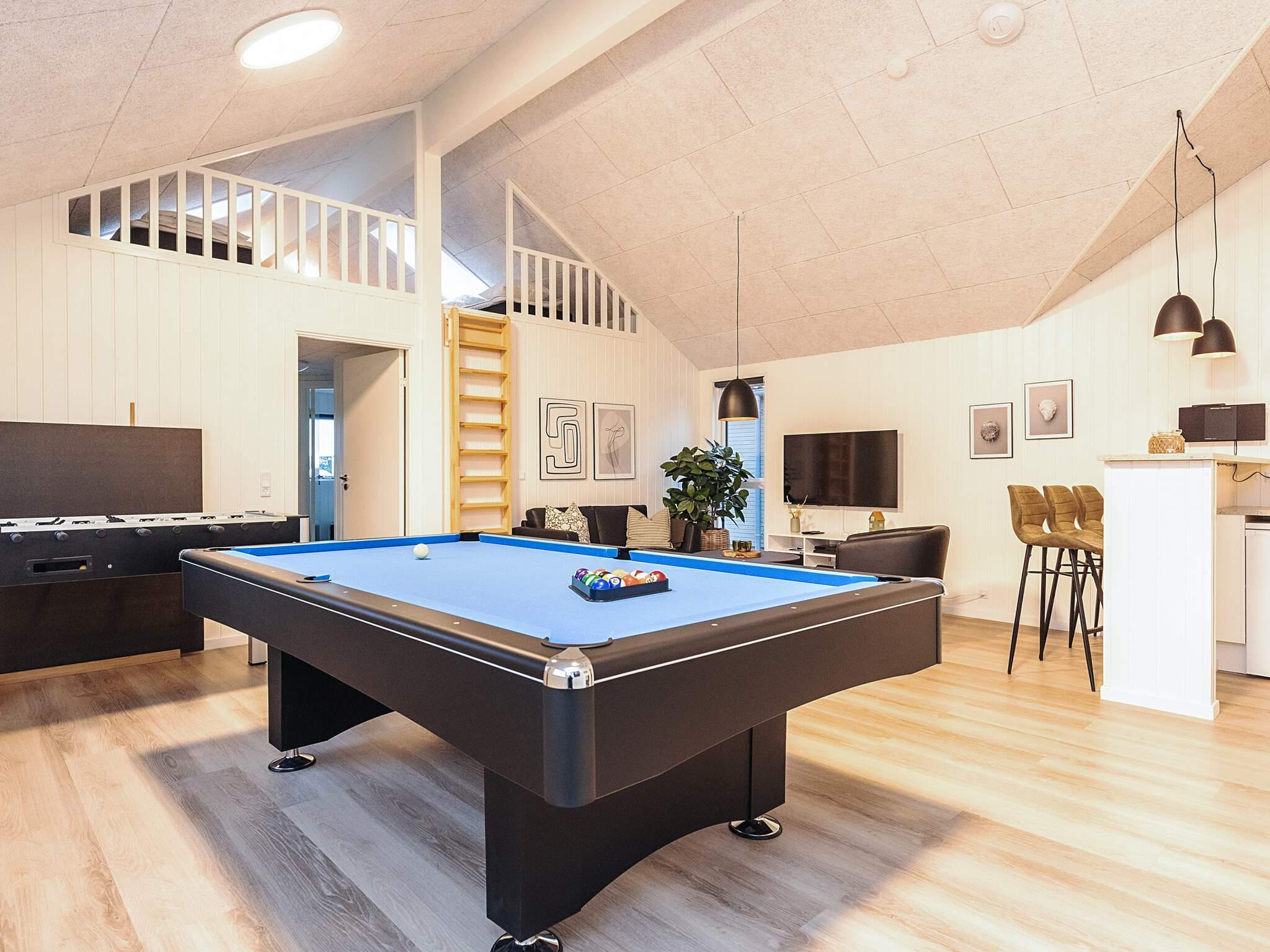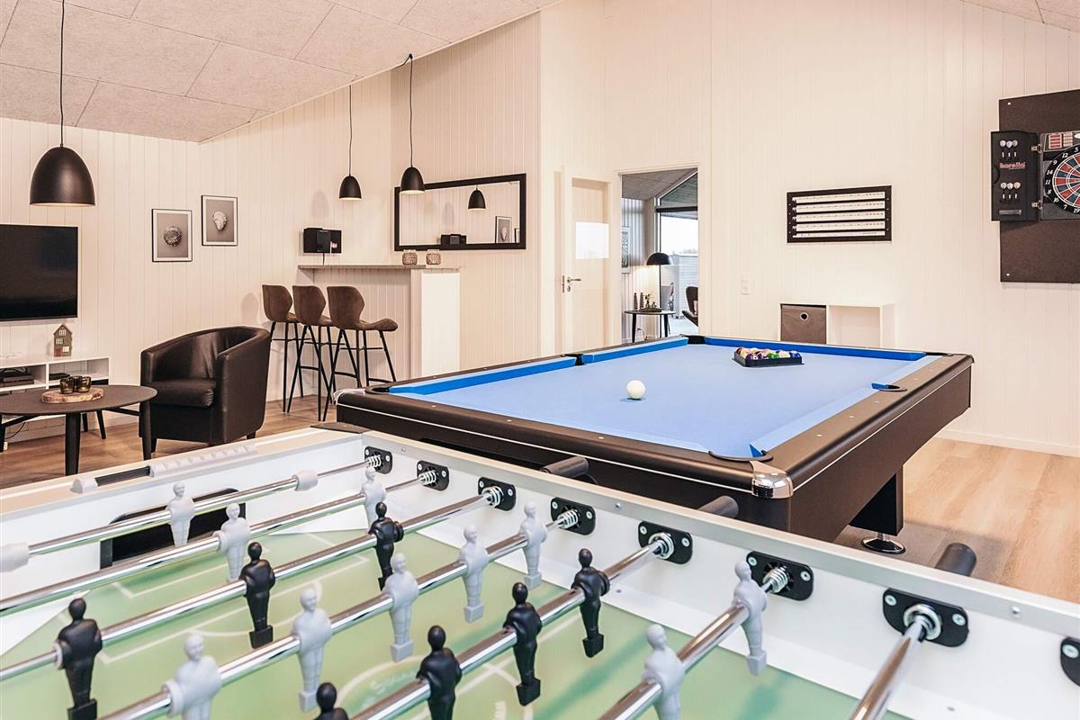 Der Aktivitätsraum des Ferienhauses bietet mit Tischfußball, Tischtennis, Darts und Billard jede Menge Möglichkeiten für Spaß und Wettkampf. Wer Lust hat zuzuschauen, kann sich in der Sitzecke eine Pause gönnen oder einen Drink von der Bar genießen.