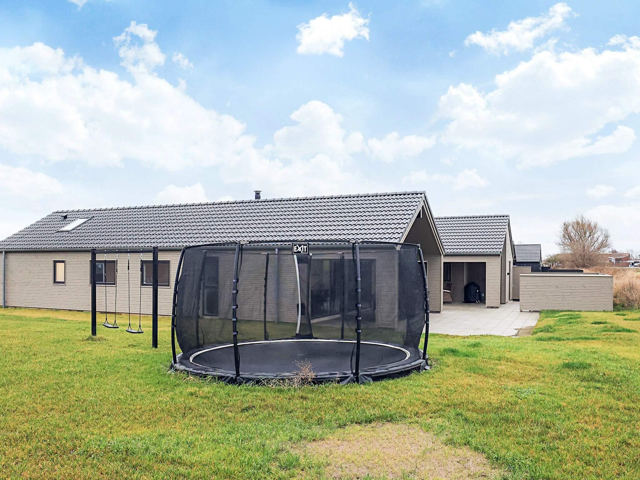 Im Außenbereich erwartet Sie eine große Terrasse mit bequemen Gartenmöbeln und Lounge-Sets, auf der Sie die Sonne und Grillabende genießen können. Die Kinder können sich auf dem unterirdischen Trampolin (Benutzung auf eigene Gefahr/Versicherung) und den am Boden befestigten Schaukeln vergnügen.