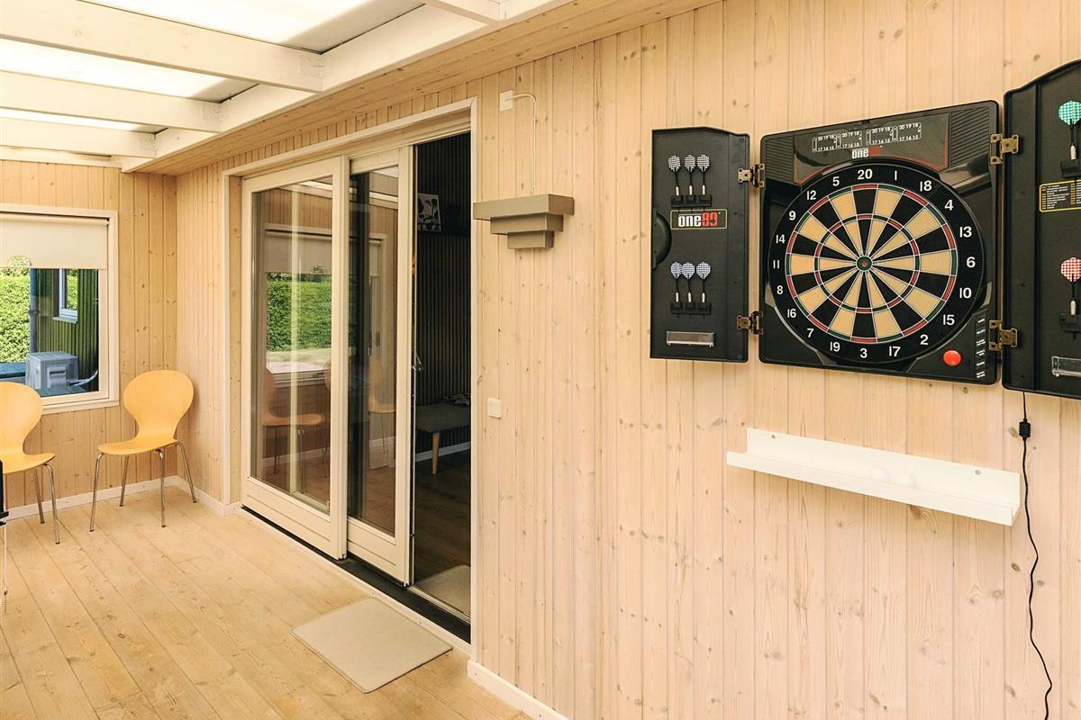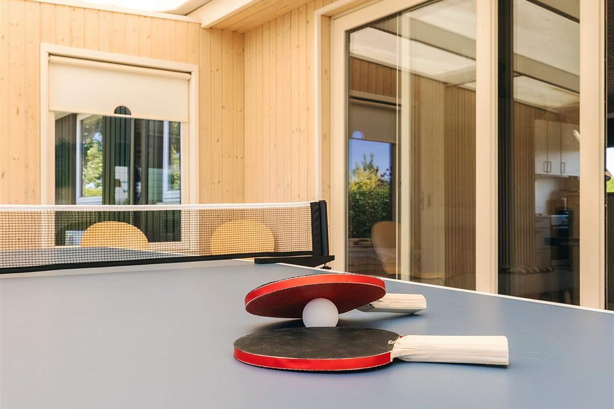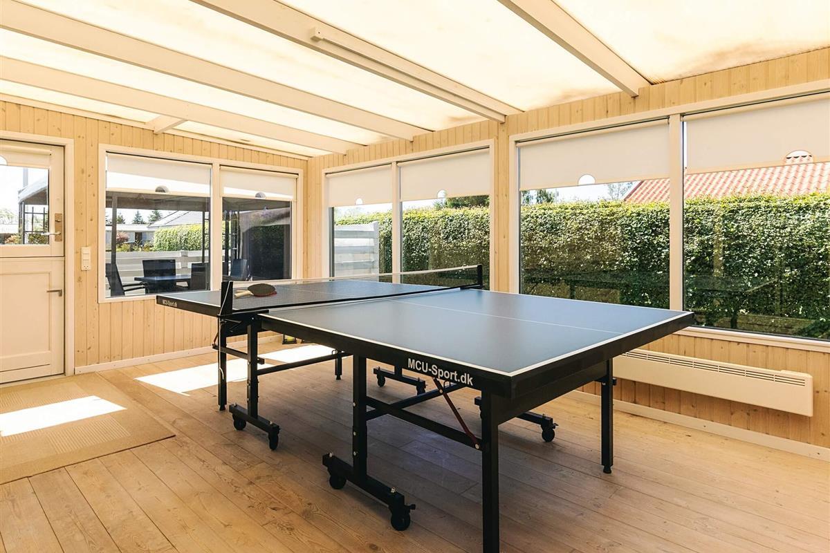Das Badezimmer verfügt über eine Dusche, ein Waschbecken und eine Toilette. Eine Elektroheizung und eine Luft-Luft-Wärmepumpe sorgen das ganze Jahr über für Komfort. Ein eingezäunter Garten mit Gartenmöbeln und einem Holzkohlegrill lädt zu entspannten Nachmittagen ein. Im hellen Wintergarten können Gäste Tischtennis oder Darts spielen. Das Haus verfügt außerdem über dänische und deutsche Fernsehsender und ist komplett rauchfrei.