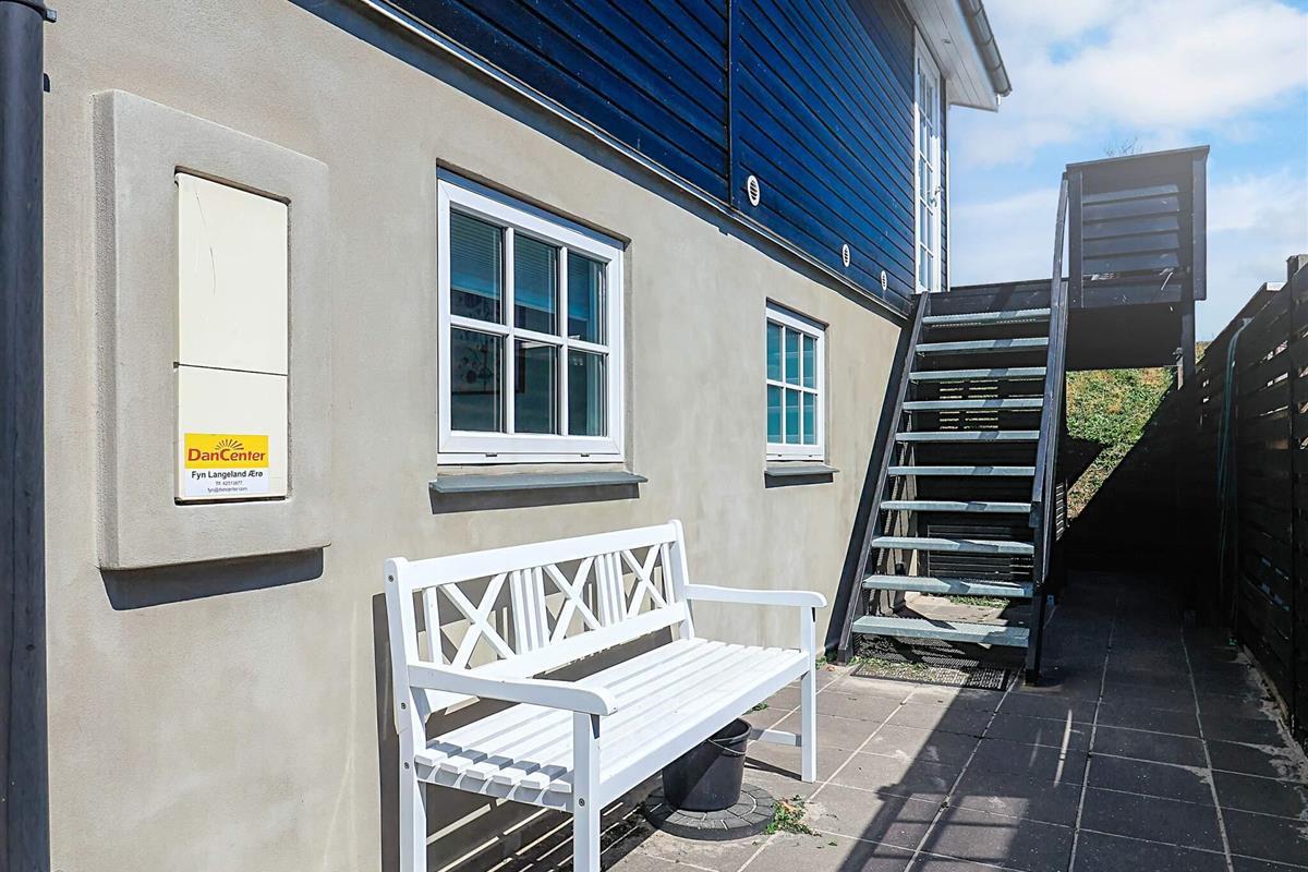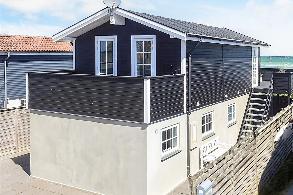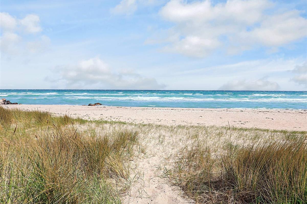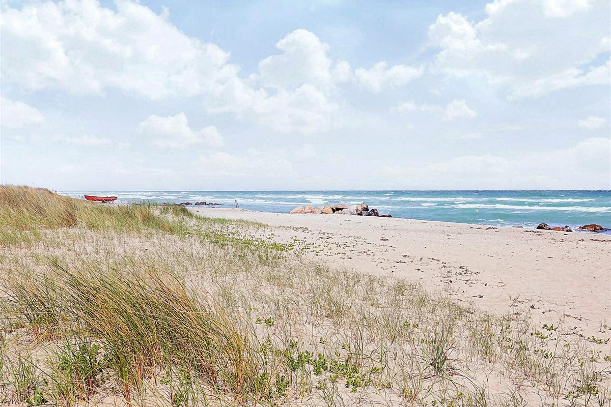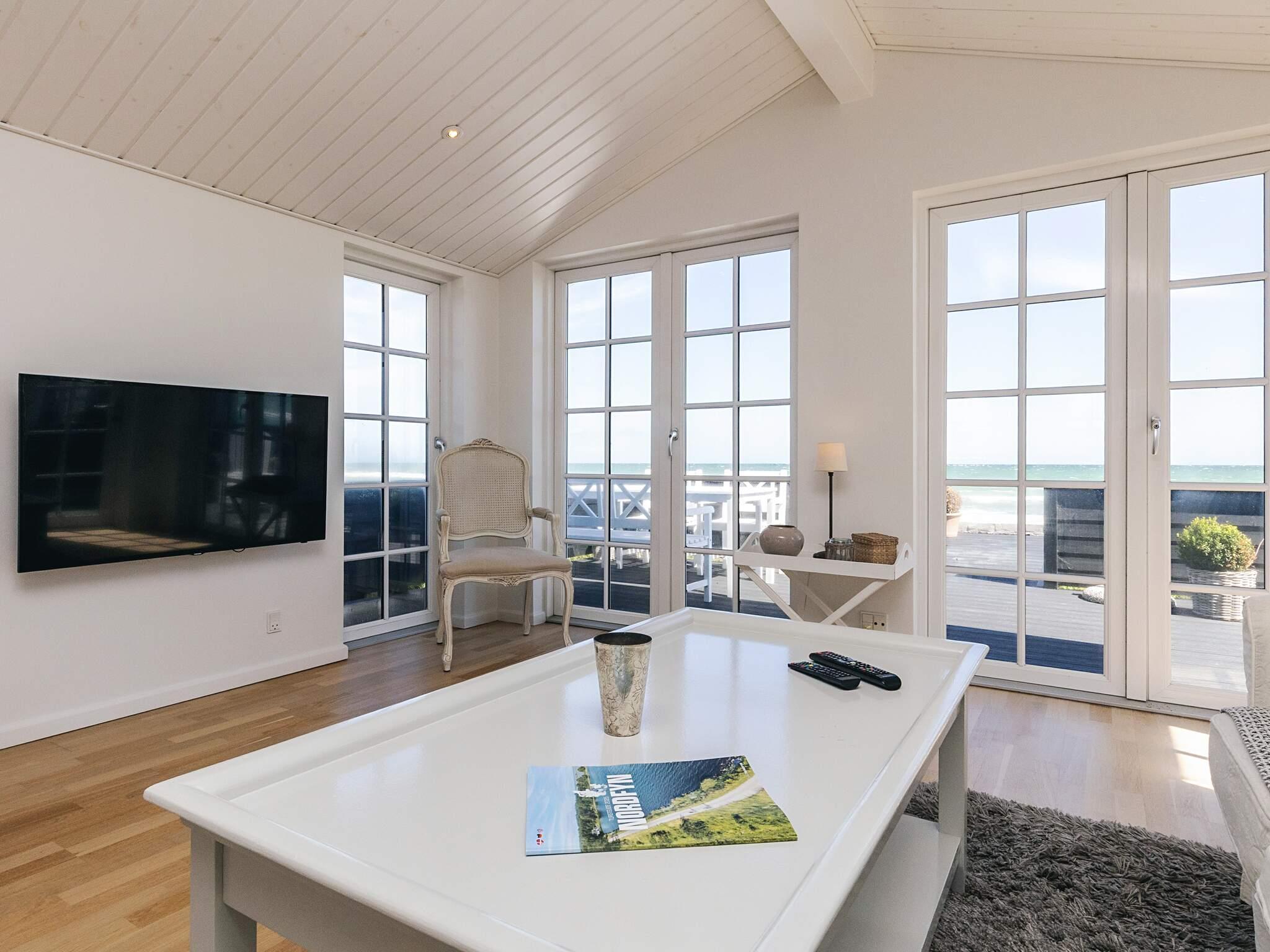 Bei Hasmark Strand liegt dieses Ferienhaus, ganz unten am Wasser und mit direktem Zugang zum Strand. Von Haus und Terrasse bietet sich eine einmalige Aussicht auf das Wasser, das nur ein paar Meter entfernt ist. Im Erdgeschoss gibt es zwei Schlafzimmer und ein Bad mit Dusche, Waschmaschine und Trockner. Der große, helle Küchen-Ess-Wohnbereich liegt im Obergeschoss. Fernseher mit dänischen Sendern. Genießen Sie die herrliche Aussicht durch die großen Fenster des Wohnzimmers. Der Strand ist besonders kinderfreundlich. Kleine Buhnen spenden Schutz. Nur eine kurze Autofahrt vom Haus können Sie Golf spielen, im Sommer Pferde mieten, Hofläden oder historische Stätten besuchen.