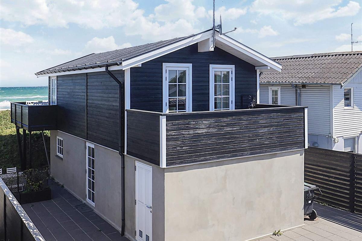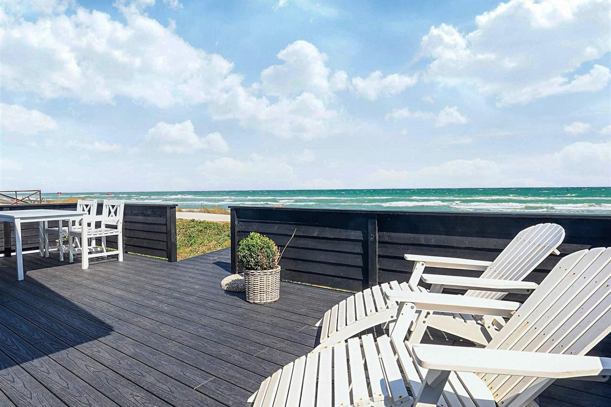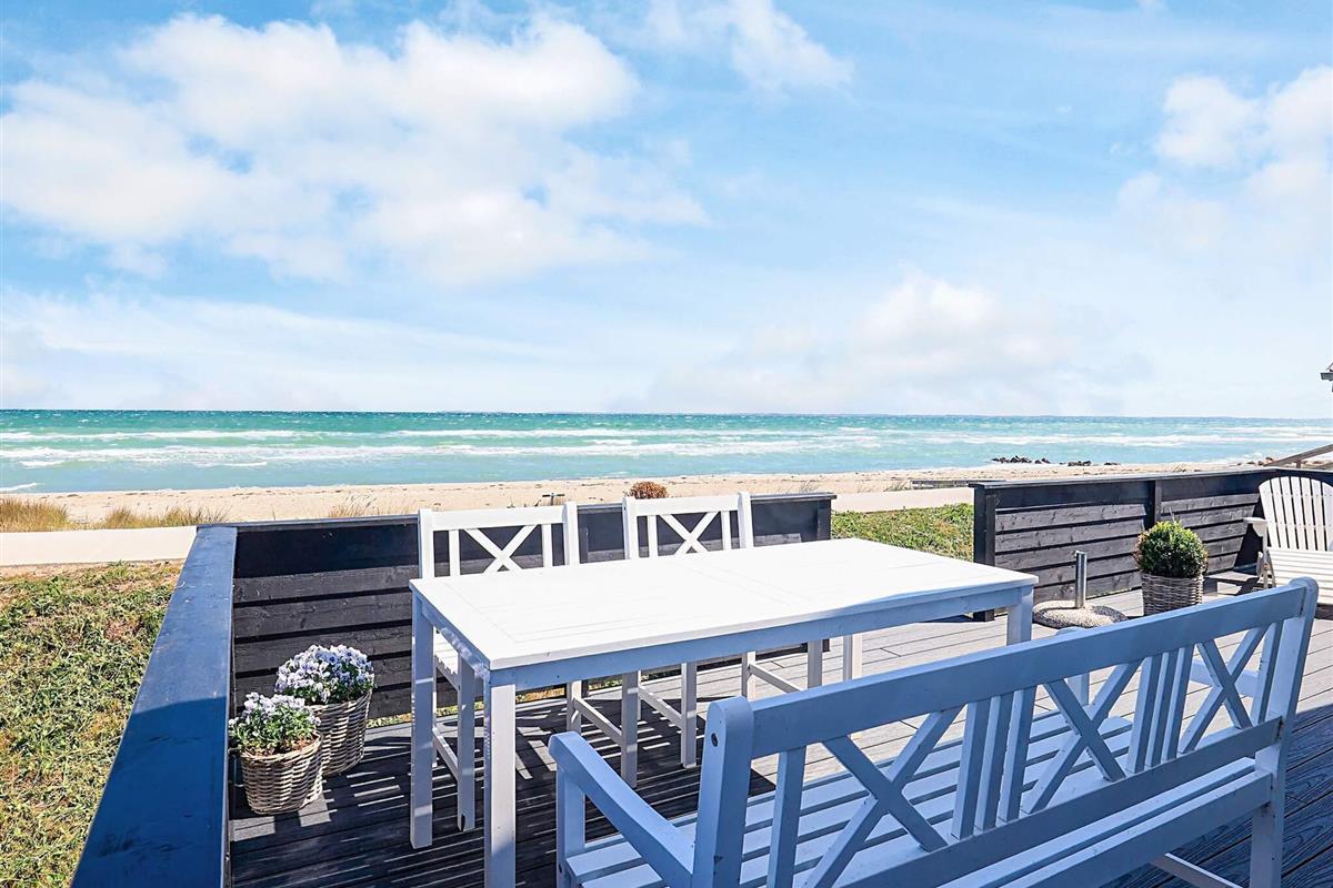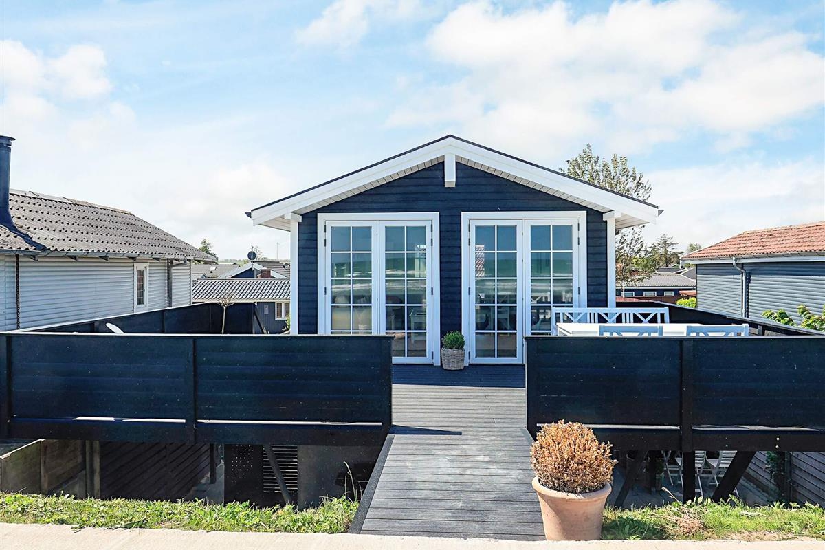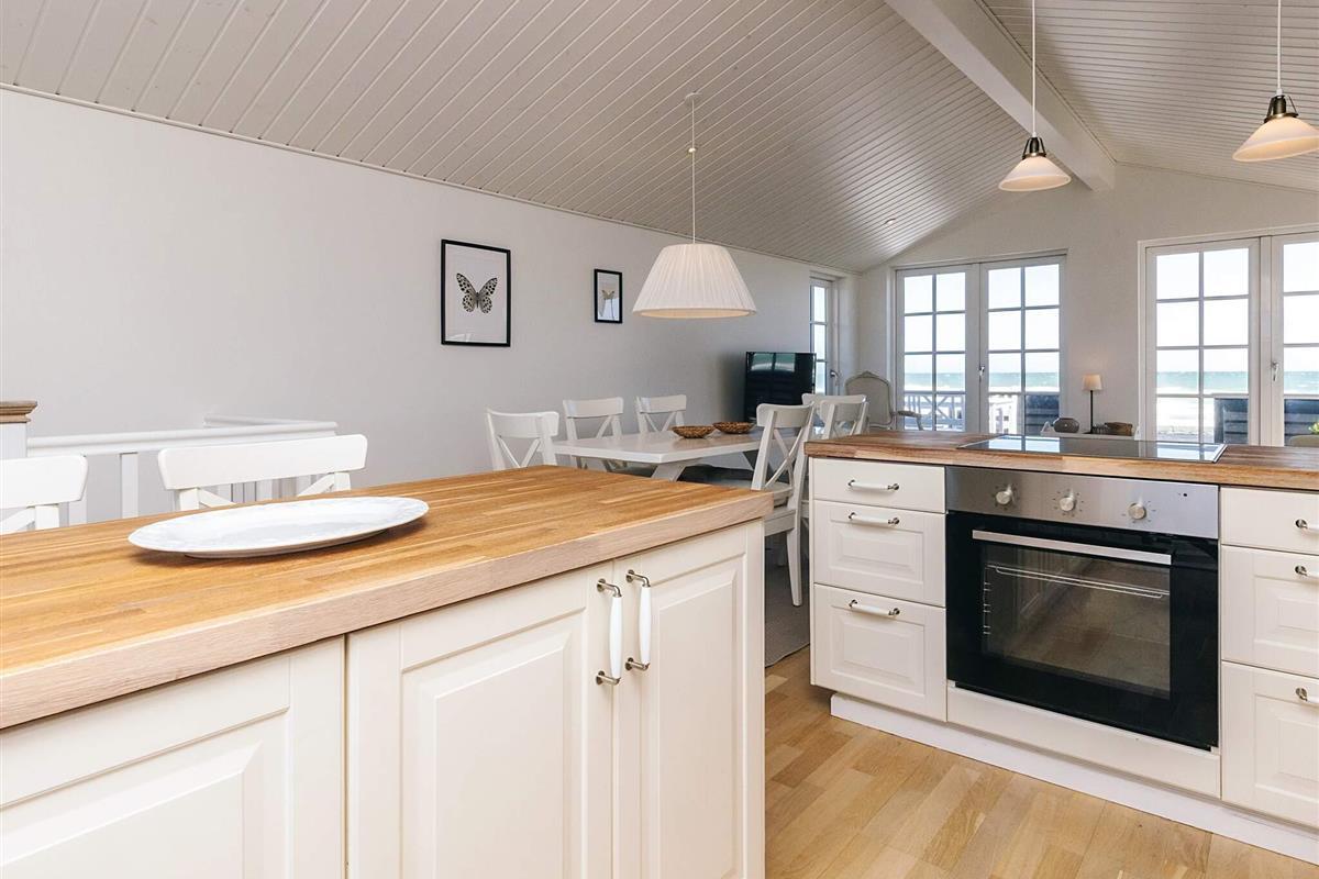Bei Hasmark Strand liegt dieses Ferienhaus, ganz unten am Wasser und mit direktem Zugang zum Strand. Von Haus und Terrasse bietet sich eine einmalige Aussicht auf das Wasser, das nur ein paar Meter entfernt ist. Im Erdgeschoss gibt es zwei Schlafzimmer und ein Bad mit Dusche, Waschmaschine und Trockner. Der große, helle Küchen-Ess-Wohnbereich liegt im Obergeschoss. Fernseher mit dänischen Sendern. Genießen Sie die herrliche Aussicht durch die großen Fenster des Wohnzimmers. Der Strand ist besonders kinderfreundlich. Kleine Buhnen spenden Schutz. Nur eine kurze Autofahrt vom Haus können Sie Golf spielen, im Sommer Pferde mieten, Hofläden oder historische Stätten besuchen.
