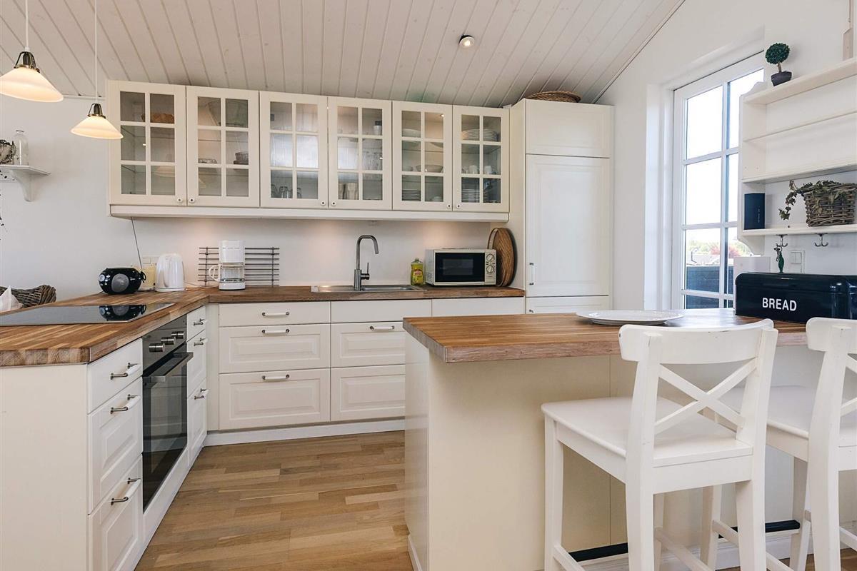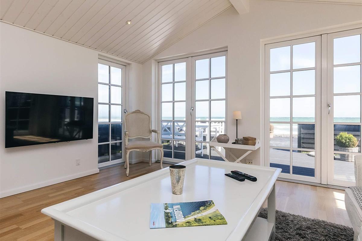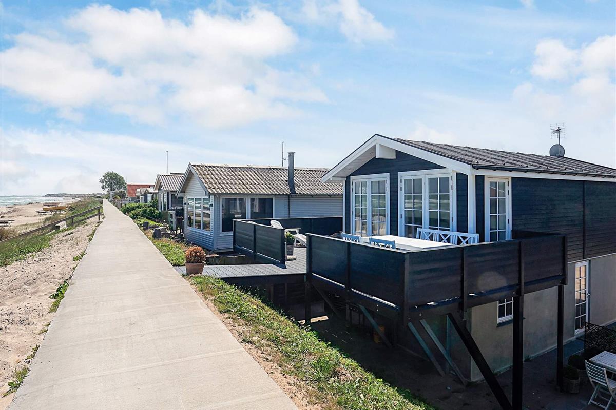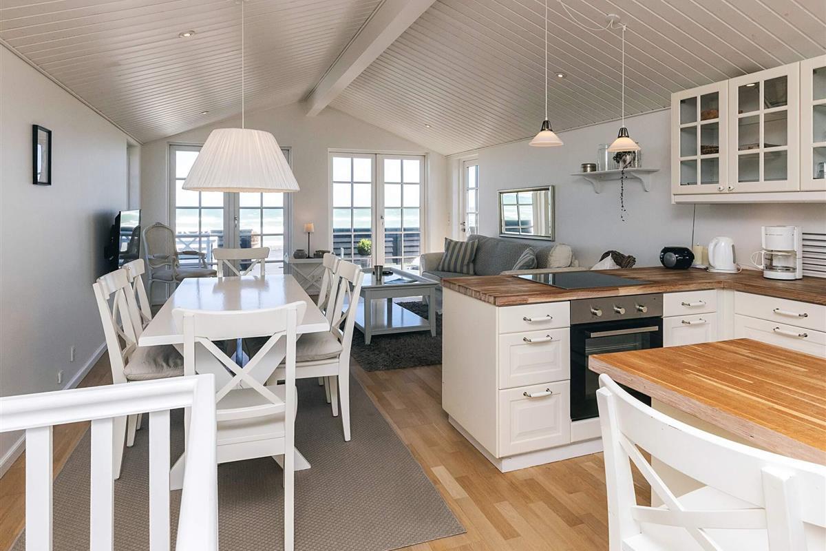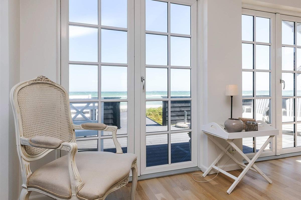 Bei Hasmark Strand liegt dieses Ferienhaus, ganz unten am Wasser und mit direktem Zugang zum Strand. Von Haus und Terrasse bietet sich eine einmalige Aussicht auf das Wasser, das nur ein paar Meter entfernt ist. Im Erdgeschoss gibt es zwei Schlafzimmer und ein Bad mit Dusche, Waschmaschine und Trockner. Der große, helle Küchen-Ess-Wohnbereich liegt im Obergeschoss. Fernseher mit dänischen Sendern. Genießen Sie die herrliche Aussicht durch die großen Fenster des Wohnzimmers. Der Strand ist besonders kinderfreundlich. Kleine Buhnen spenden Schutz. Nur eine kurze Autofahrt vom Haus können Sie Golf spielen, im Sommer Pferde mieten, Hofläden oder historische Stätten besuchen.