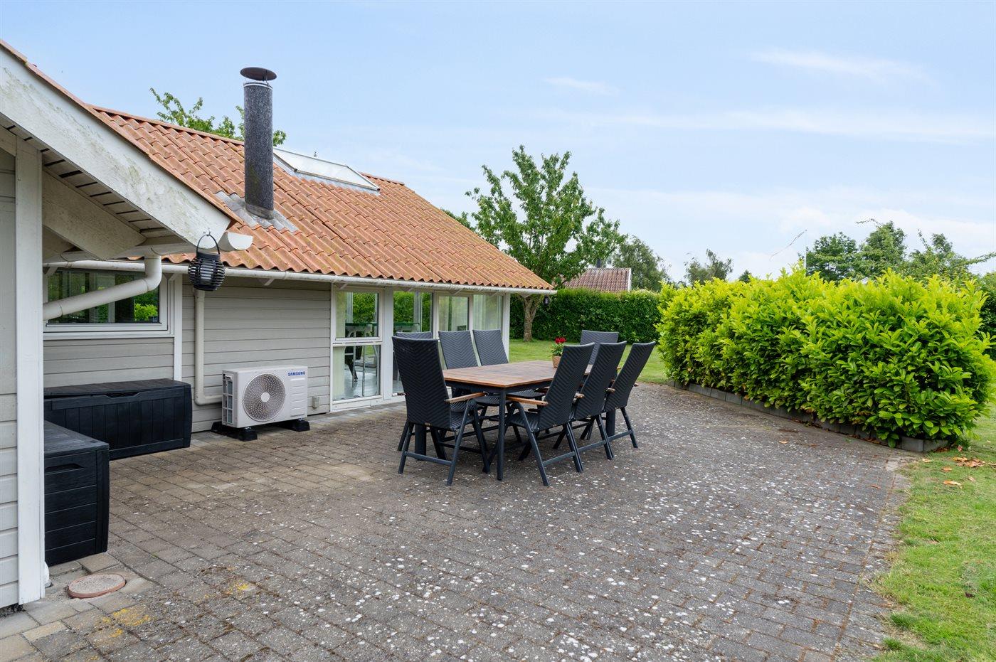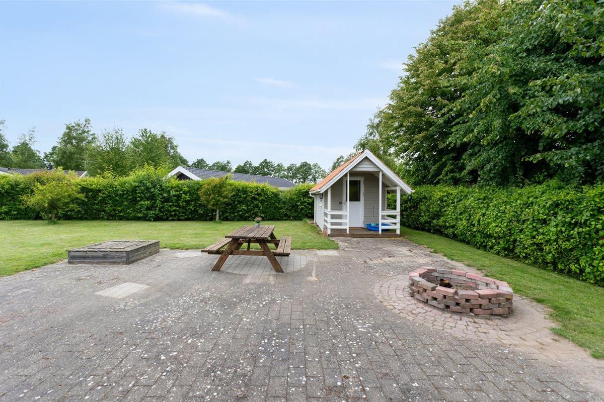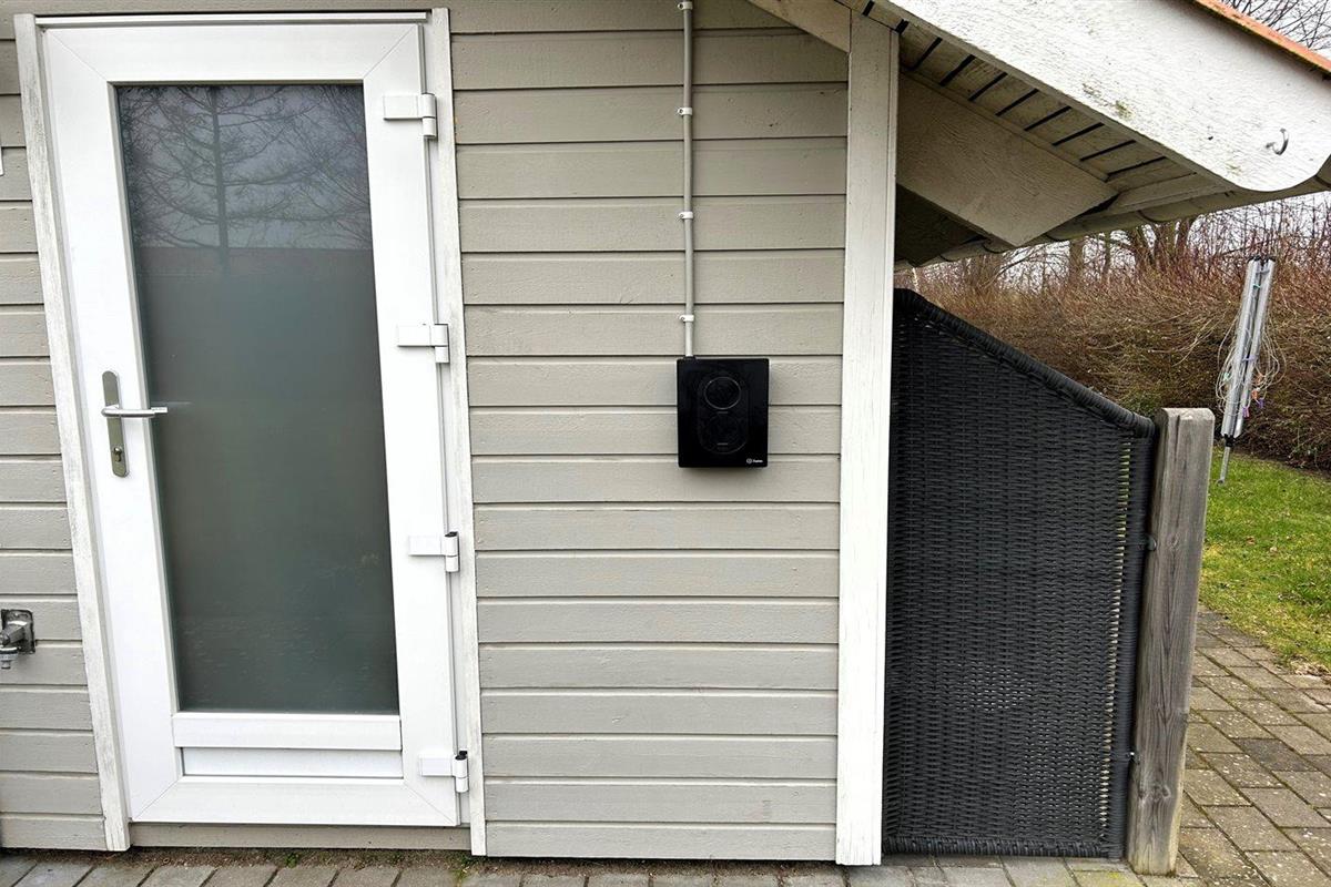 De vakantiewoning is gelegen op een 1244 m² groot aangelegde tuin. De grond is omheind. Afstand tot de zee 250 m. Dichtstbijzijnde winkel 6300 m. Bij de vakantiewoning hoort terras. Gereedschapsruimte. Schommel. Zandbak. Glijbaan.Vuurplaats. Barbecue. Het huis heeft een stopcontact voor het opladen van een elektrische auto. Oplaadstekker type 2. Met 11 kW-laadvermogen. Parkeerplaats bij het huis.