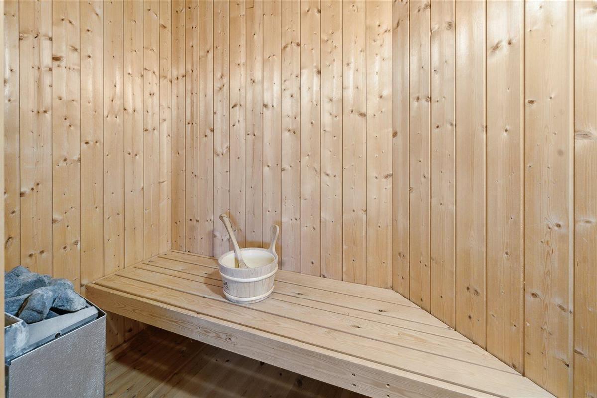 Er is 1 badkamer met douchehok en 2 toiletten, waarvan 1 gastentoilet. Er is vloerverwarming in 1 badkamer. De sauna biedt de gelegenheid tot ontspanning.