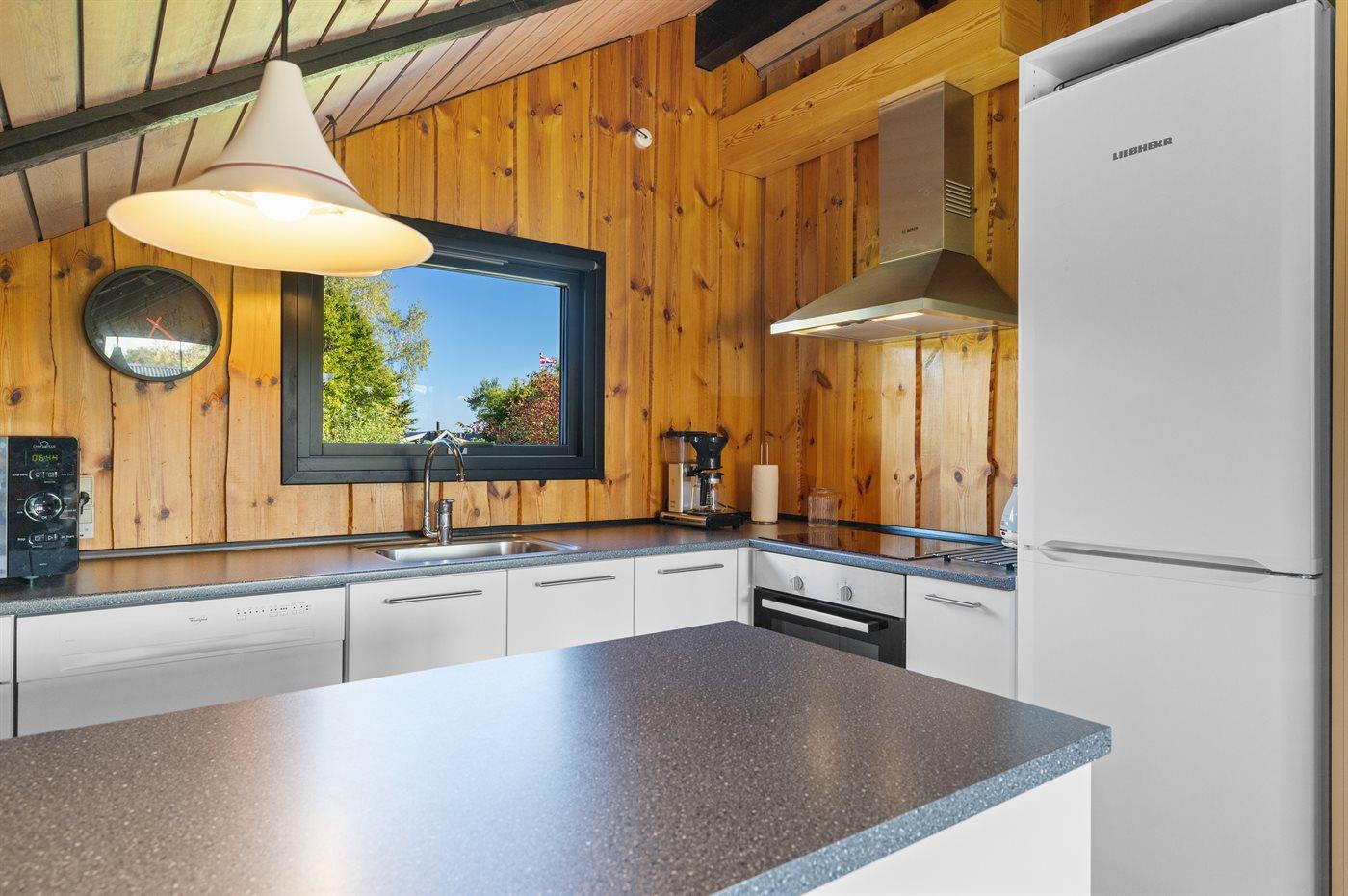 De keuken is uitgerust met koelkast Er is 4 inductiekookplaten, heteluchtoven, magnetron en vaatwasser.