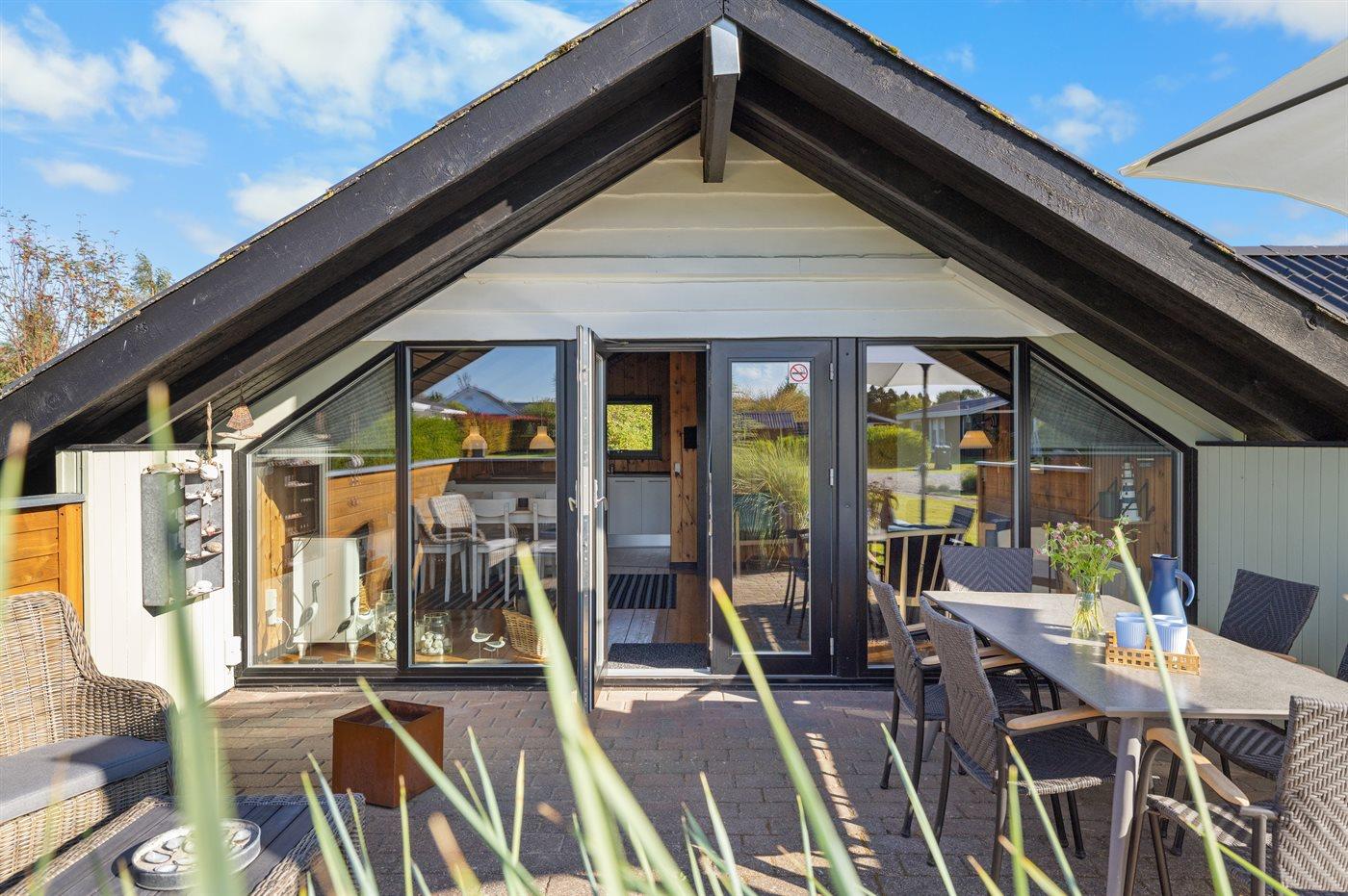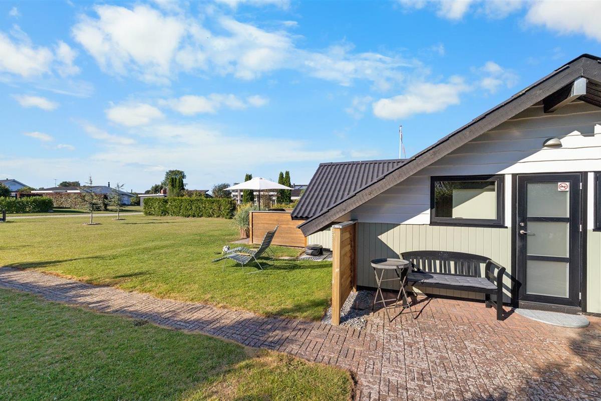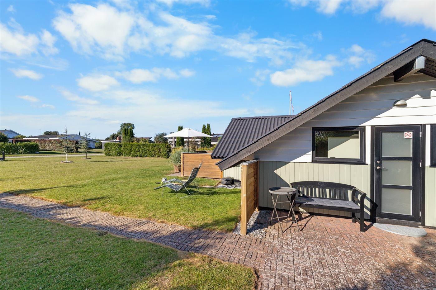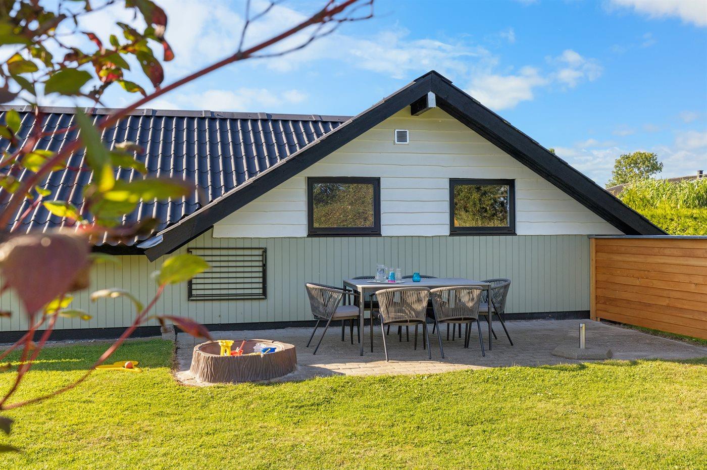 De vakantiewoning is gelegen op een 800 m² groot aangelegde tuin. Afstand tot de zee 350 m. Dichtstbijzijnde winkel 5600 m. Bij de vakantiewoning hoort terras. Daarnaast is er een overdekt terras. Zandbak. Barbecue. Parkeerplaats bij het huis.