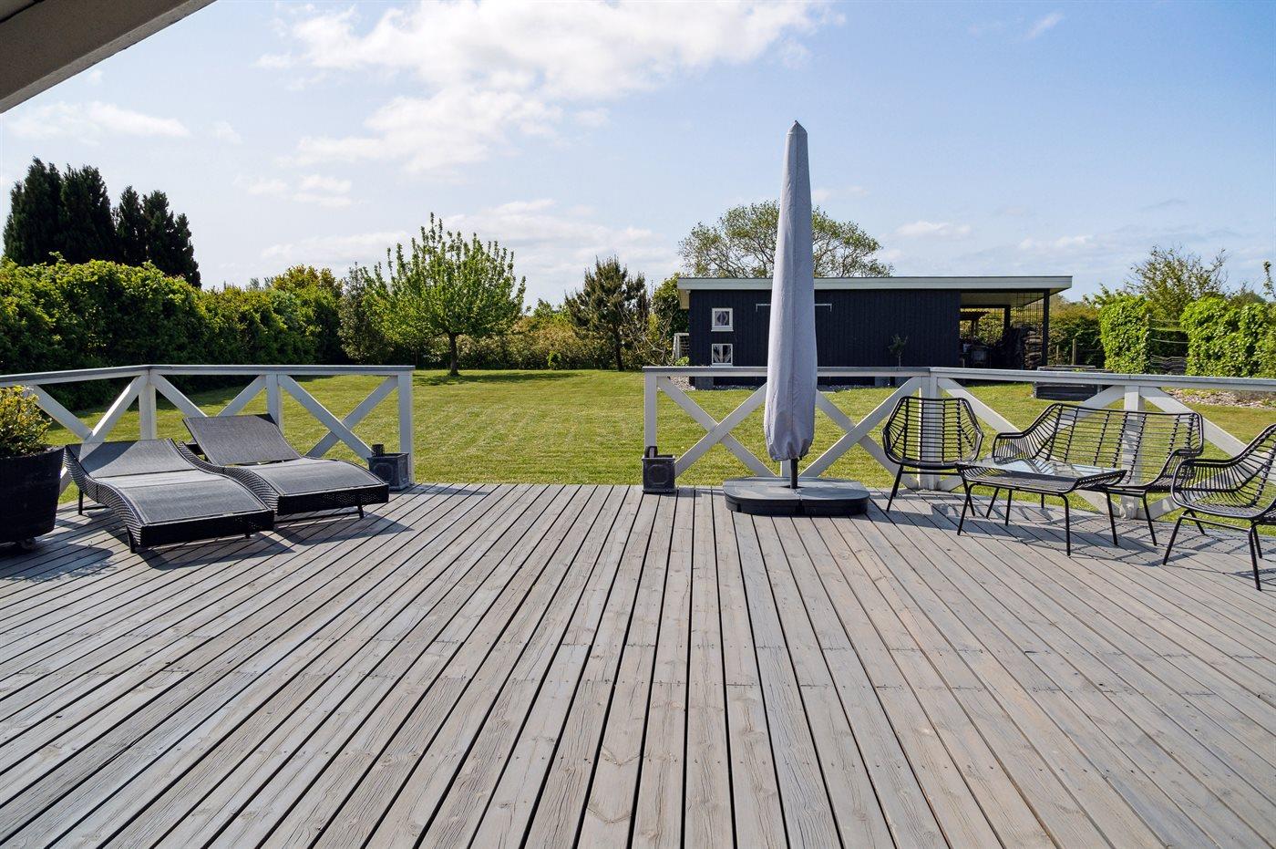 De vakantiewoning is gelegen op een 1200 m² groot aangelegde tuin. Afstand tot de zee 400 m. Dichtstbijzijnde winkel 6500 m. Bij de vakantiewoning hoort terras. Daarnaast is er een overdekt terras. Gereedschapsruimte. Afstand tot speelplaats 1400 m.Vuurplaats. Barbecue. Parkeerplaats bij het huis.