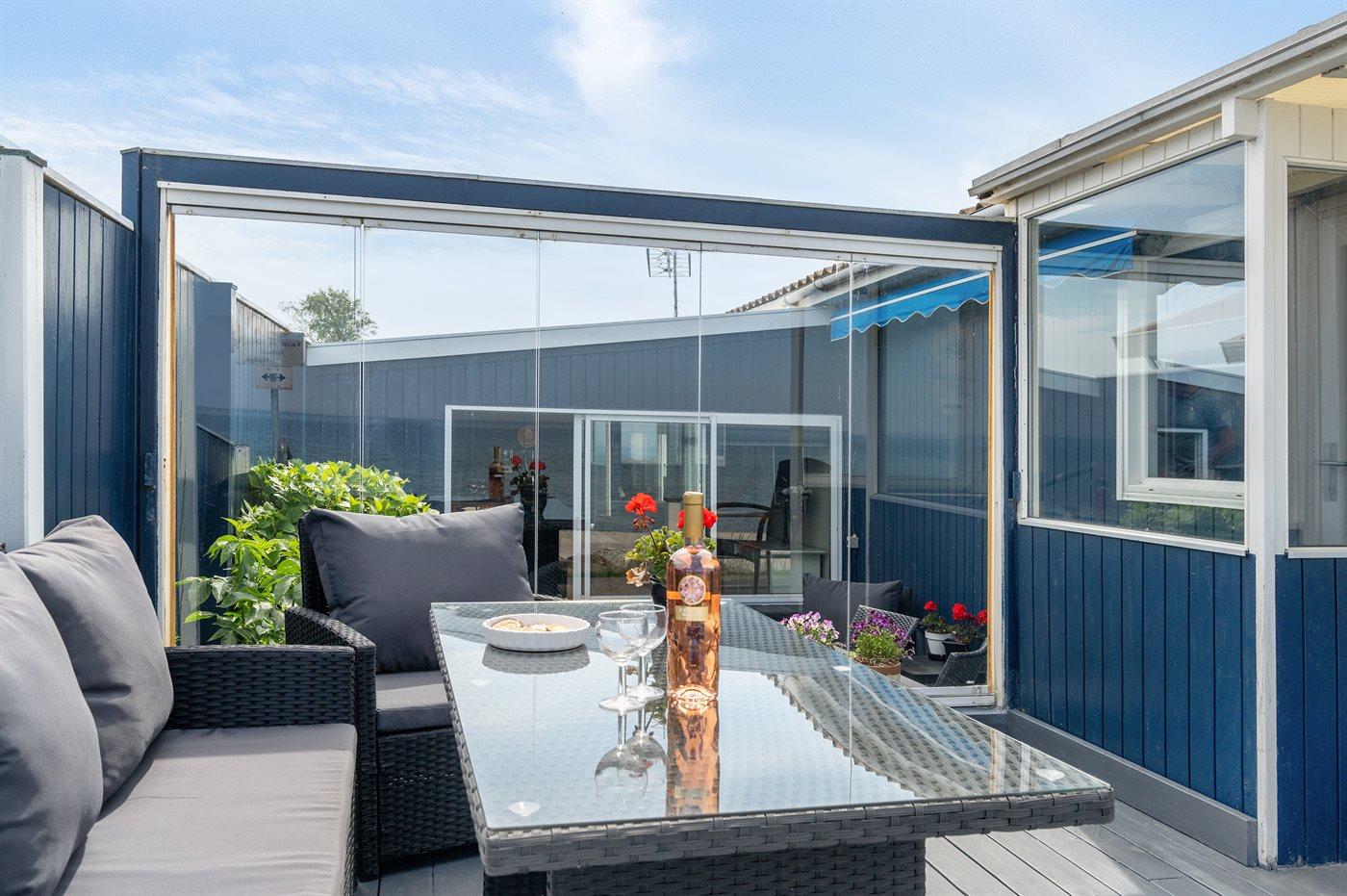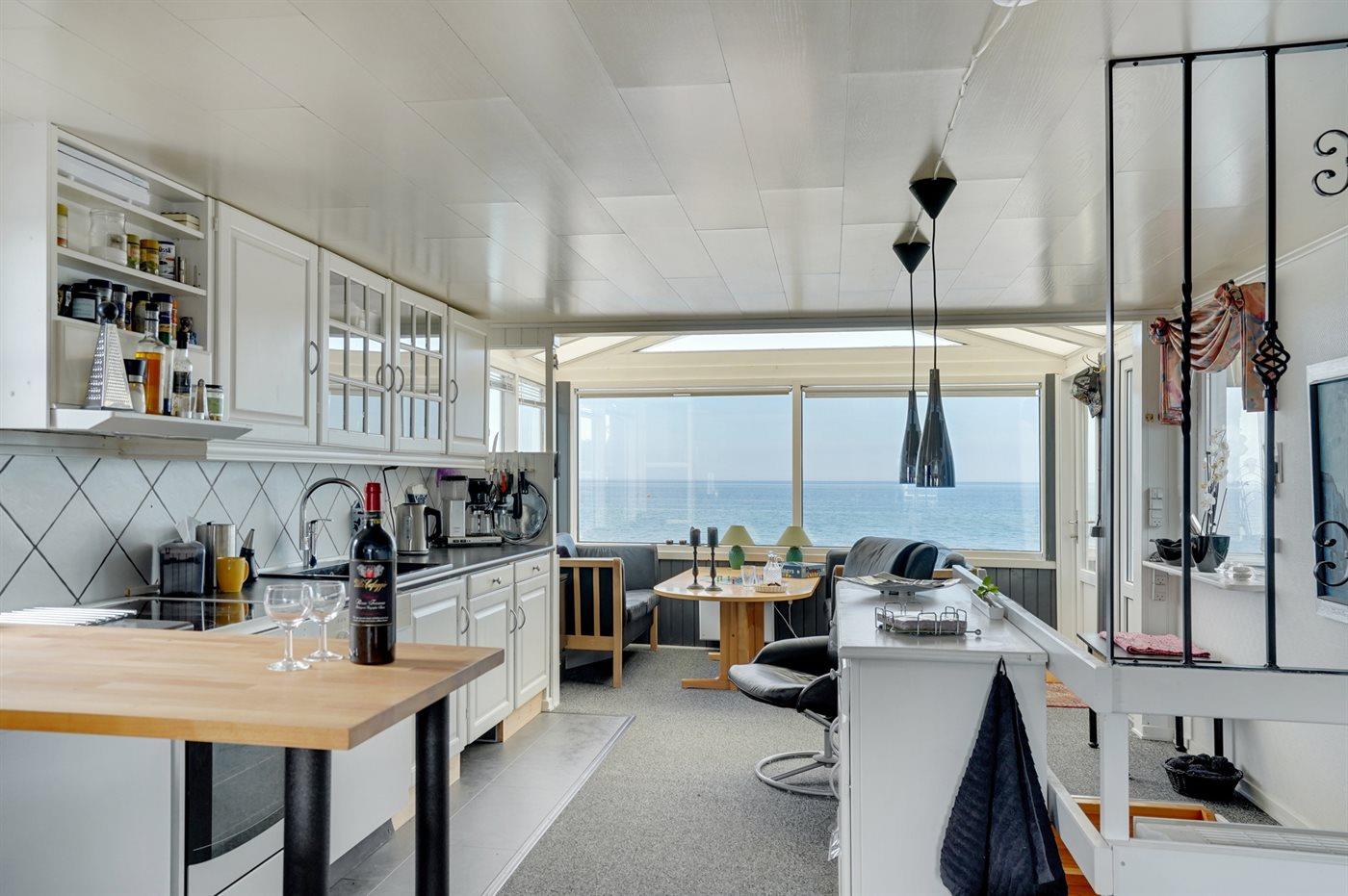 Comfortabel vakantiehuis met zeezicht, terras, moderne keuken en gezellige activiteitenruimte, perfect voor een ontspannen verblijf.