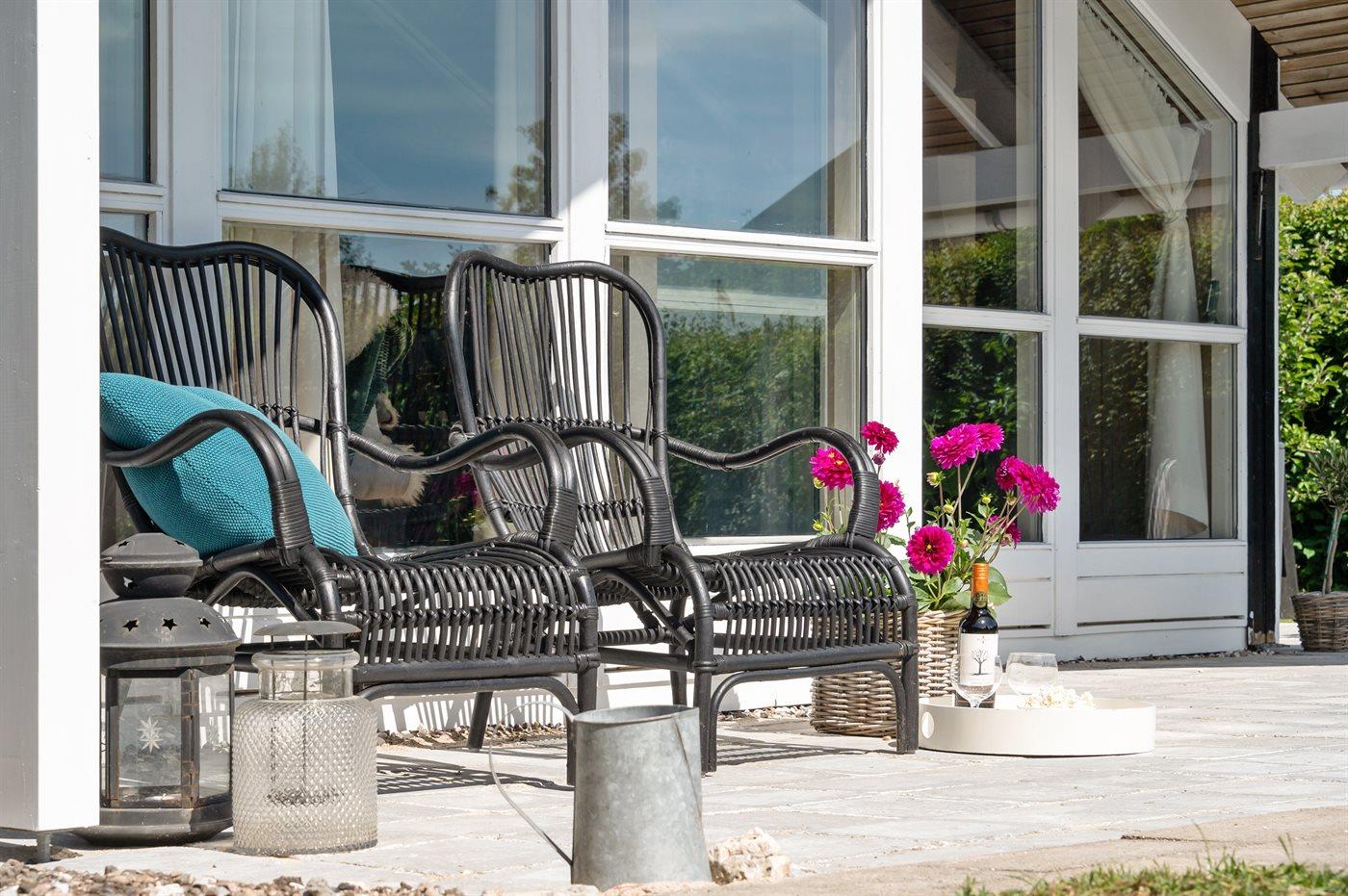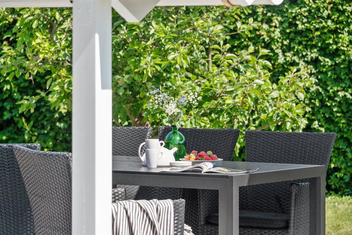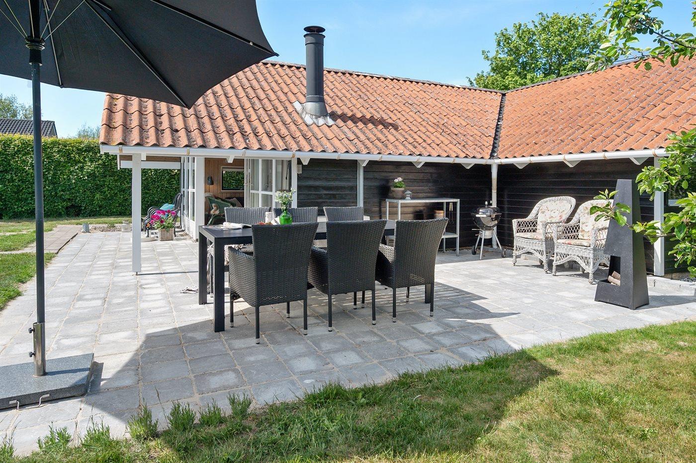 De vakantiewoning is gelegen op een 800 m² groot aangelegde tuin. Afstand tot de zee 200 m. Dichtstbijzijnde winkel 1000 m. Bij de vakantiewoning hoort 40 m² terras. Parkeerplaats bij het huis.