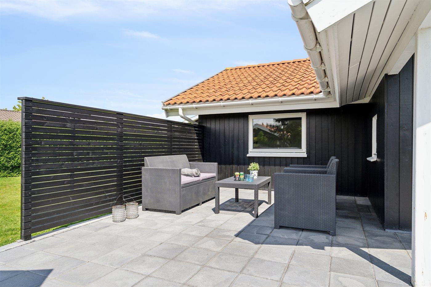 De vakantiewoning is gelegen op een 1050 m² groot aangelegde tuin. Afstand tot de zee 200 m. Dichtstbijzijnde winkel 7000 m. Bij de vakantiewoning hoort 50 m² terras.Vuurplaats. Barbecue. Parkeerplaats bij het huis.