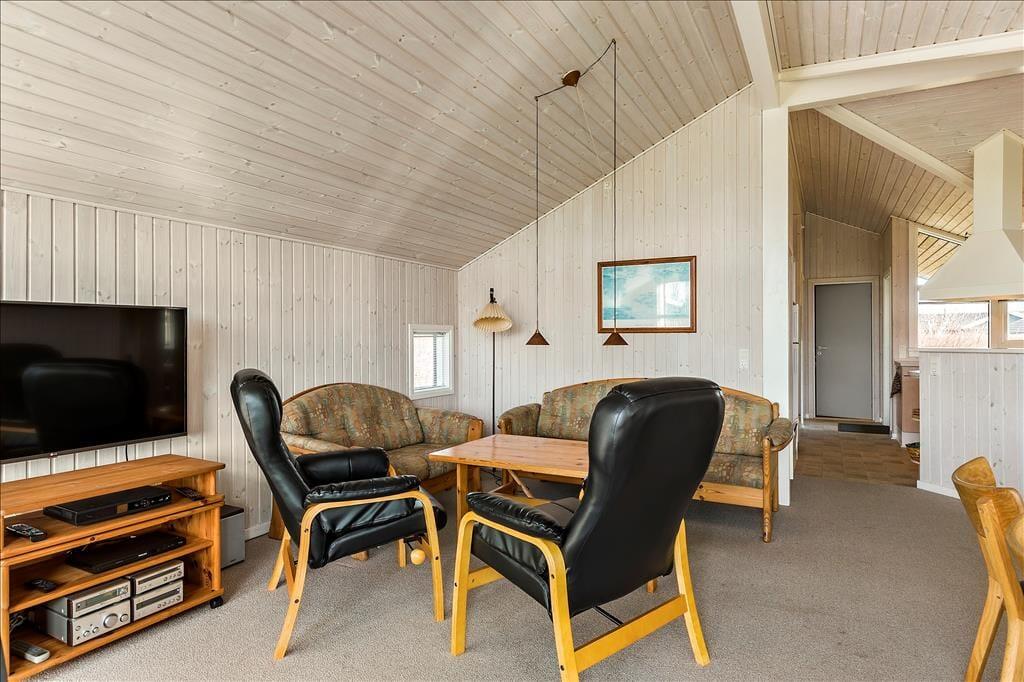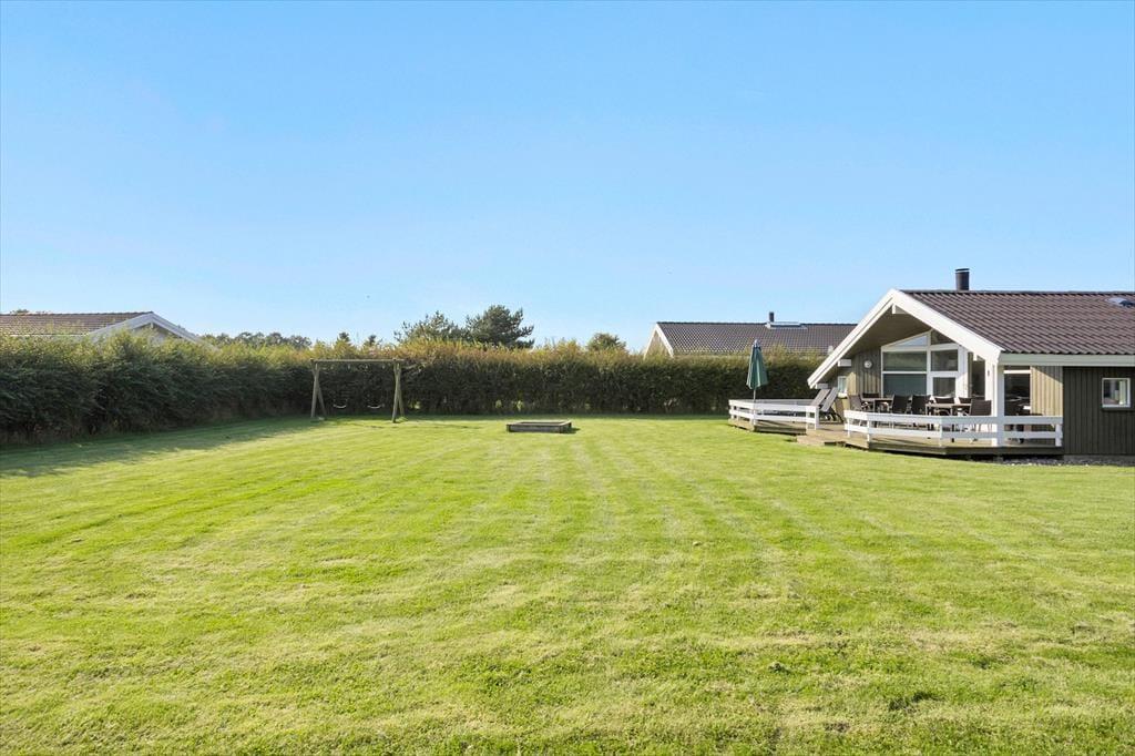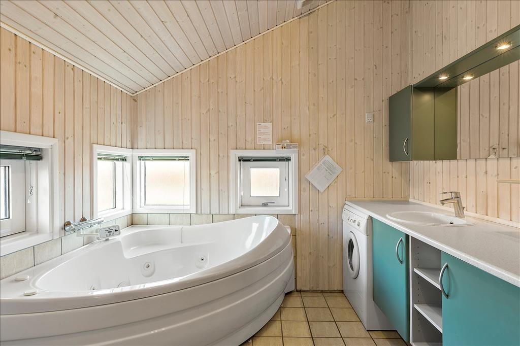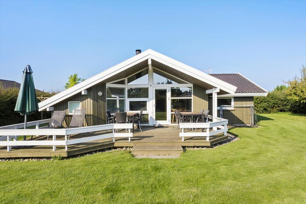 Erg mooi houten vakantiehuis met jacuzzi en sauna. Ligt in het idyllische vakantiegebied Hasmark Strand en maar 200 meter vanaf het kindvriendelijke zandstrand. Het huis is gezellig ingericht met een grote woonkamer met houtkachel, alkoof en grote ramen met prachtig uitzicht. Vanuit de woonkamer heb je toegang tot het grote gedeeltelijk overdekte houten terras. De open moderne keuken is verbonden met de woonkamer, 3 fijne slaapkamers, badkamer met jacuzzi en toegang tot de sauna en gastentoilet.