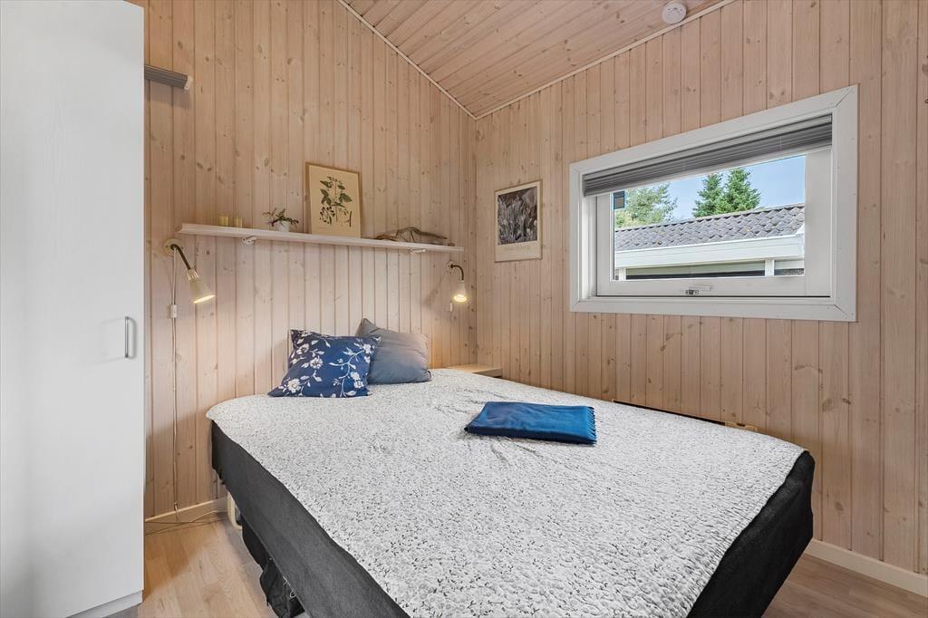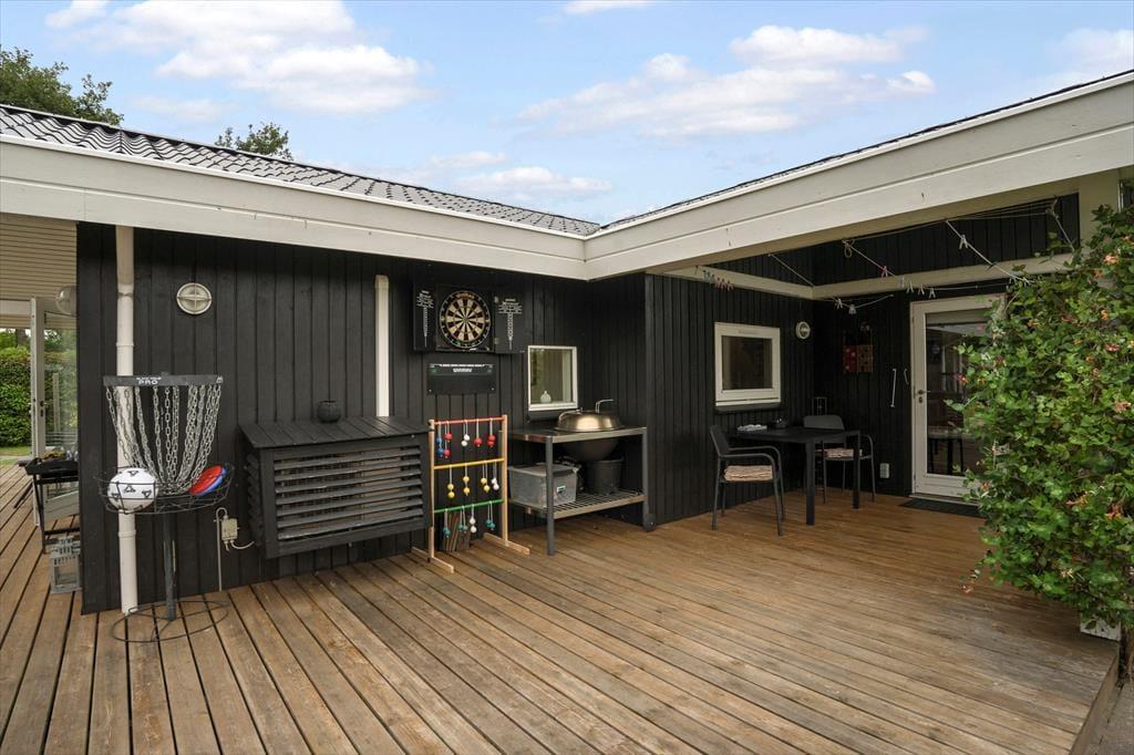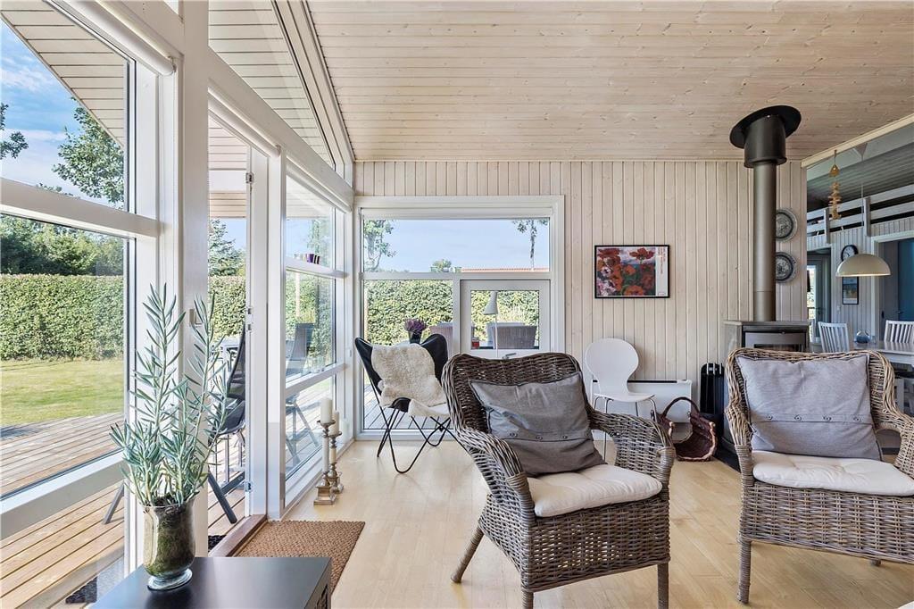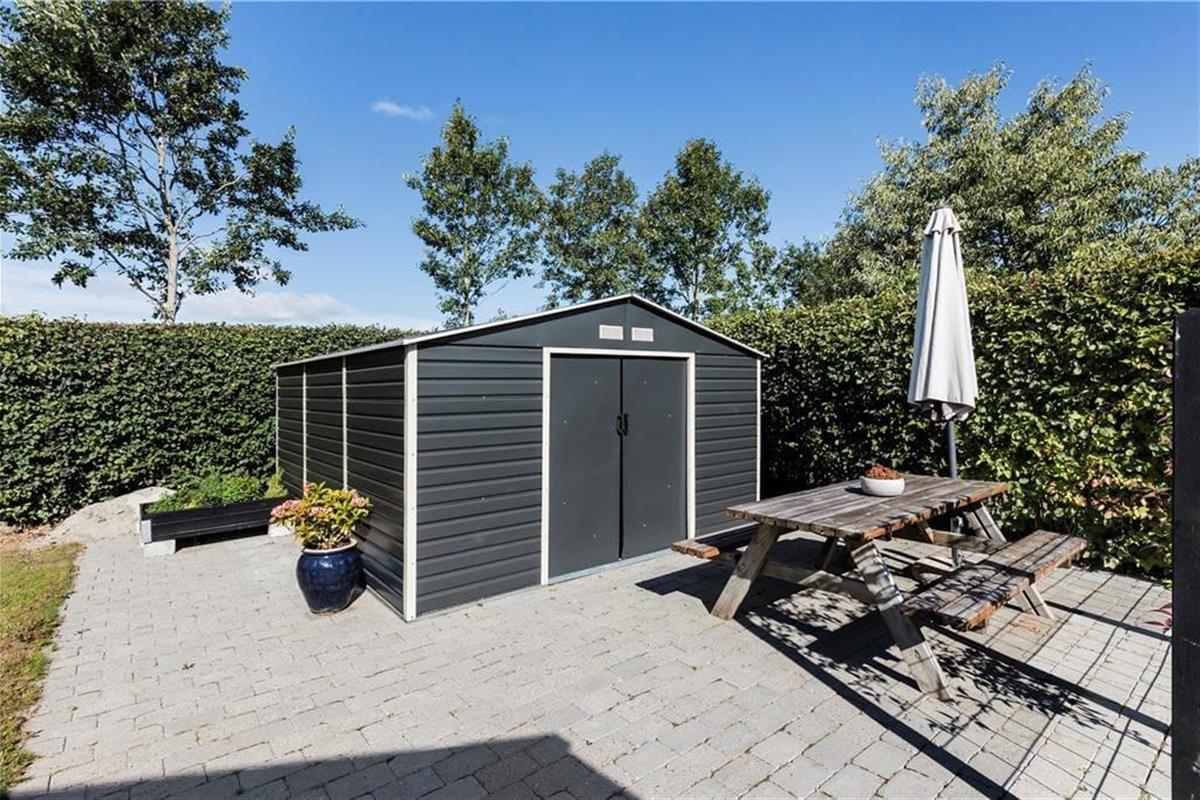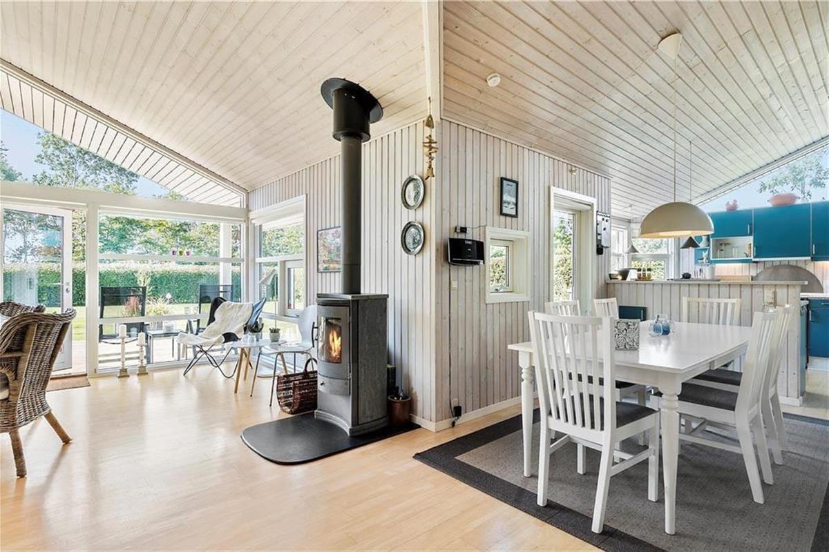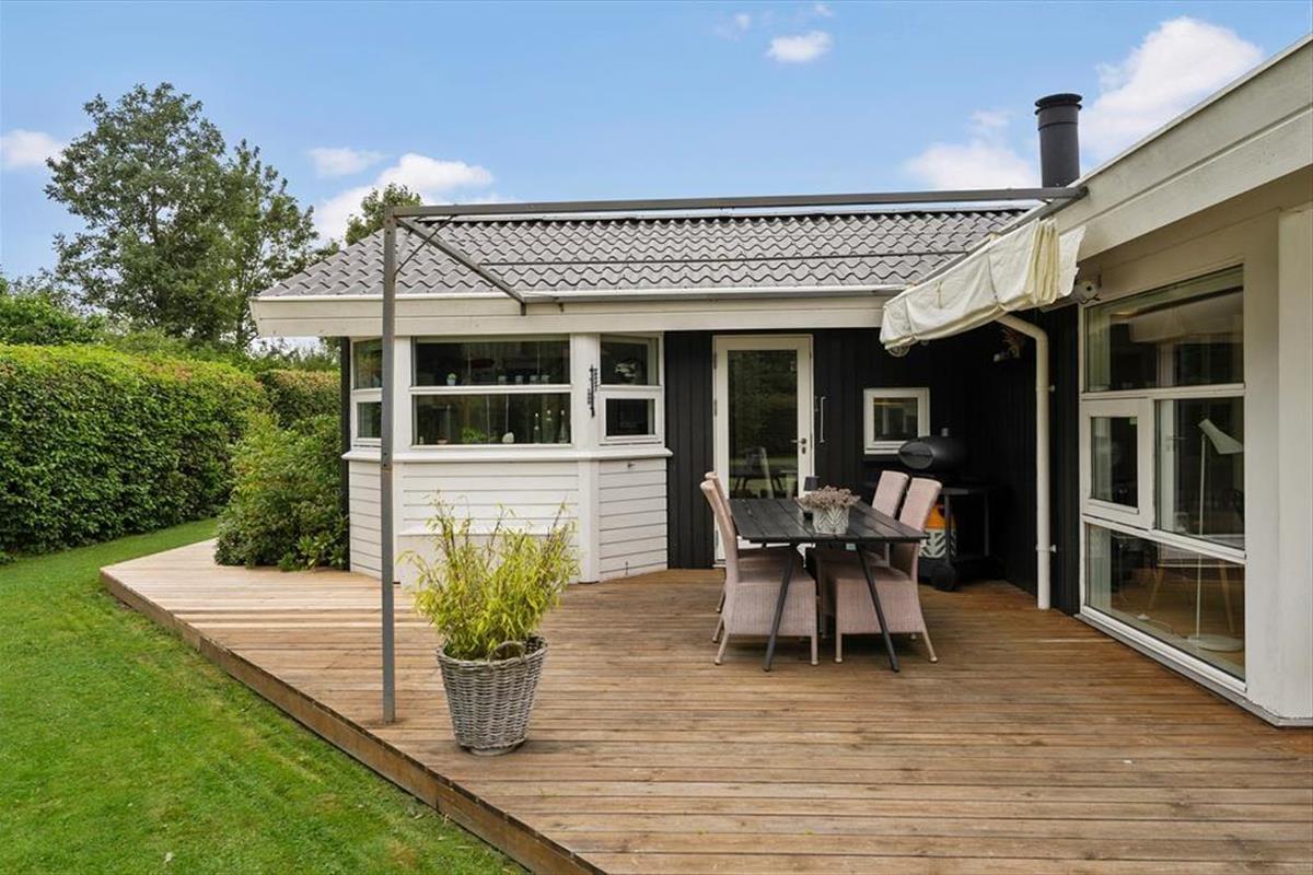 Mooi en goed onderhouden vakantiehuis, gelegen in het populaire vakantiepark Hasmark, op slechts 300 meter van het strand. Het huis heeft een entree, een goed ingerichte keuken die in open verbinding staat met de eetkamer en de woonkamer met houtkachel, energiebesparende warmtepomp en schuin plafond. De woning bevat 3 goede slaapkamers, een extra toilet en een grote badkamer met whirlpool, sauna en wasmachine. Vanaf het terras is er directe toegang tot een goed bijgebouw met nog 2 bedden. In het huis is er ook een vide met matrassen. Vanuit zowel de woonkamer als de eetkamer is er toegang tot een groot, nieuw houten terras van ca. 90 m2 met verschillende gezellige hoekjes en naar de tuin met een groot gazon dat uitnodigt tot balspelen en spelen.