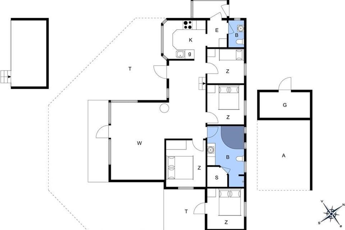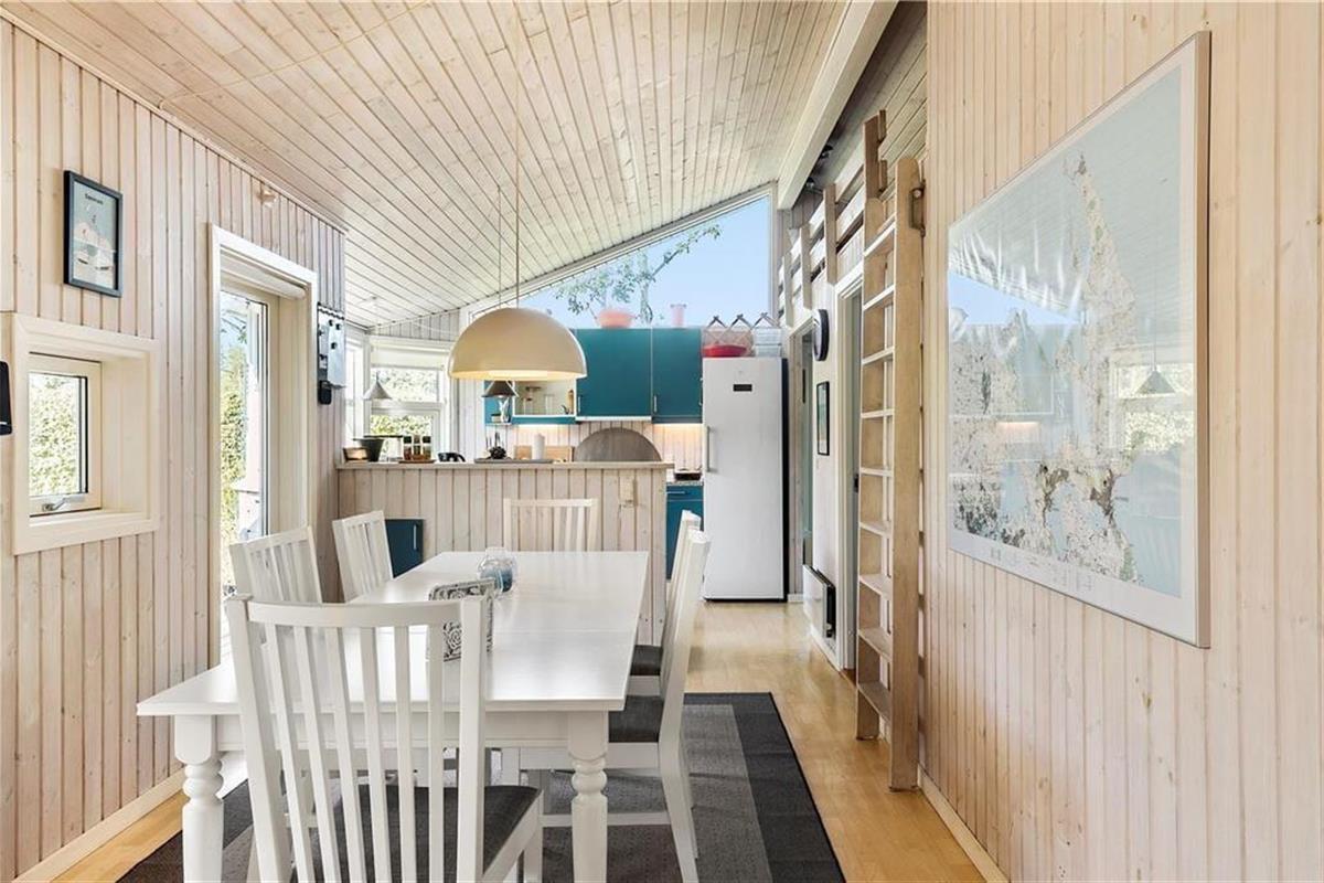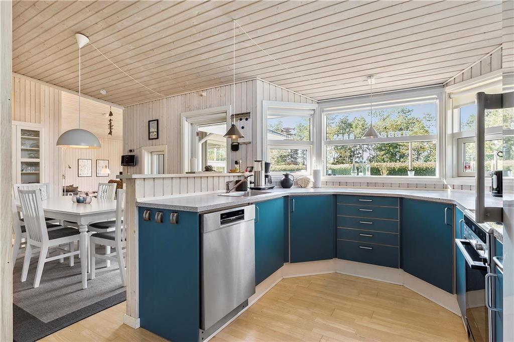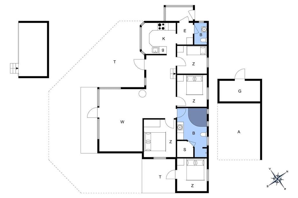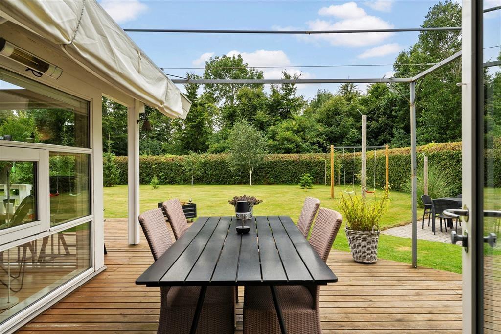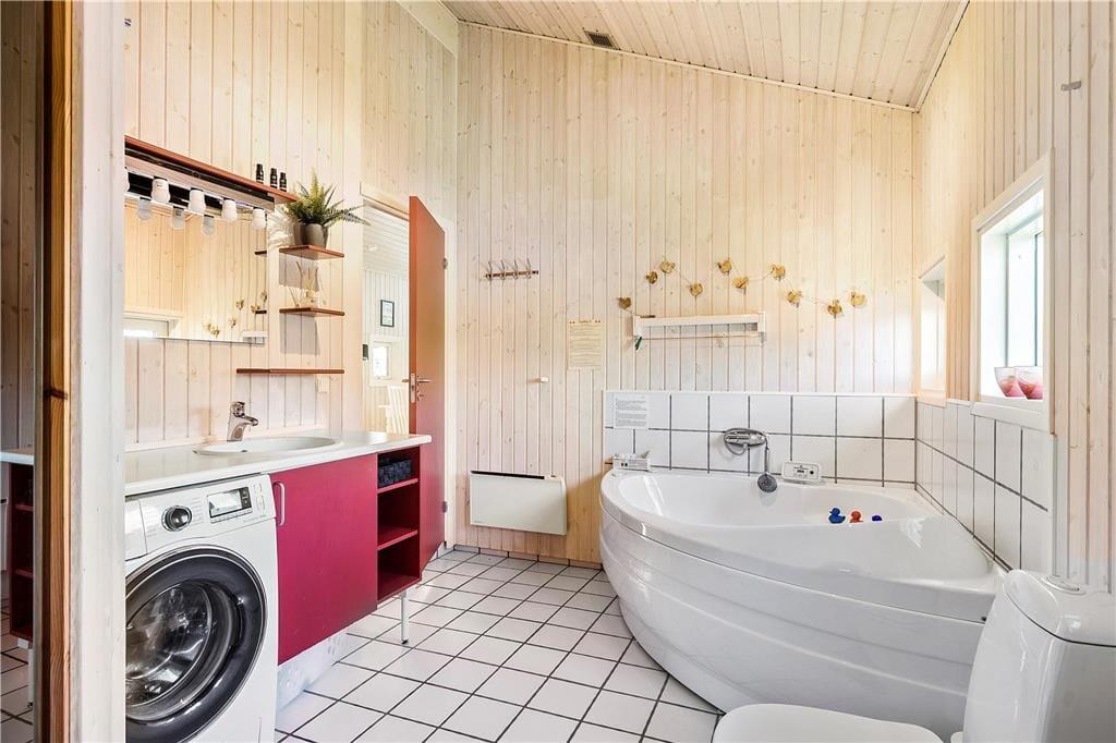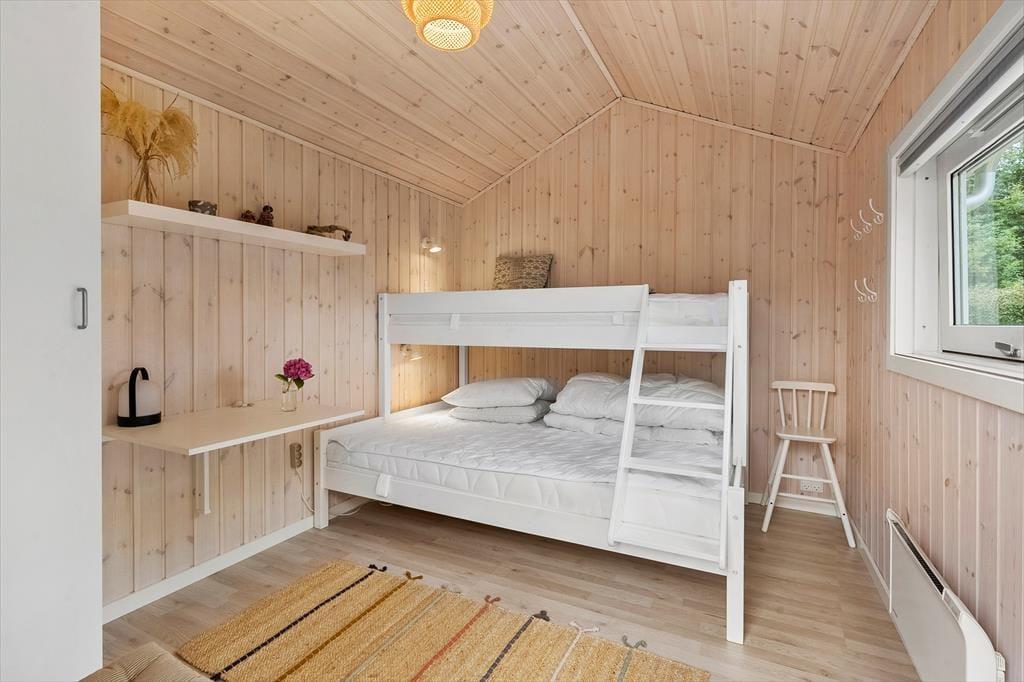 Mooi en goed onderhouden vakantiehuis, gelegen in het populaire vakantiepark Hasmark, op slechts 300 meter van het strand. Het huis heeft een entree, een goed ingerichte keuken die in open verbinding staat met de eetkamer en de woonkamer met houtkachel, energiebesparende warmtepomp en schuin plafond. De woning bevat 3 goede slaapkamers, een extra toilet en een grote badkamer met whirlpool, sauna en wasmachine. Vanaf het terras is er directe toegang tot een goed bijgebouw met nog 2 bedden. In het huis is er ook een vide met matrassen. Vanuit zowel de woonkamer als de eetkamer is er toegang tot een groot, nieuw houten terras van ca. 90 m2 met verschillende gezellige hoekjes en naar de tuin met een groot gazon dat uitnodigt tot balspelen en spelen.