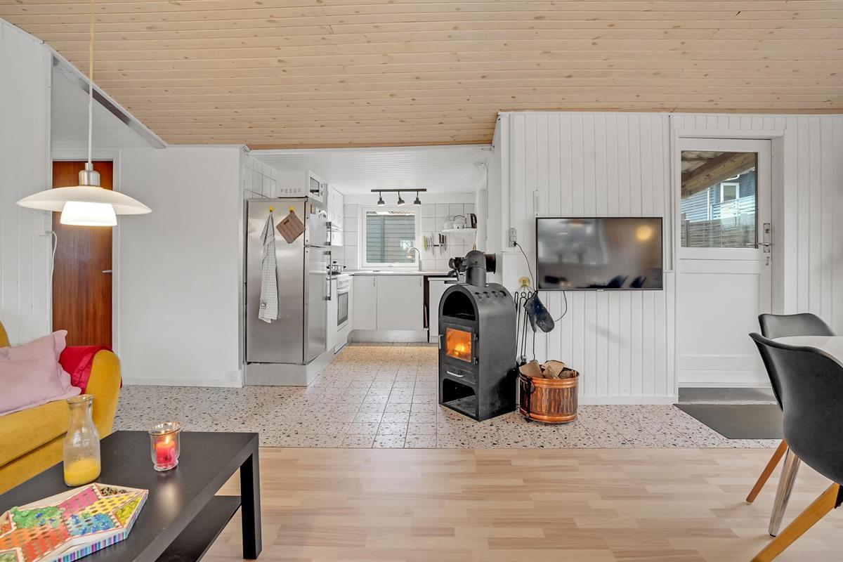 Charmant vakantiehuis vlak bij het gezinsvriendelijke Hasmark strand met houtkachel en groot terras.