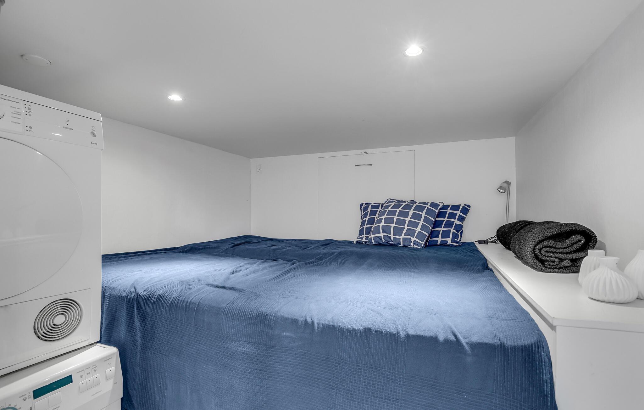 Let op: Het huis heeft twee ingangen en een buitentrap verbindt de twee verdiepingen. Een steile brandtrap leidt naar de onderste verdieping. De bedden zijn bijzonder hoog.