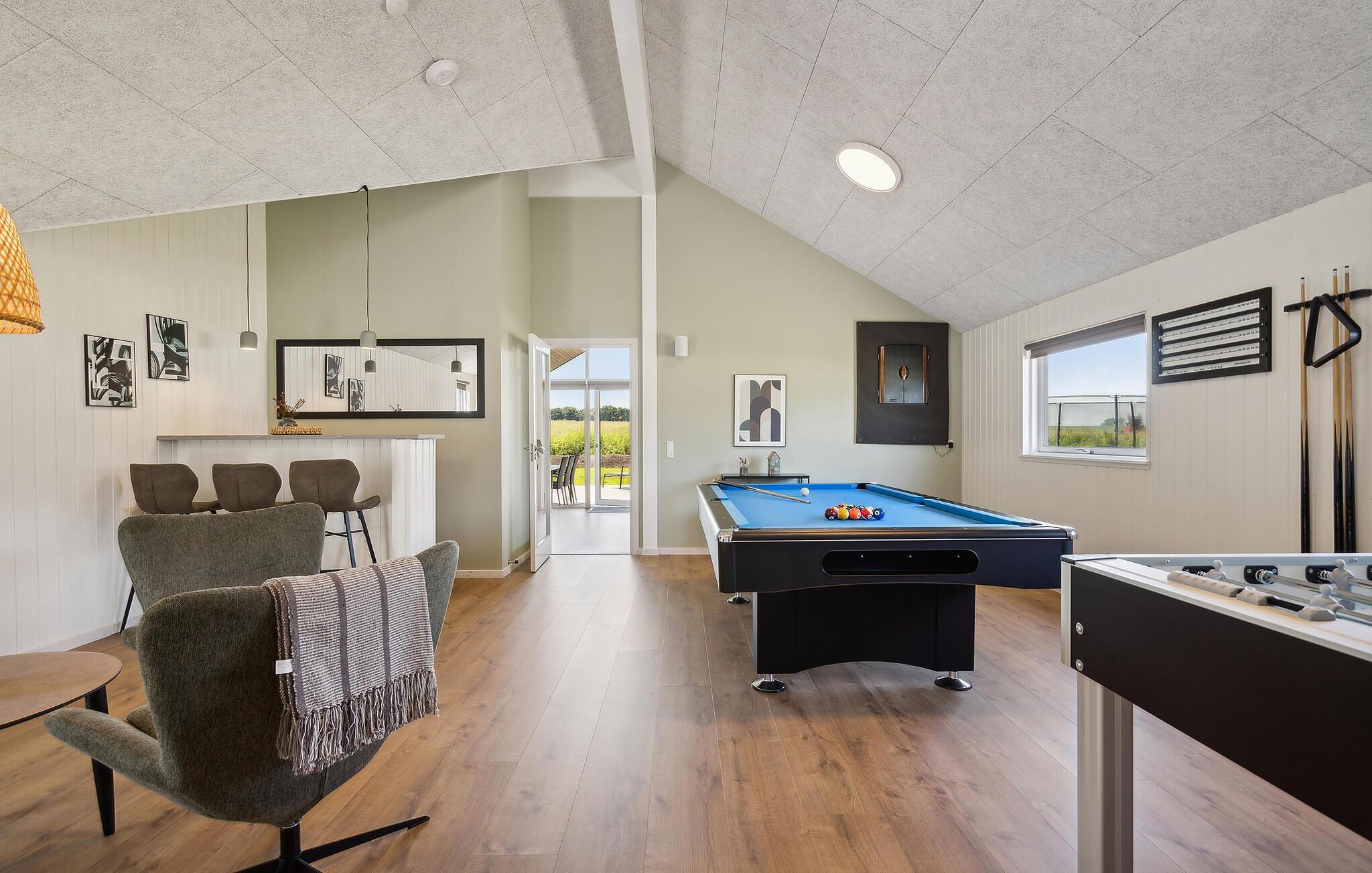 Begin de dag met een potje biljart, tafeltennis, tafelvoetbal of darts in de eigen activiteitenruimte. Ontspan tussen de wedstrijden door in de gezellige zithoek, ideaal voor toeschouwers die de actie willen volgen. Bereid je maaltijden in de centraal gelegen keuken in de open woon- en eetruimte. Terwijl de koks van het huis heerlijke gerechten op tafel toveren, kunnen de andere gasten ontspannen in de zithoek met een glas wijn of een potje kaarten aan de lange eettafel. Degenen die fysiek actief willen worden, vinden de juiste activiteit in het zwembadgedeelte.
