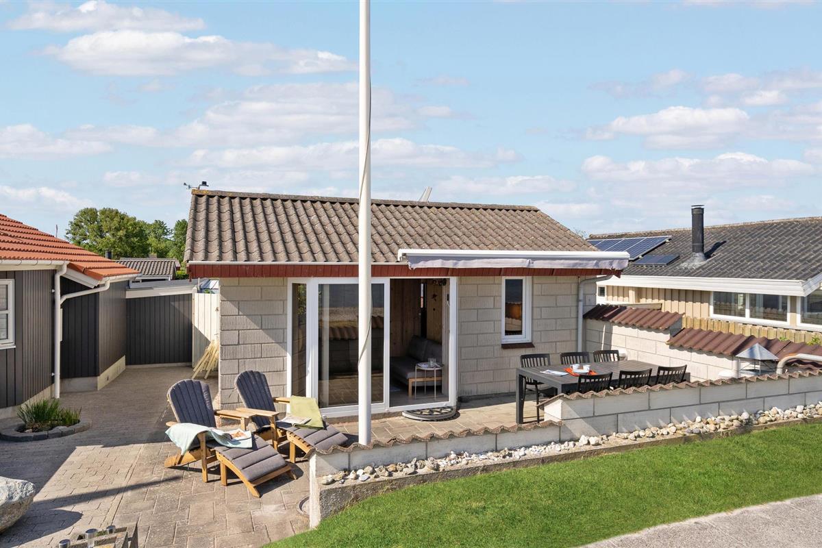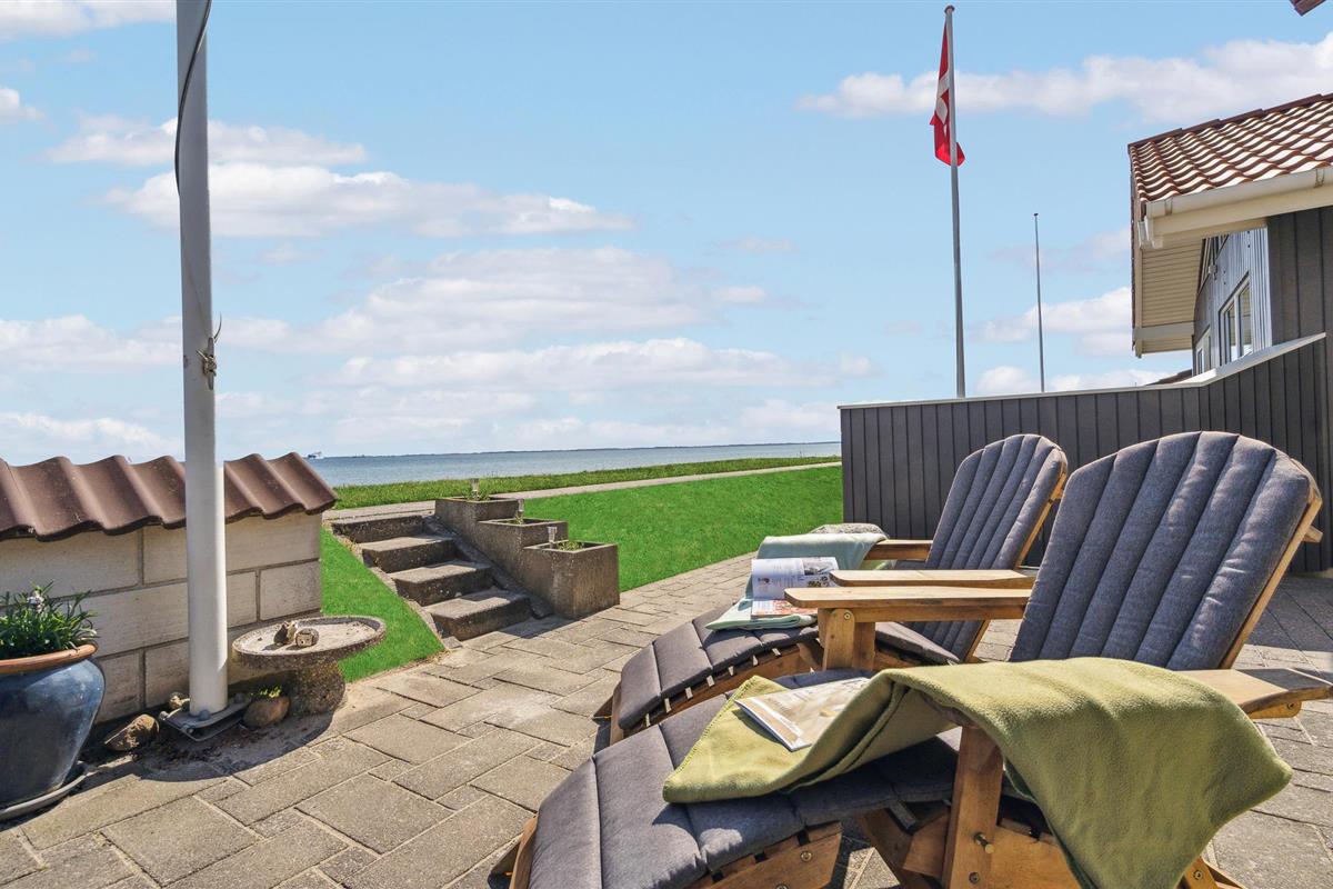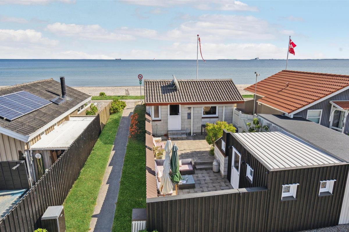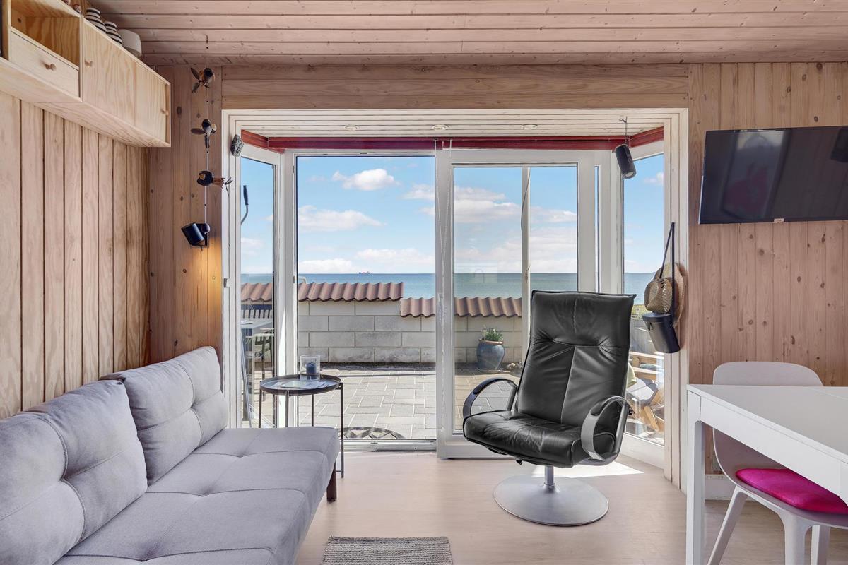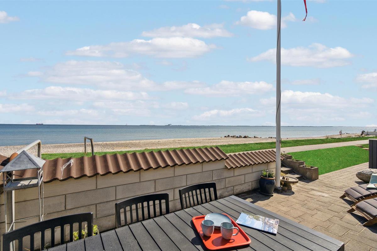 Charmant vakantiehuis direct aan Hasmark strand met zeezicht en comfortabele buitenruimte.