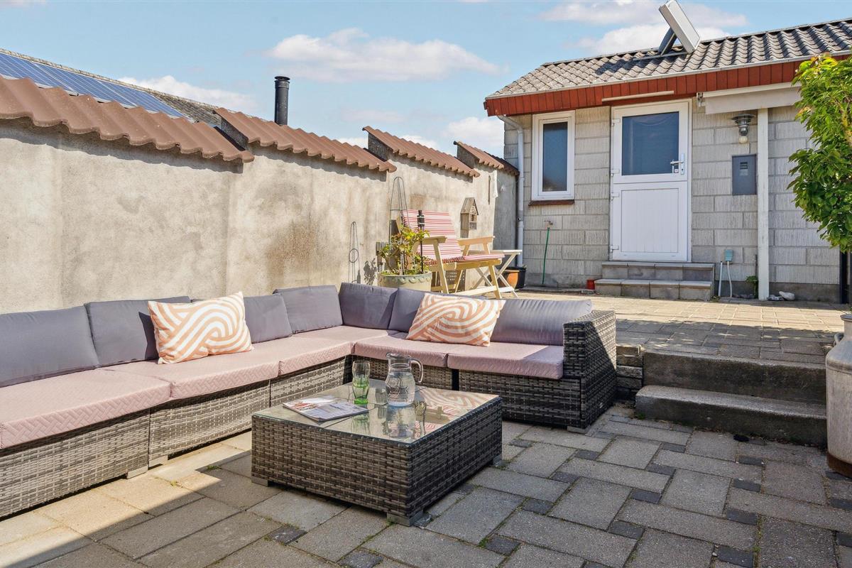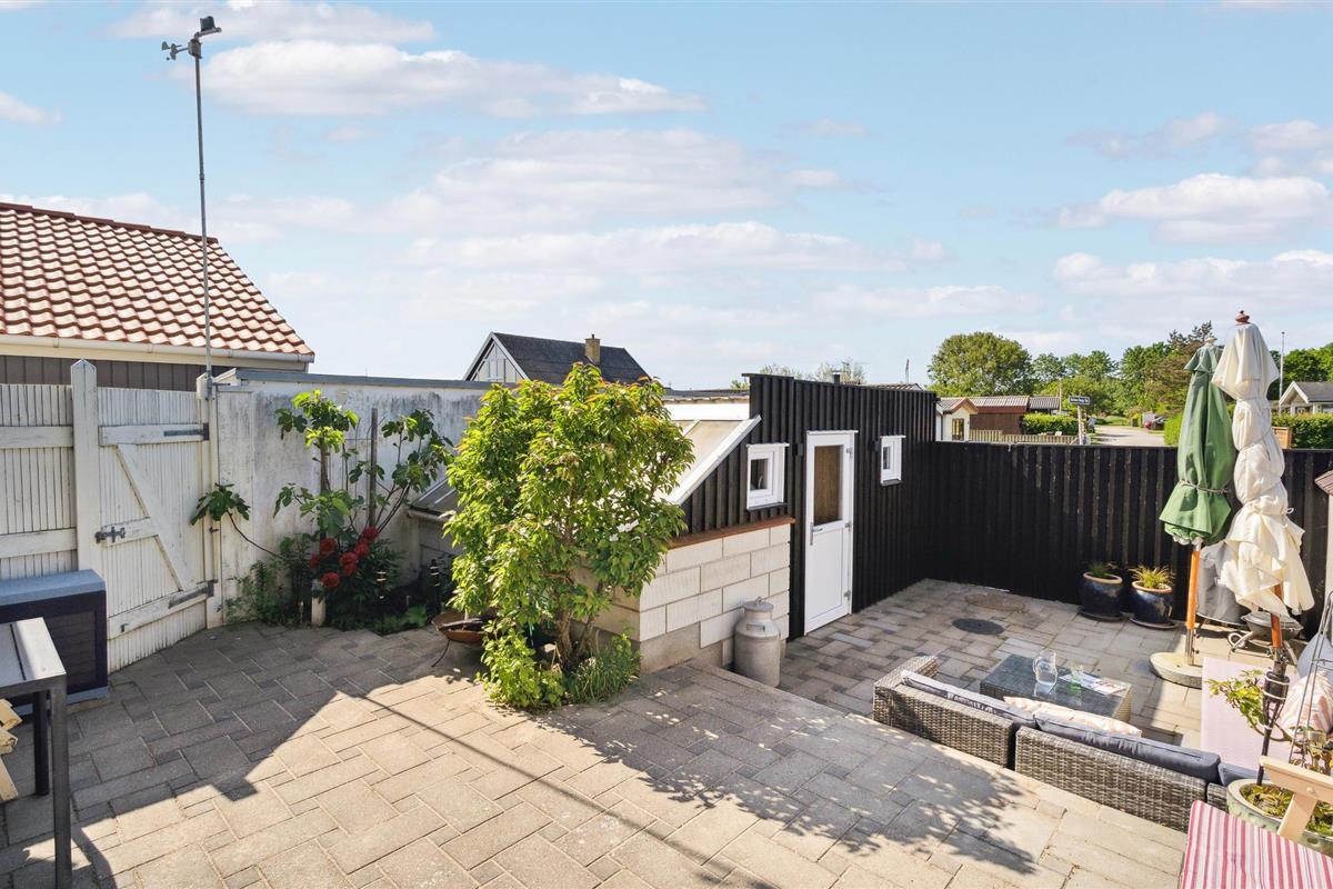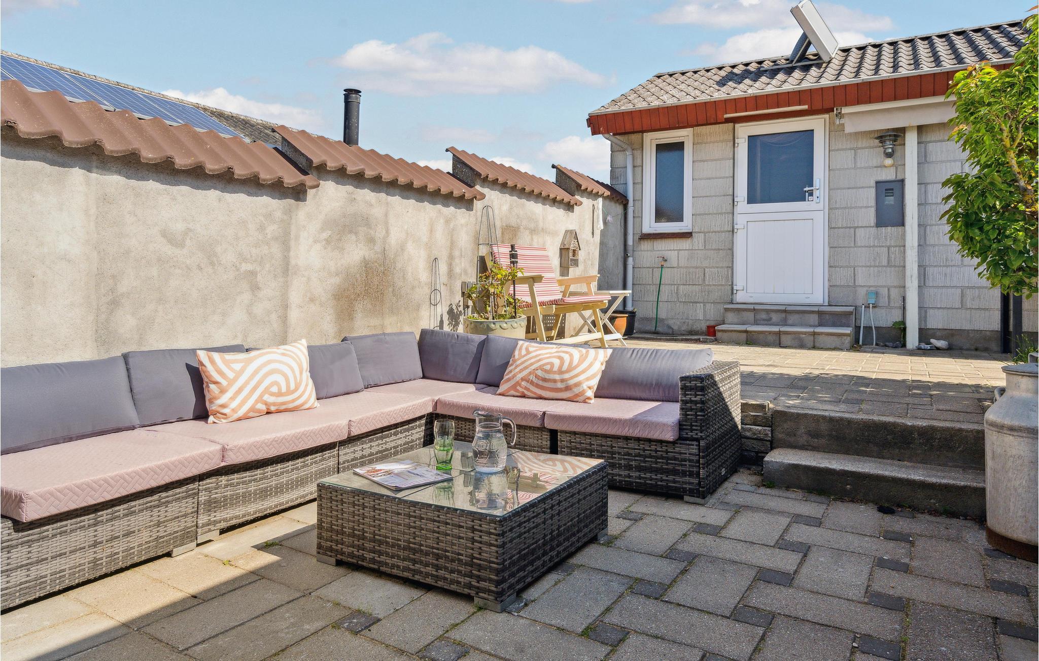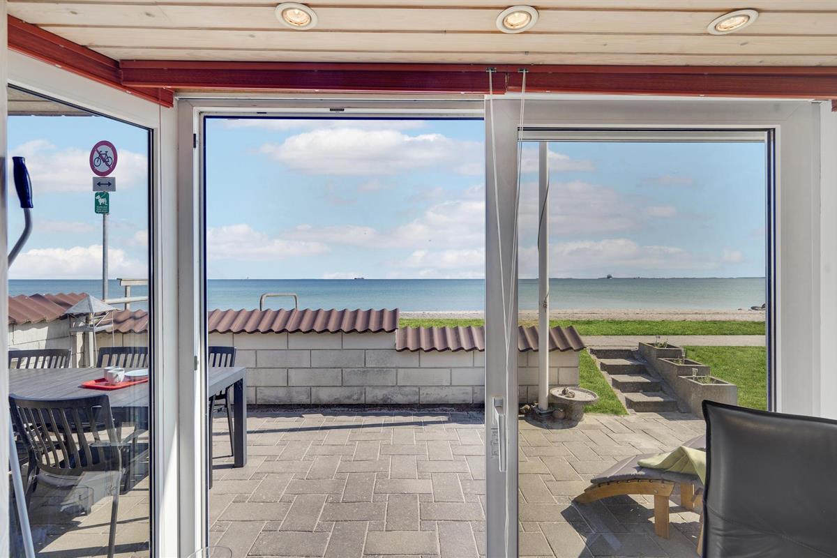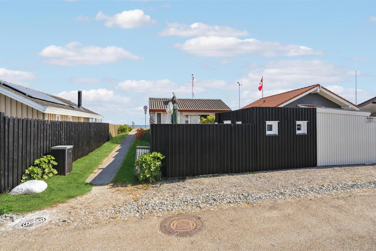 Charmant vakantiehuis direct aan Hasmark strand met zeezicht en comfortabele buitenruimte.