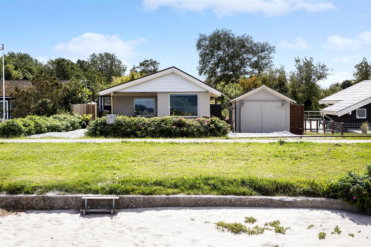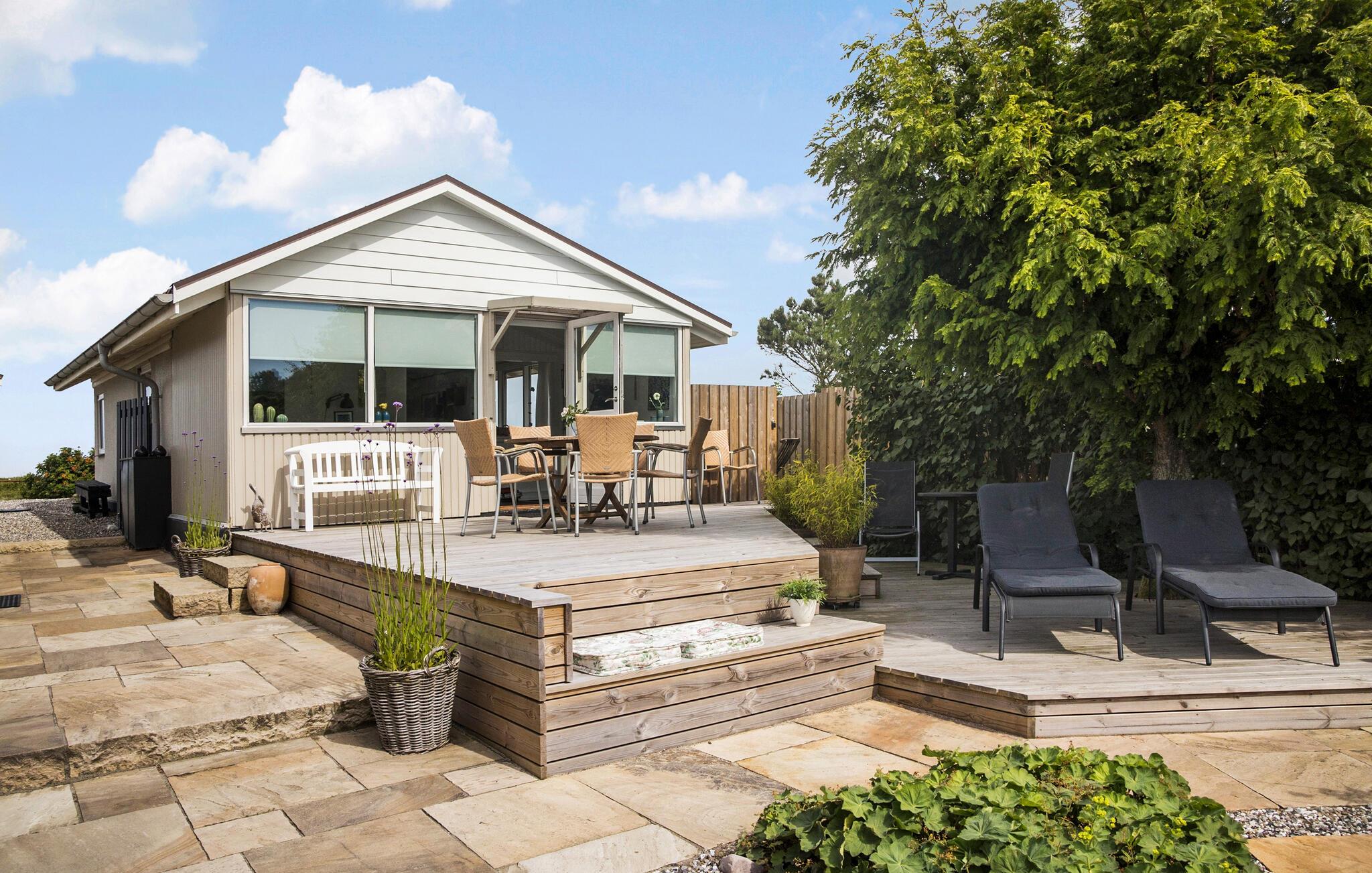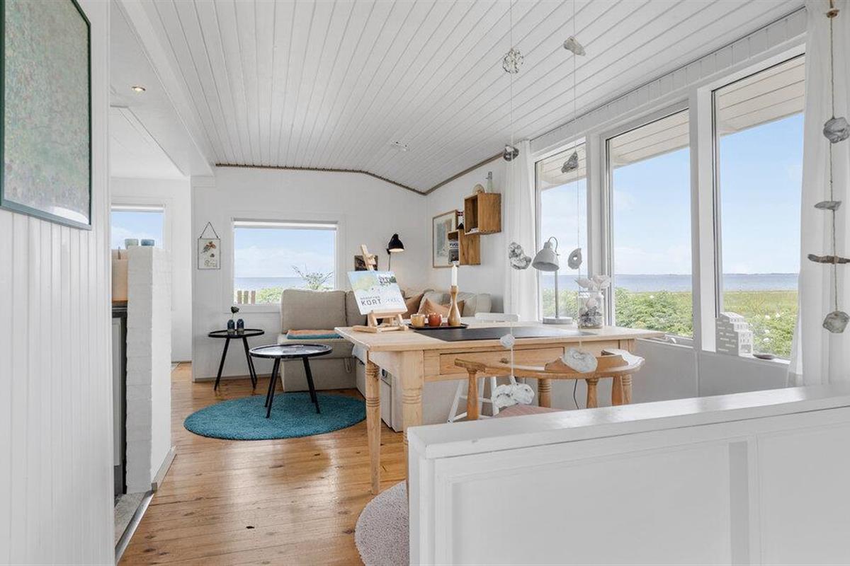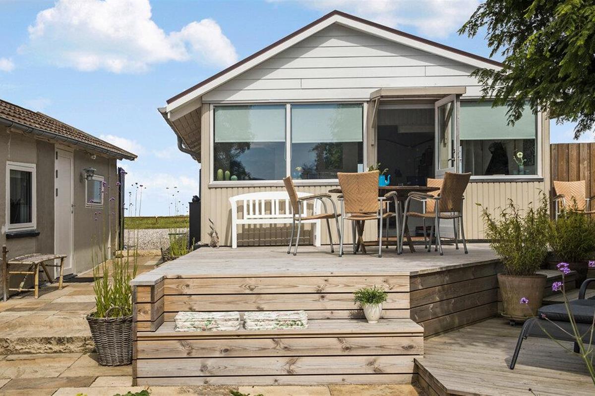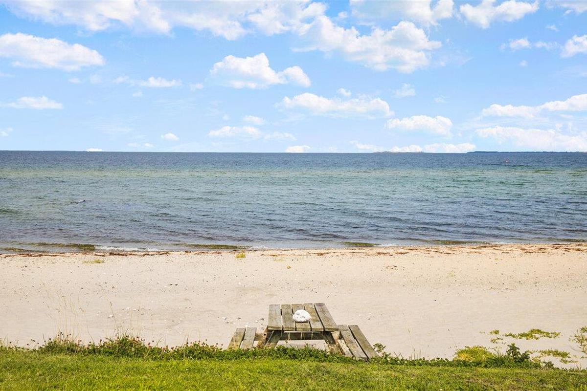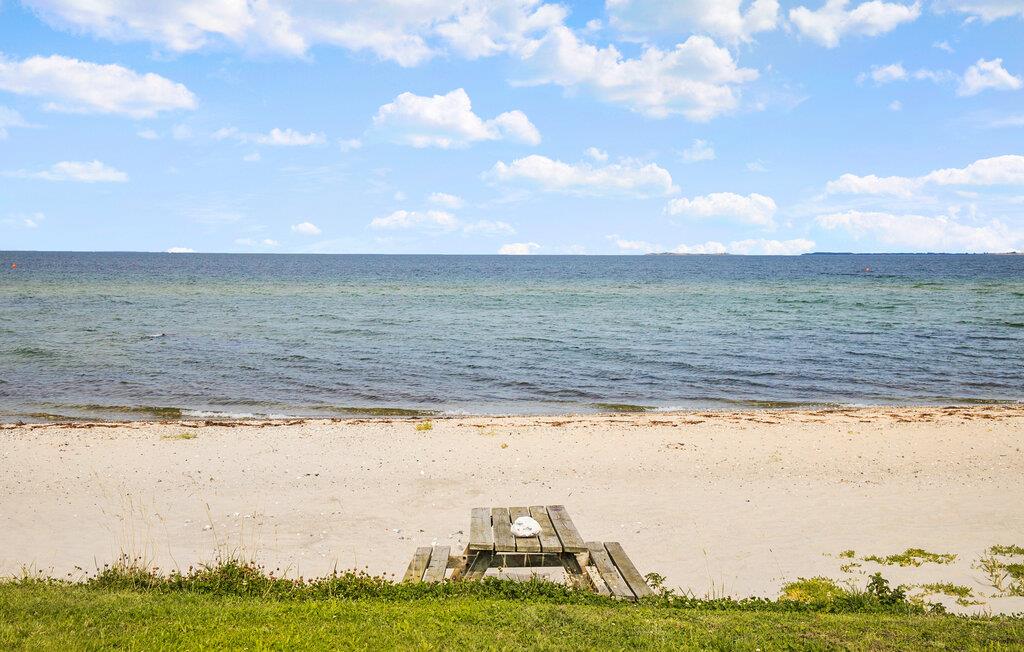 Geniet van een idyllisch vakantiehuis direct aan het strand van Hasmark met panoramisch zeezicht en een privé tuin.
